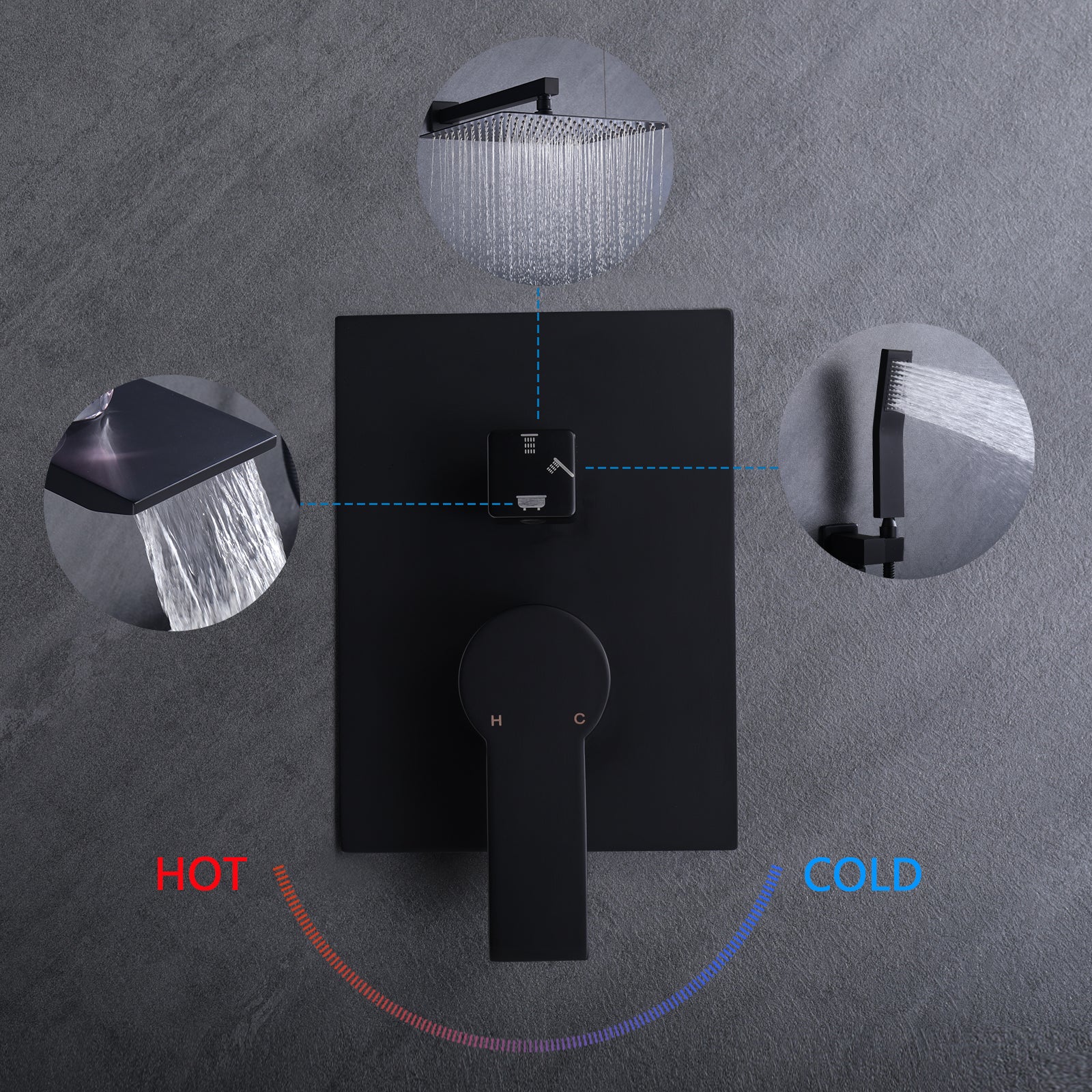 10Inch Wall Mounted Rainfall Shower Head System Shower Faucet Matte Black Stainless Steel