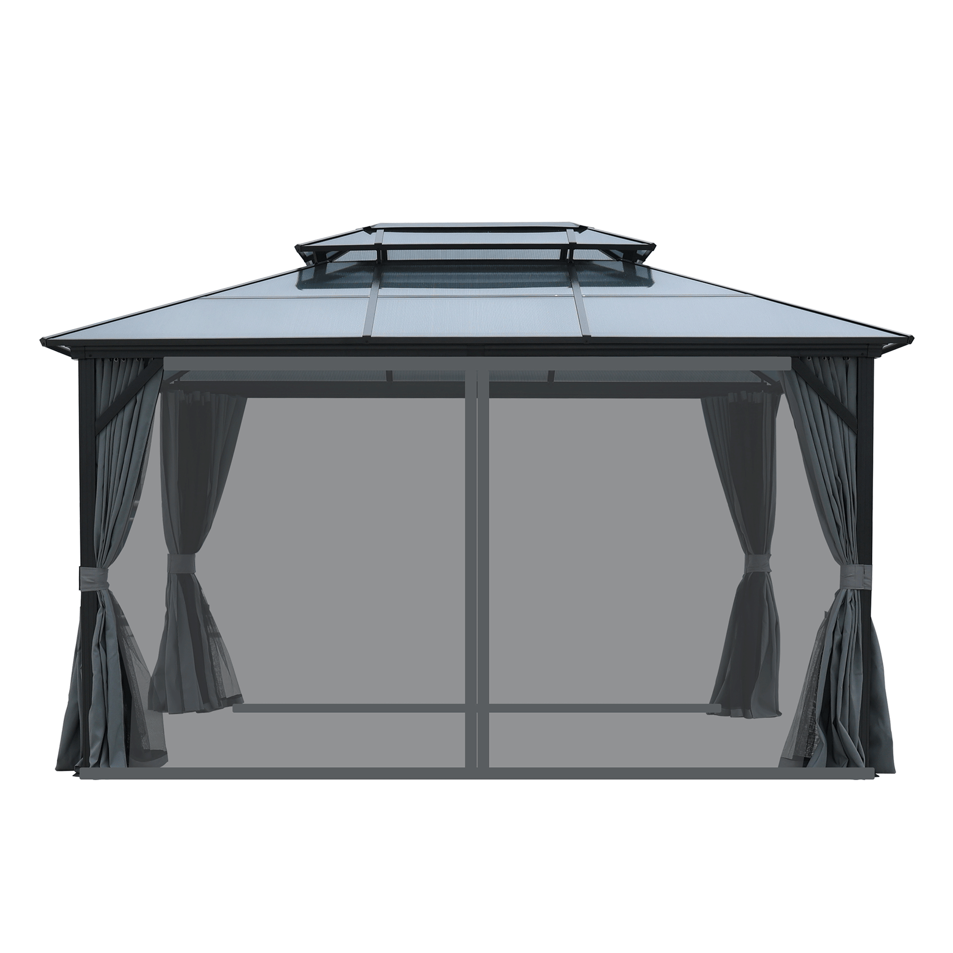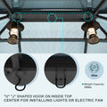 10X13Ft Patio Gazebo With Netting & Curtains, Black Black Gray Rectangular Garden & Outdoor Uv Resistant Gazebos Anchored Aluminium Alloy