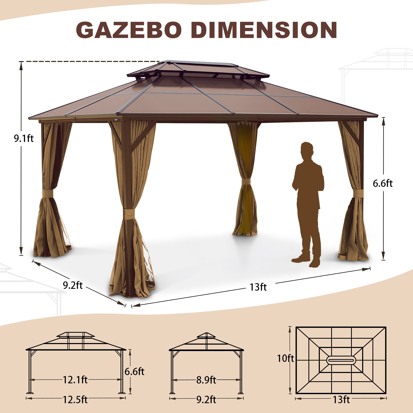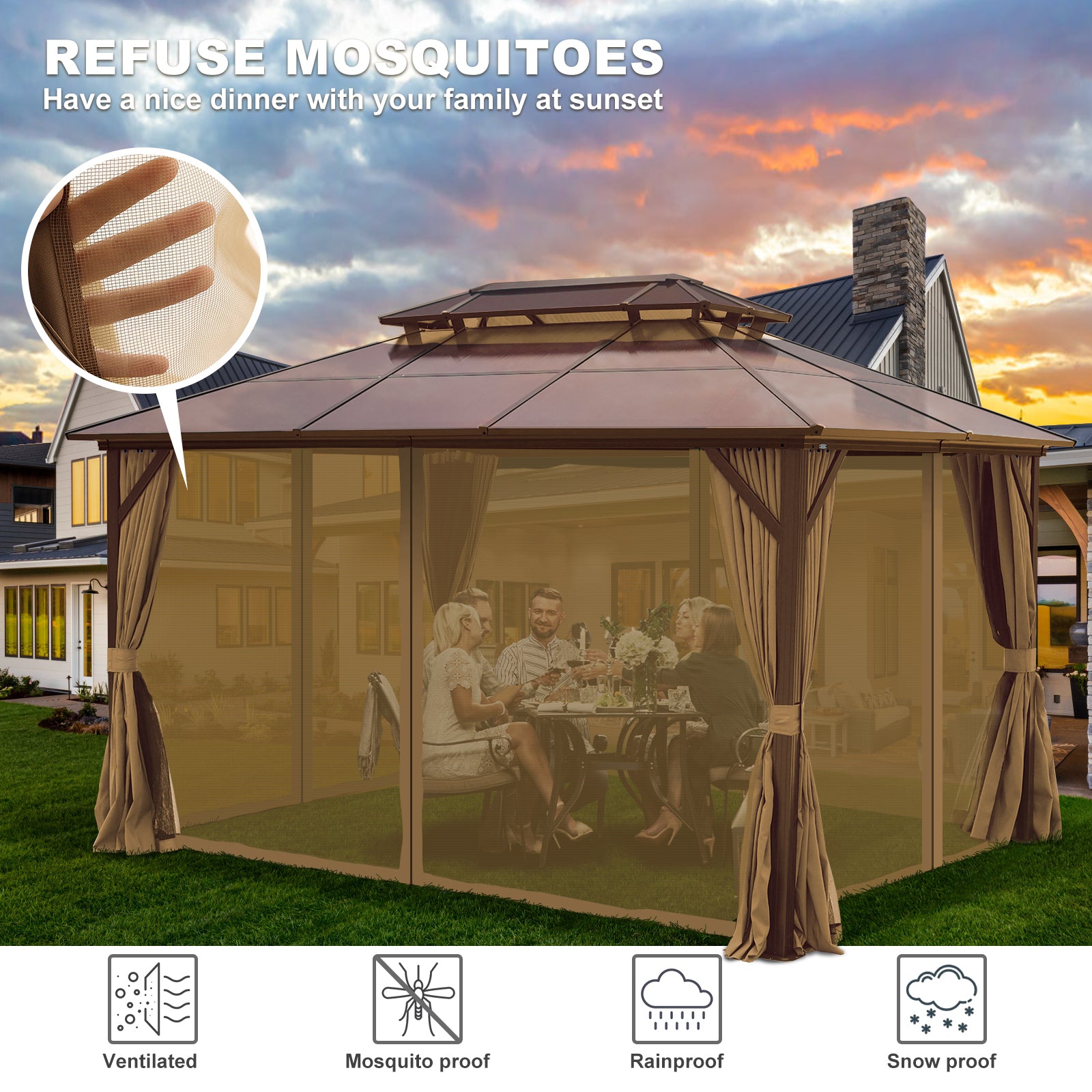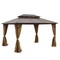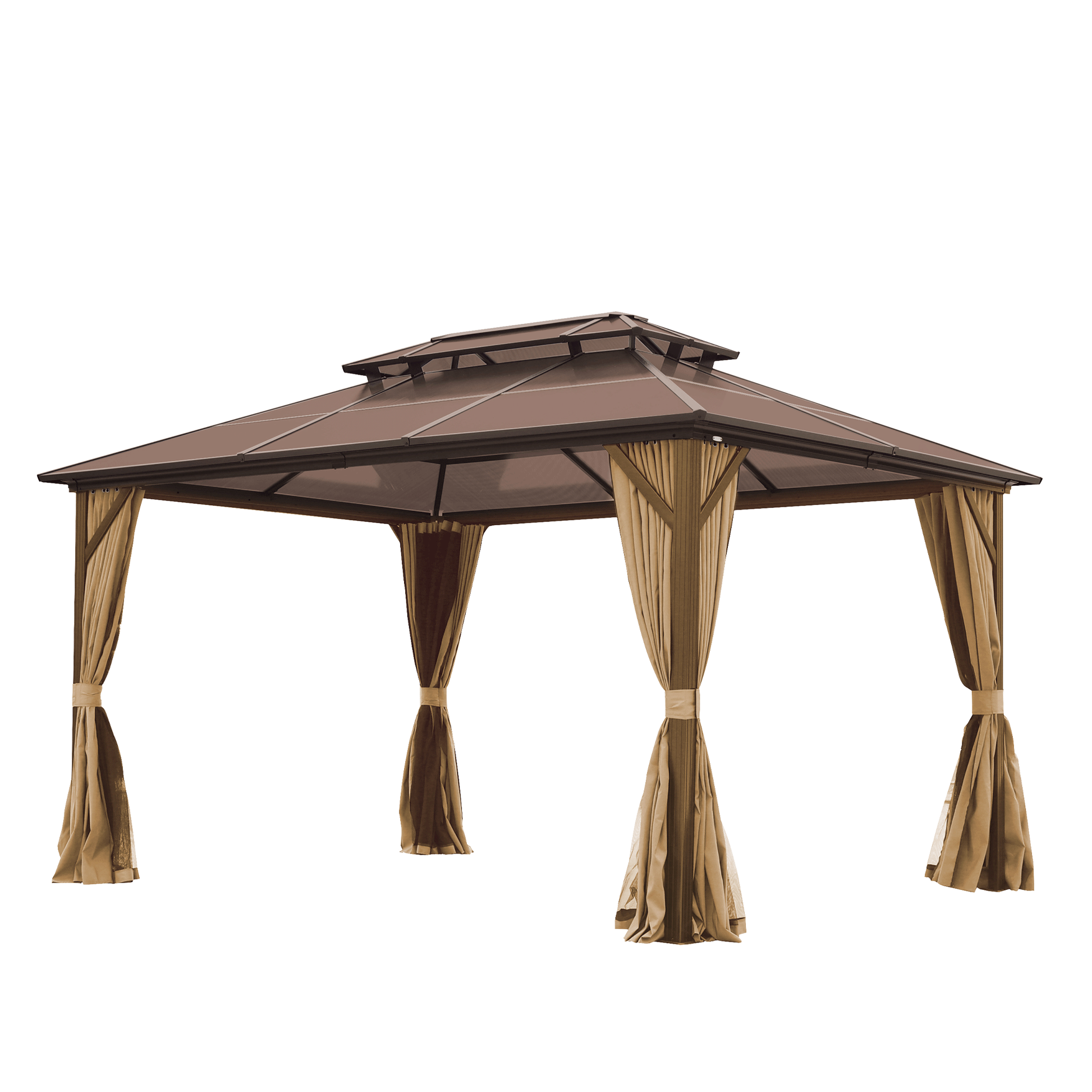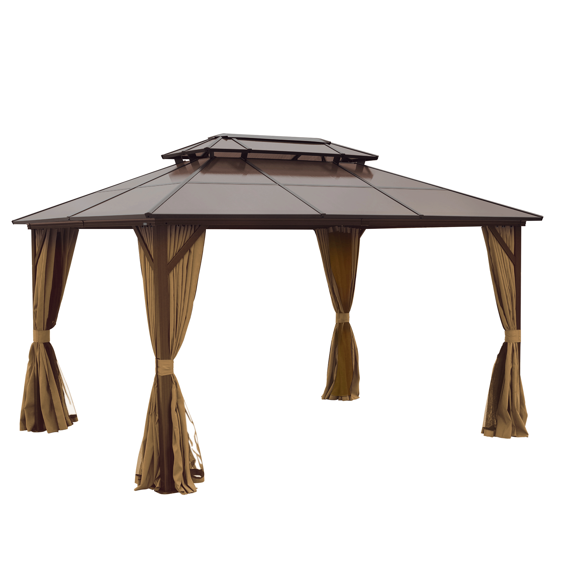 10X13Ft Patio Gazebo With Netting & Curtains, Brown Brown Rectangular Garden & Outdoor Uv Resistant Gazebos Anchored Aluminium Alloy