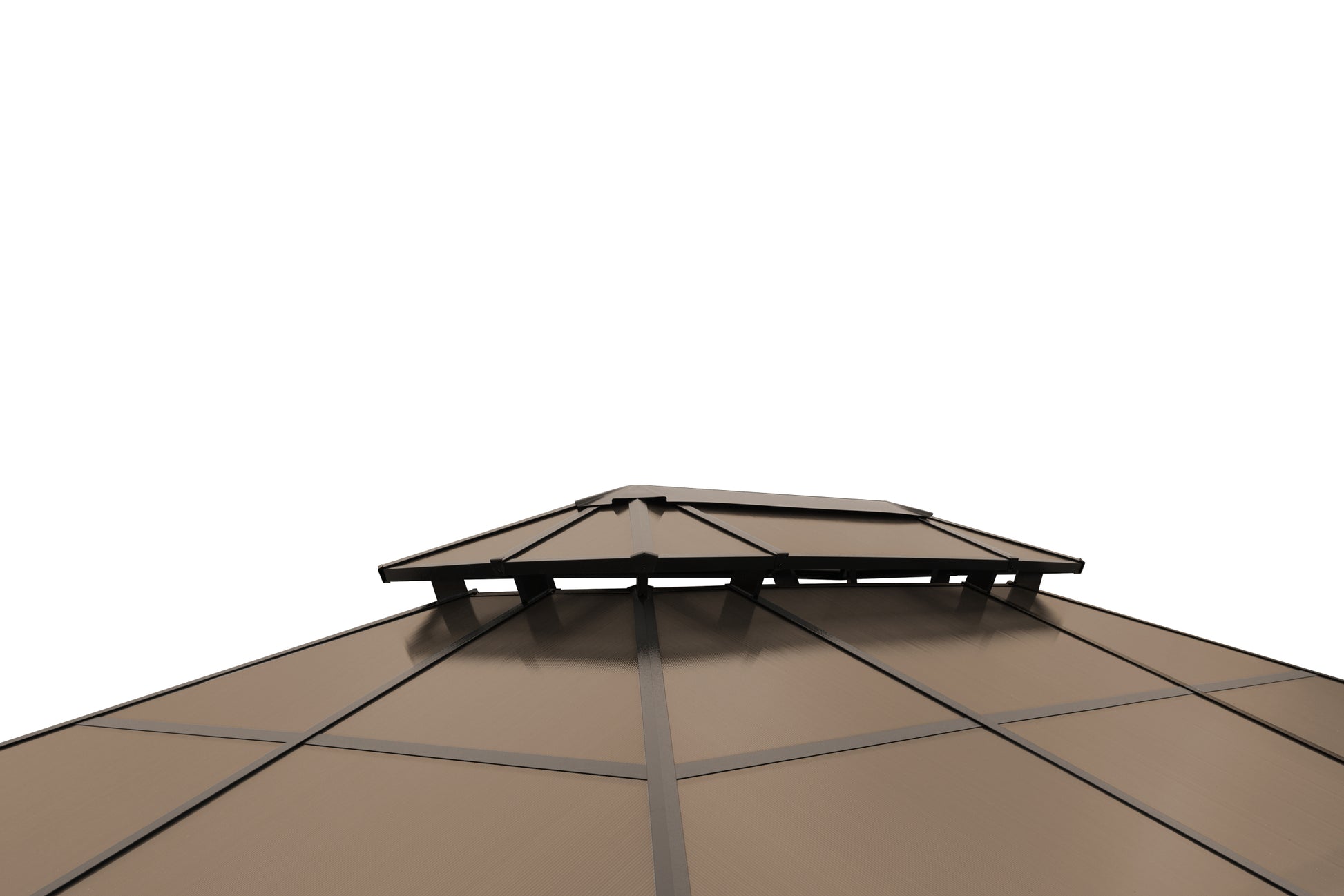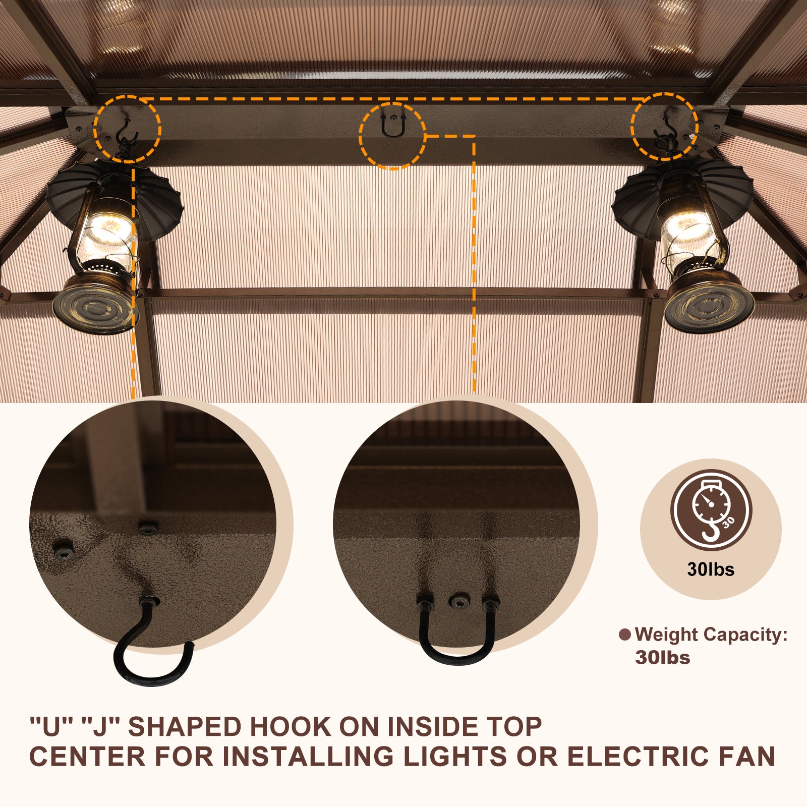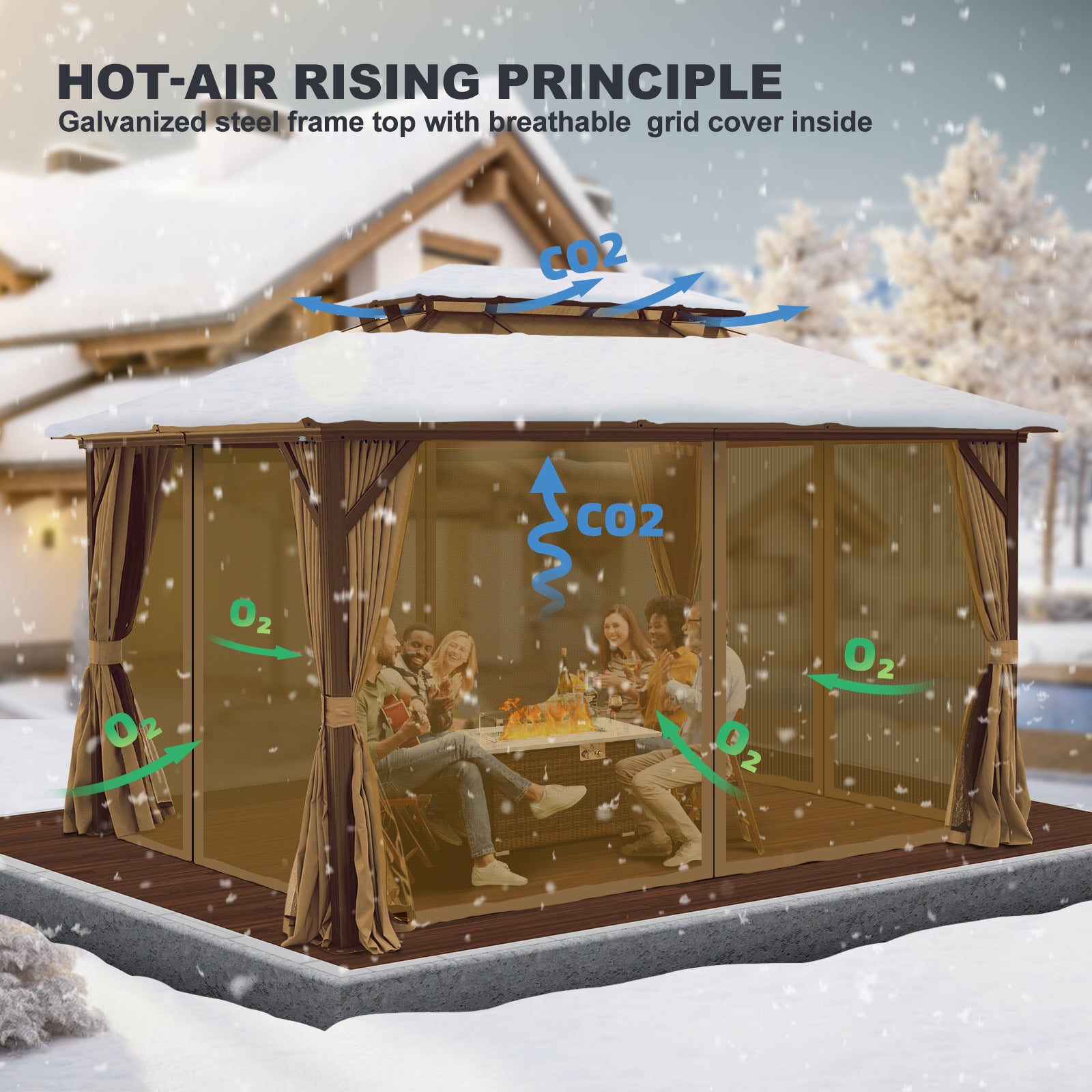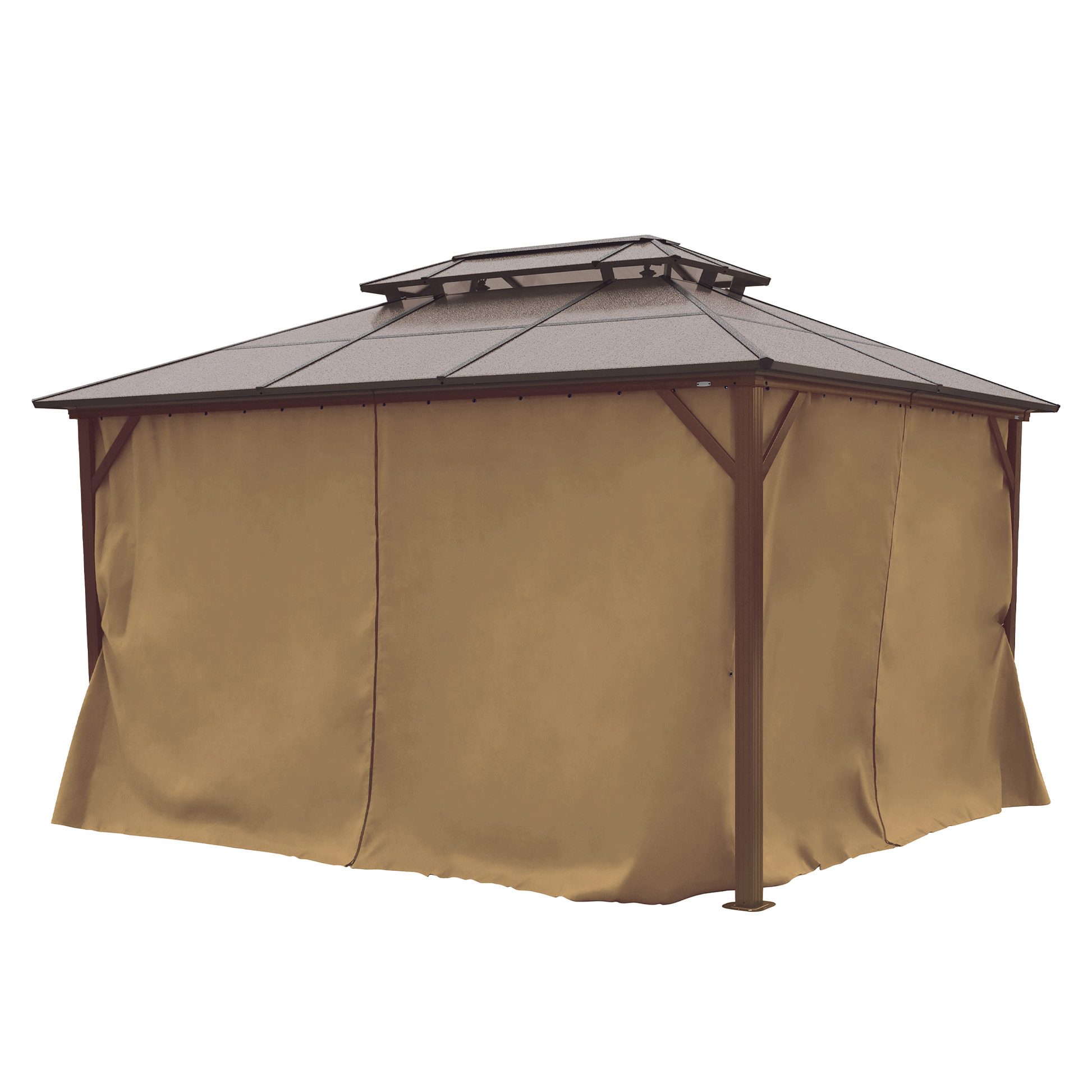 10X13Ft Patio Gazebo With Netting & Curtains, Brown Brown Rectangular Garden & Outdoor Uv Resistant Gazebos Anchored Aluminium Alloy
