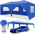 10'X20' Ez Pop Up Canopy Outdoor Portable Party Folding Tent With 6 Removable Sidewalls Carry Bag 4Pcs Weight Bag Blue Metal