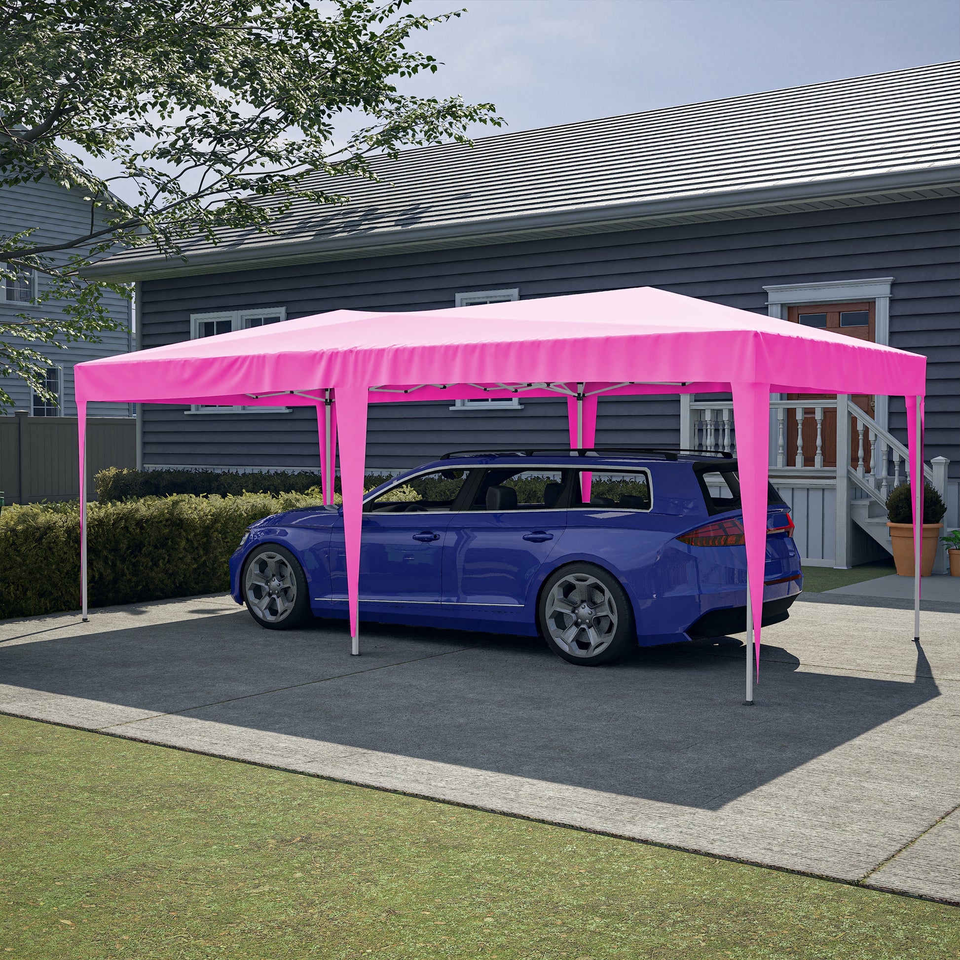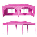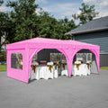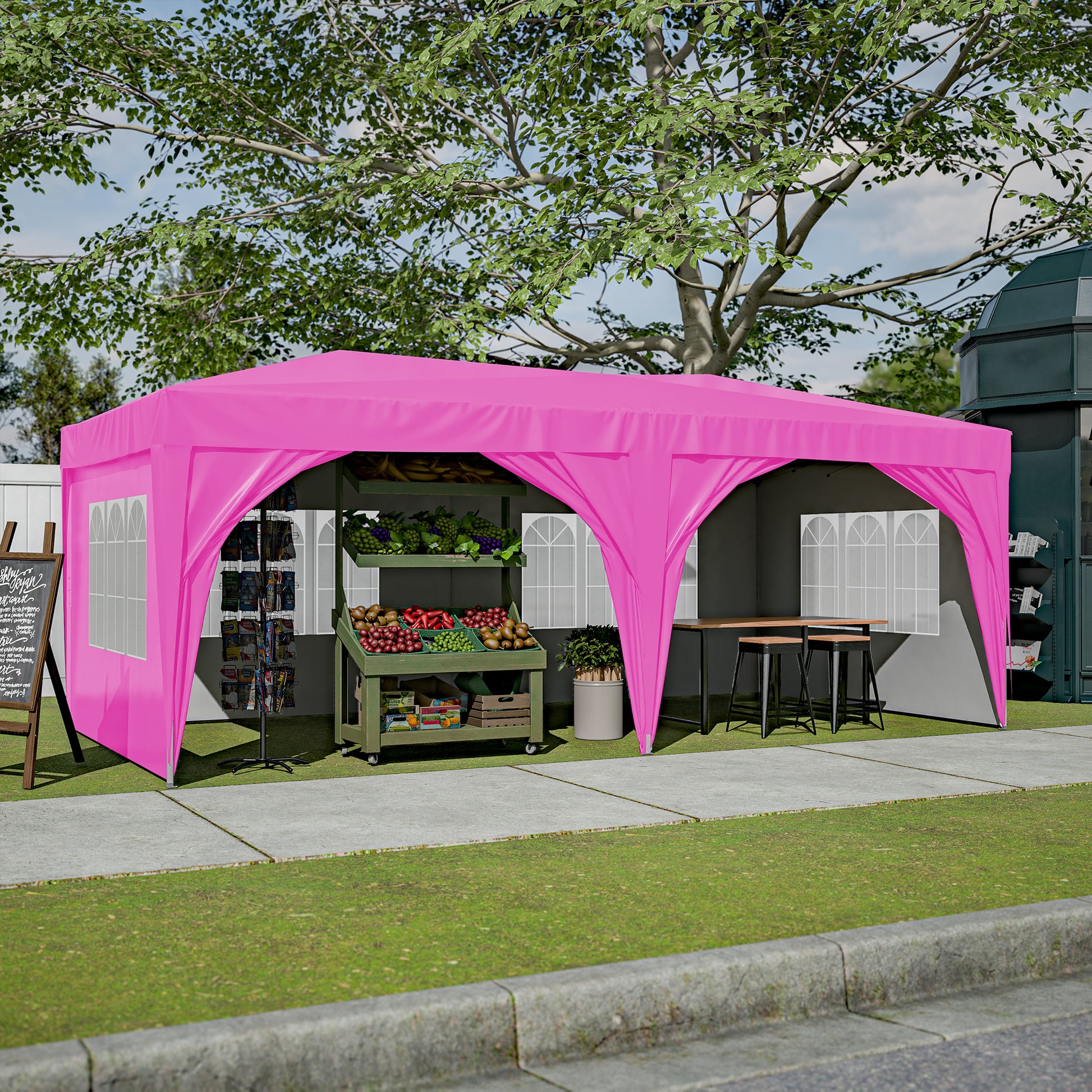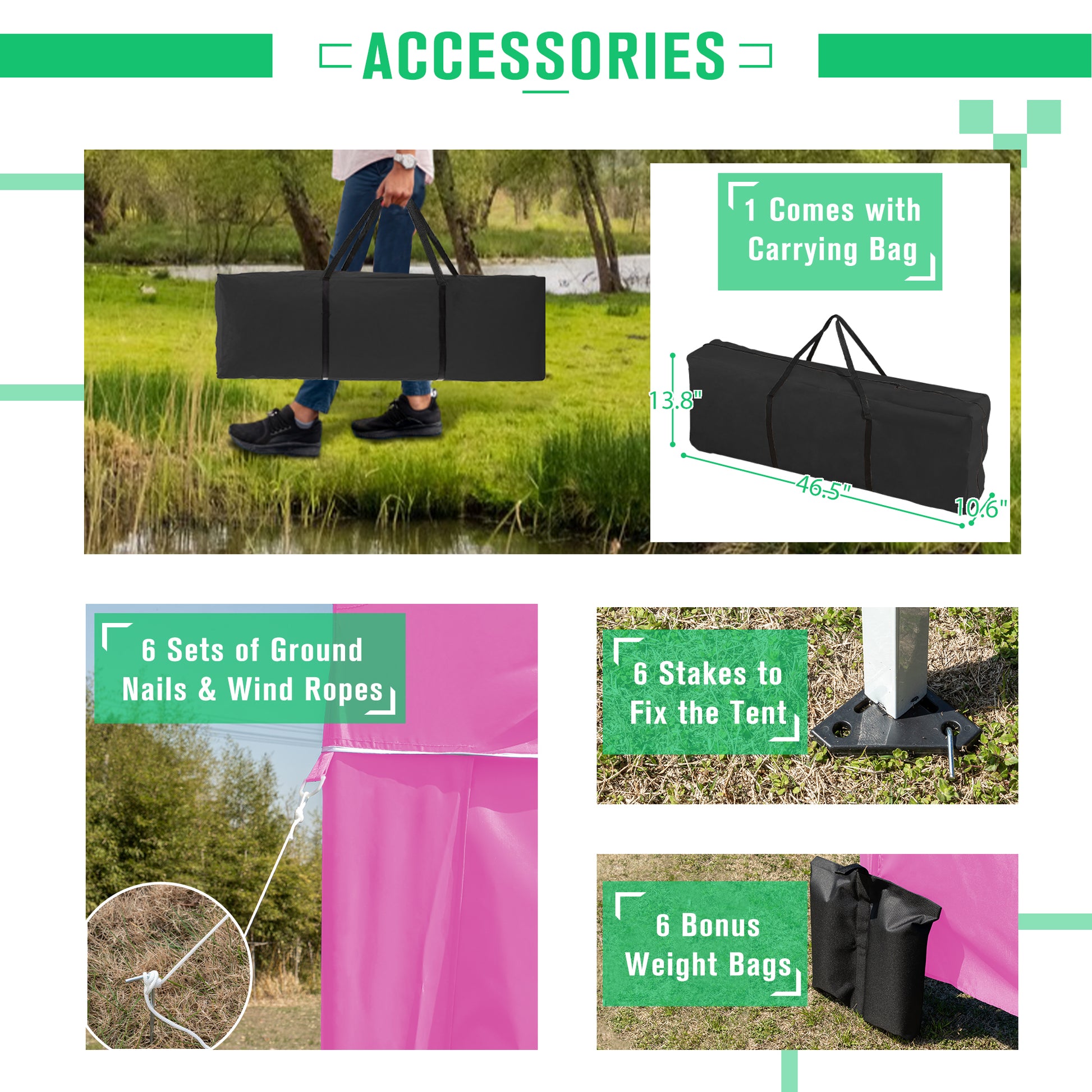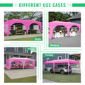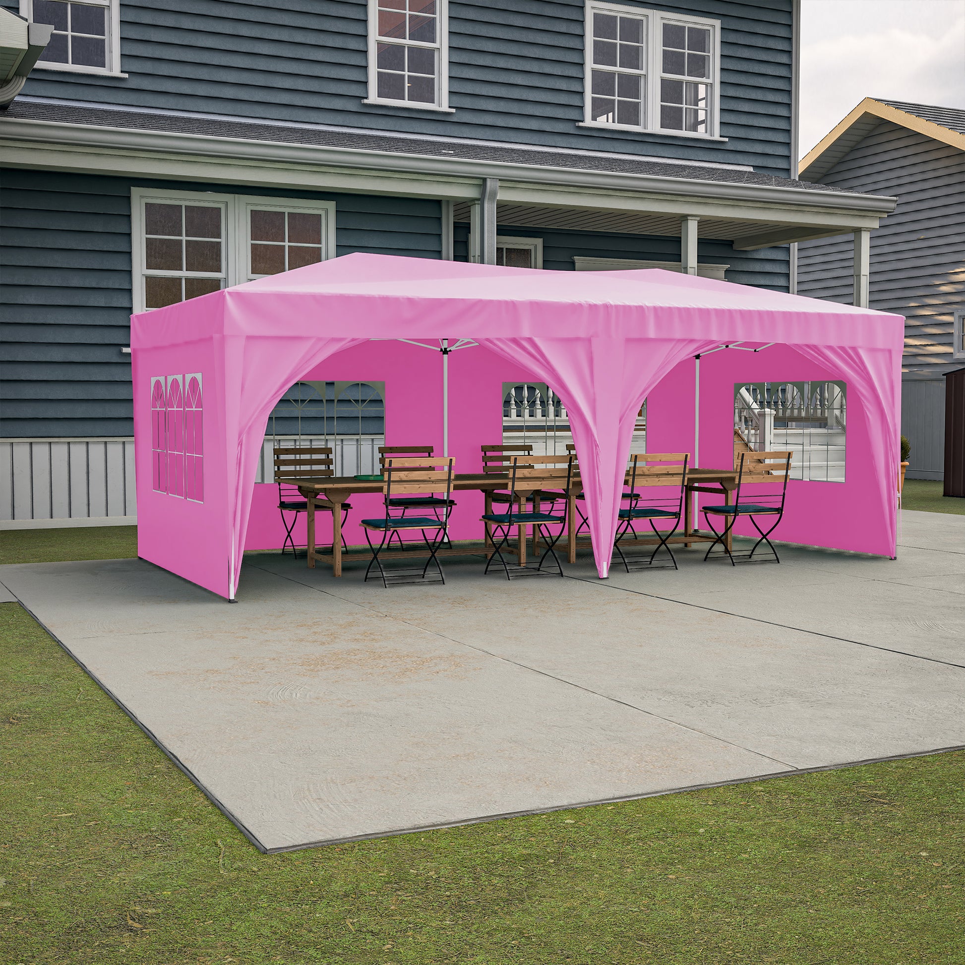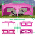 10'X20' Pop Up Canopy Tent With 6 Sidewalls, Ez Pop Up Outdoor Canopy For Parties, Waterproof Commercial Tent With 3 Adjustable Heights, Carry Bag, 6 Sand Bags, 6 Ropes And 12 Stakes, Pink Pink Metal