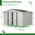 10X8 Ft Outdoor Storage Shed, All Weather Metal Sheds With Lockable Doors, Tool Shed For Garden, Patio, Backyard, Lawn, Grey White Metal