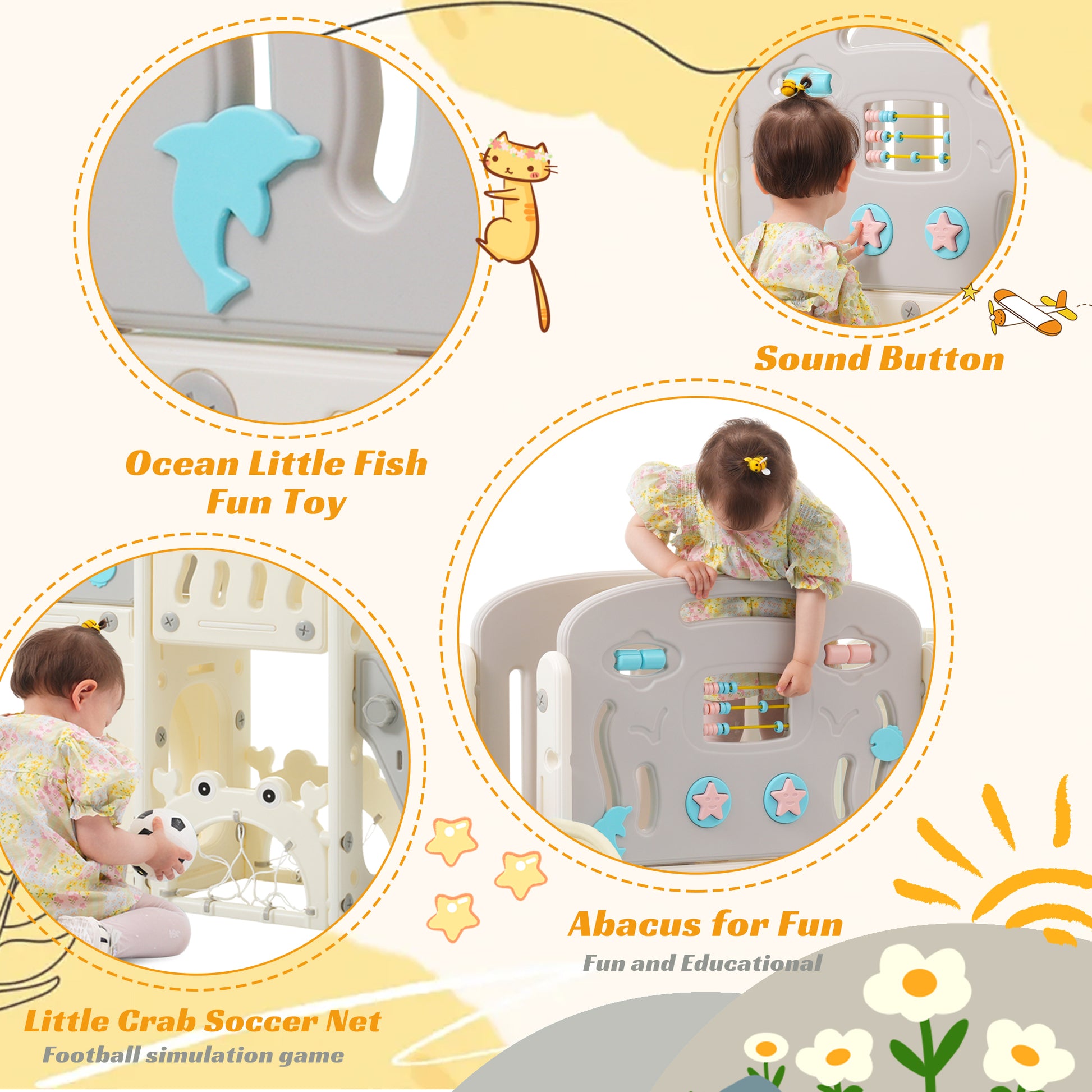11 In 1 Toddler Slide, Kids Slide For Toddler Age 1 3 With Basketball Hoop, Kids Slide Playset Structure,Arch Tunnel And Telescope, Toy Storage Organizer For Toddlers, Kids Climbers Playground Grey Cute 1 To 2 Years Hdpe Indoor & Outdoor Use