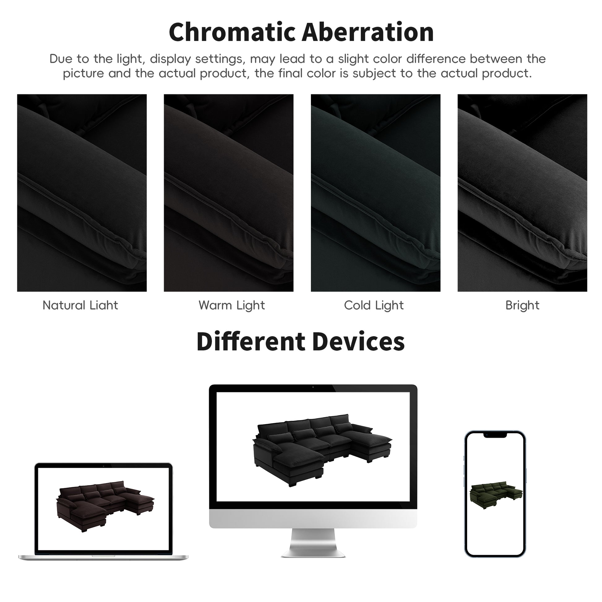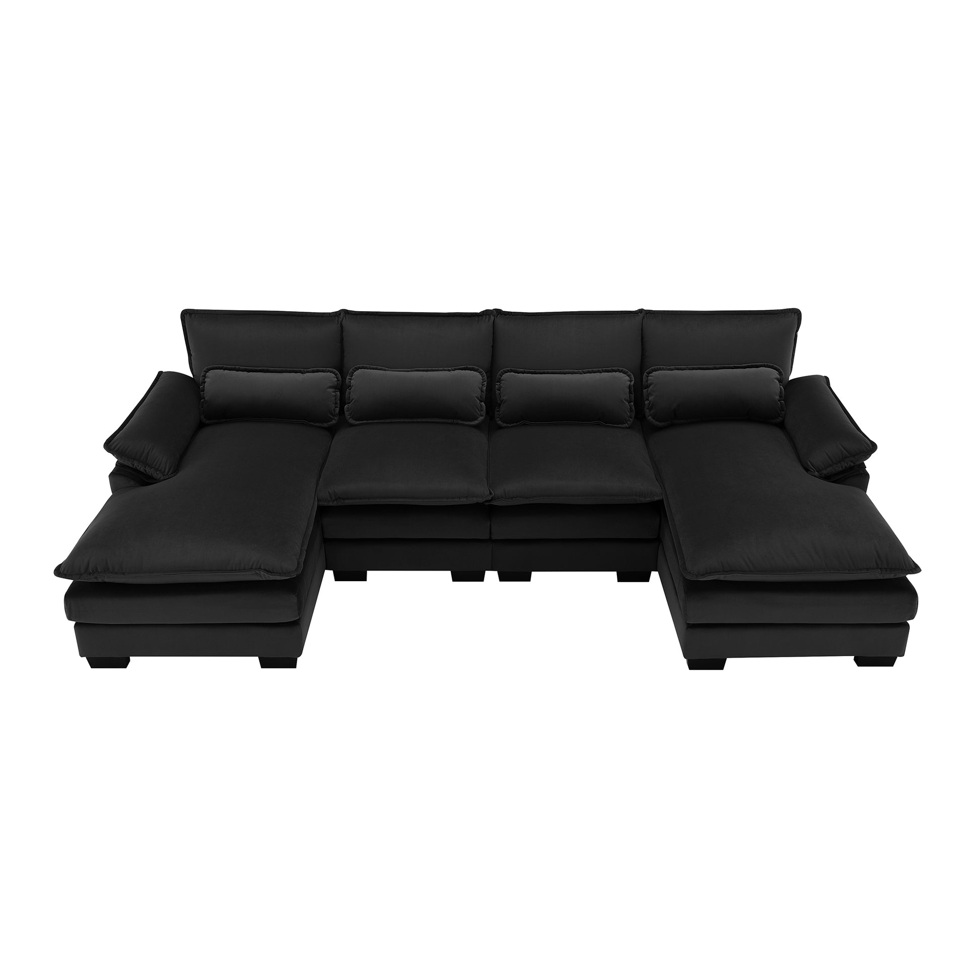 110*55" Modern U Shaped Sectional Sofa With Waist Pillows,6 Seat Upholstered Symmetrical Sofa Furniture,Sleeper Sofa Couch With Chaise Lounge For Living Room,Apartment,5 Colours Black Velvet 6 Seat