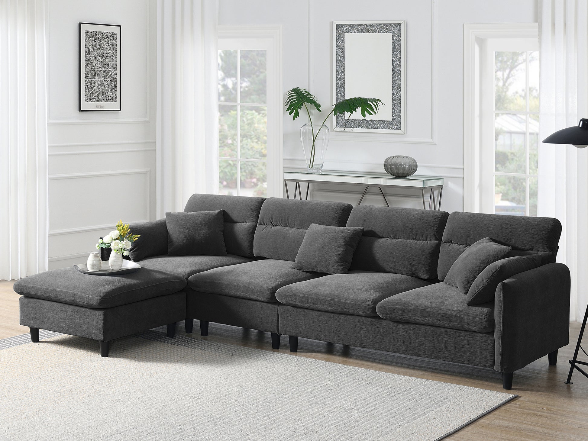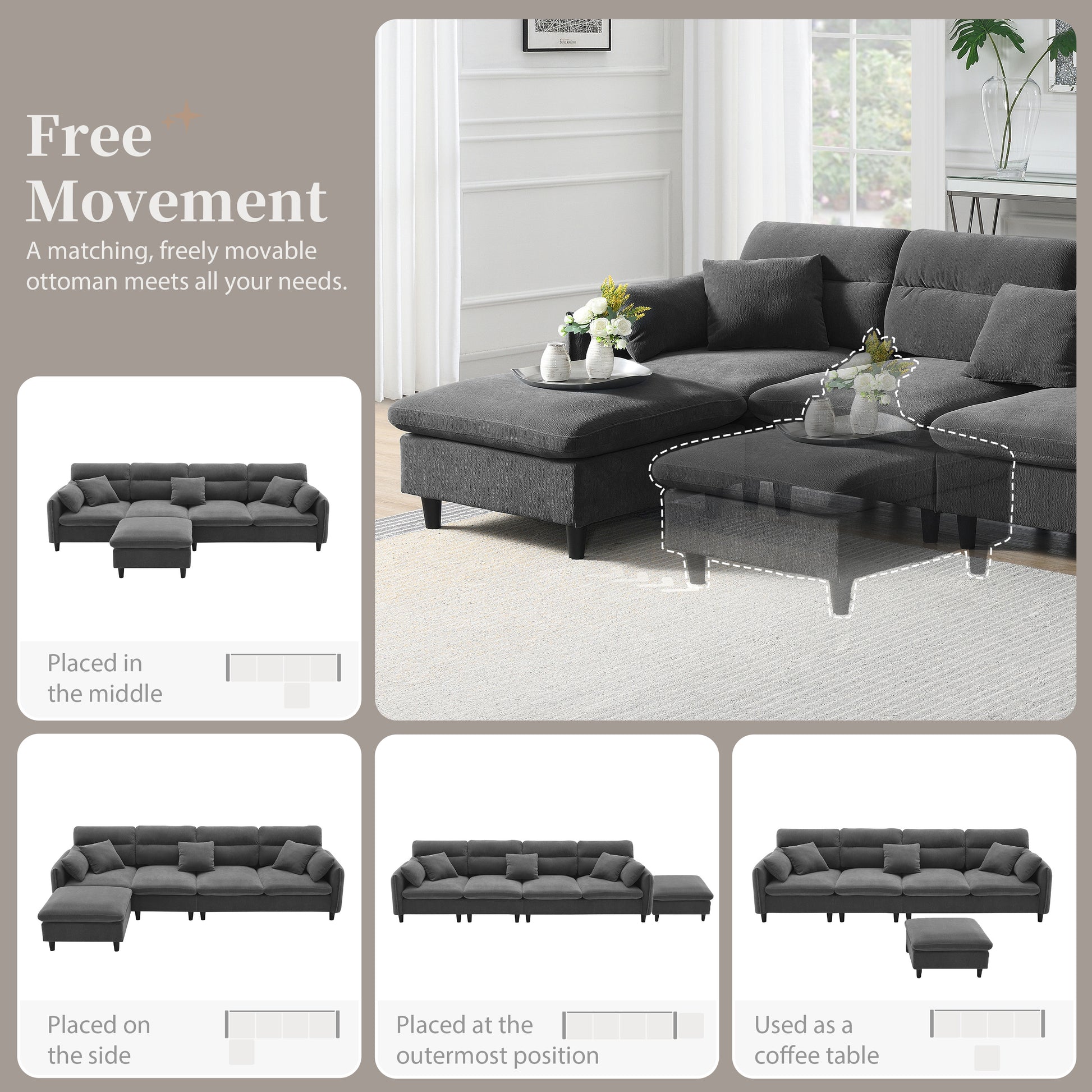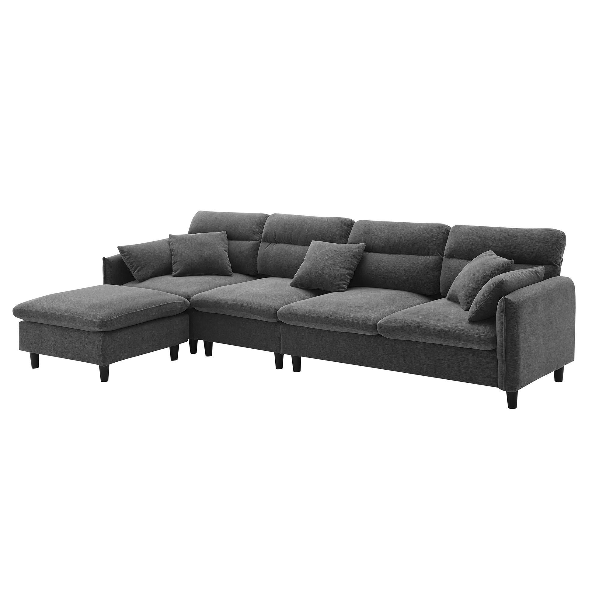 110*62" Modern Convertible Sectional Sofa,L Shaped Reversible Couch Set With Free Pillows,5 Seat Cloud Chenille Indoor Furniture With Ottoman For Living Room,Apartment,3 Colors Gray Chenille 5 Seat
