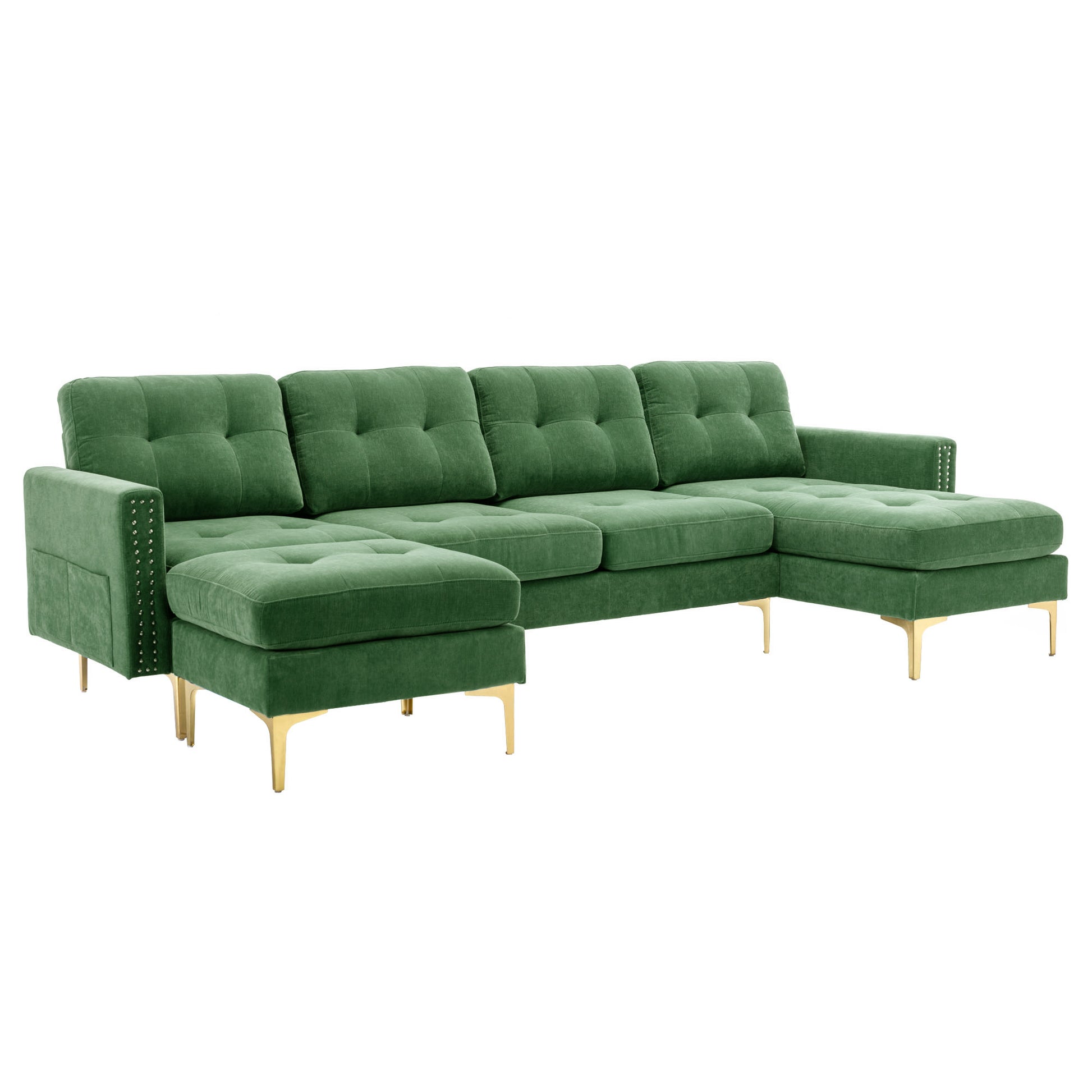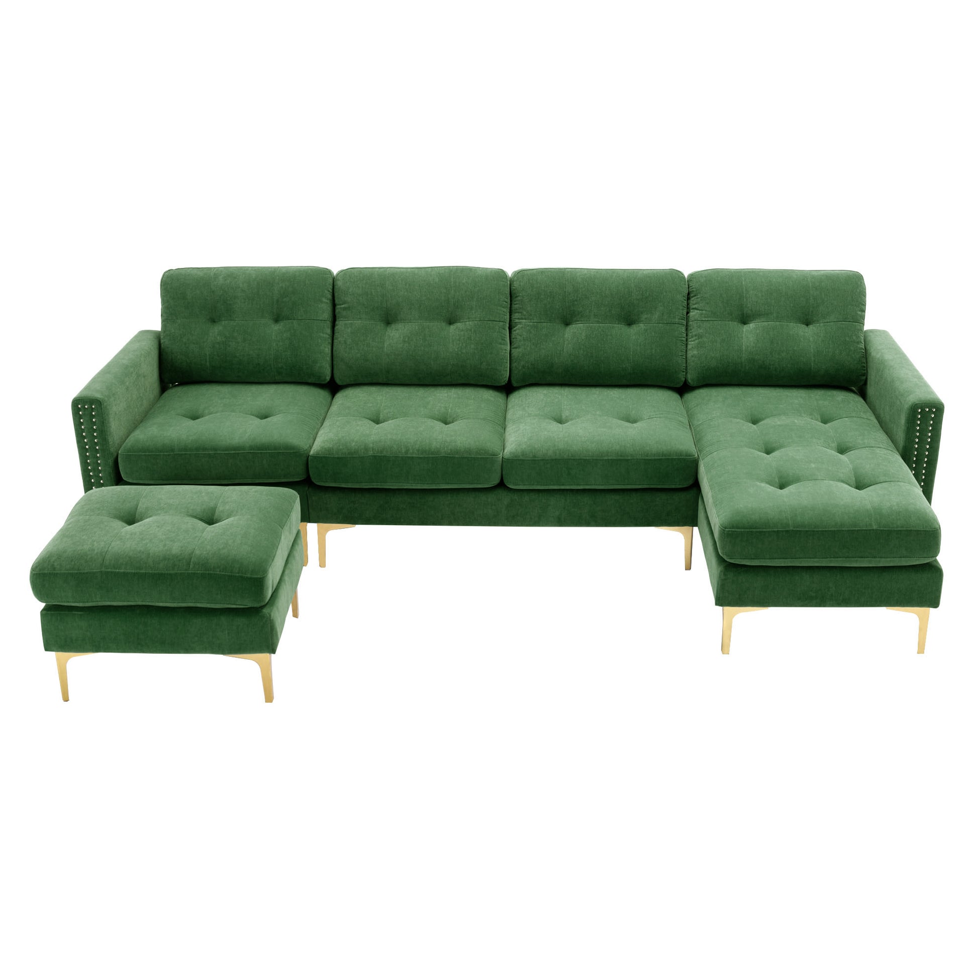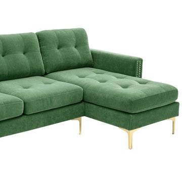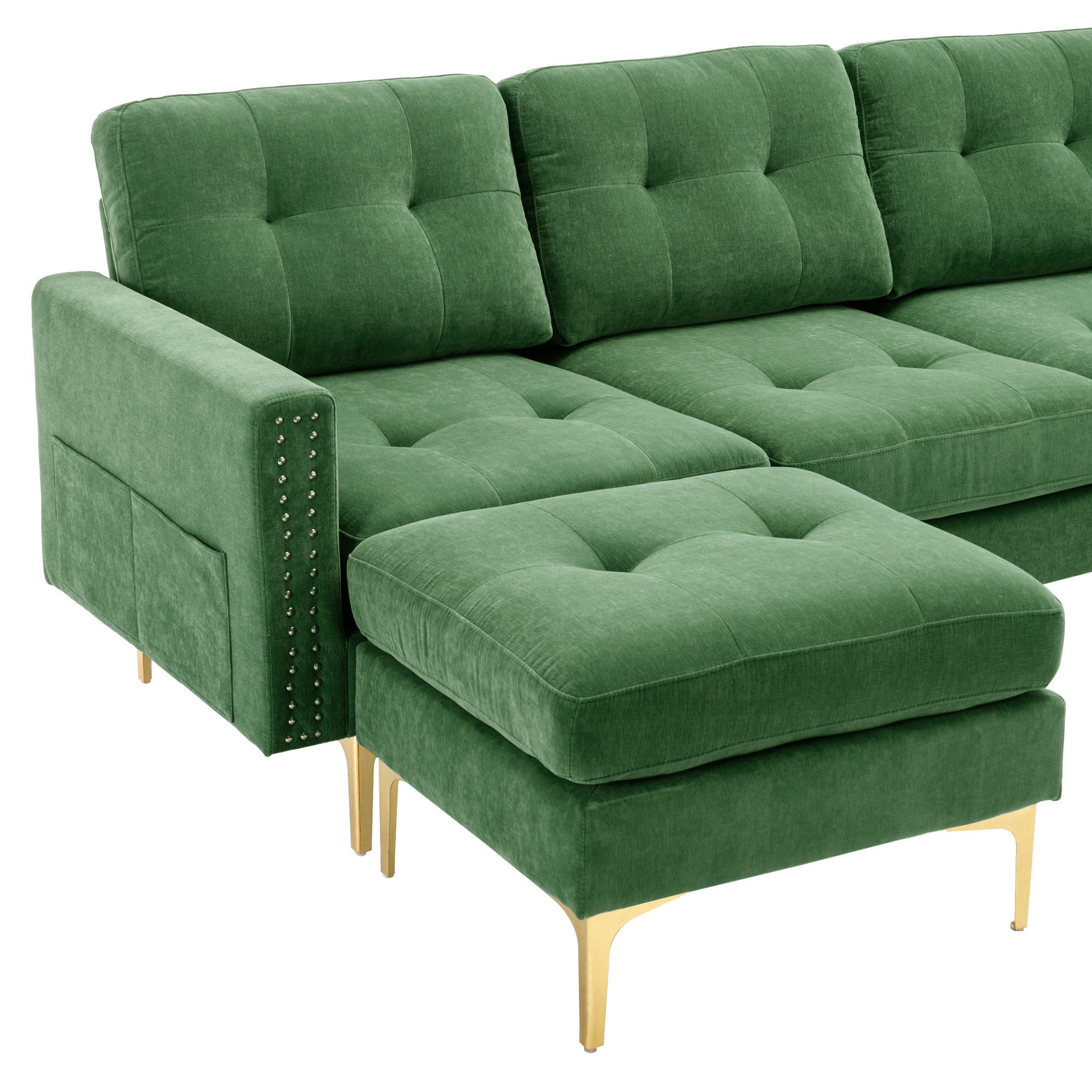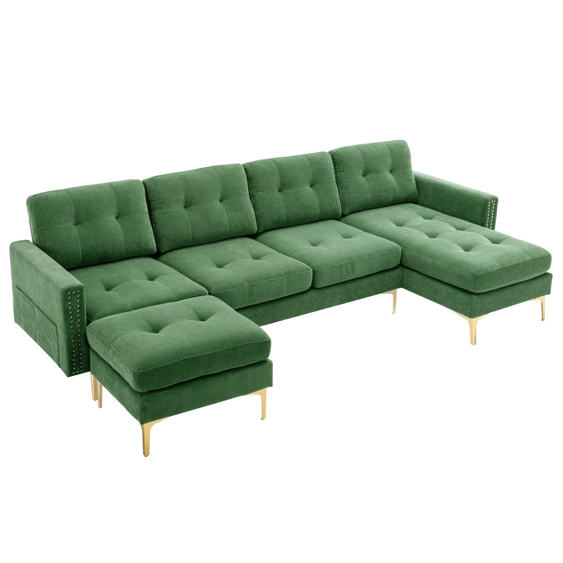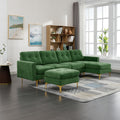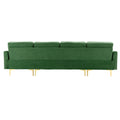 110" L Shape Convertible Sectional Sofa Couch With Movable Ottoman For Living Room, Apartment, Office, Green Green Foam Velvet 4 Seat