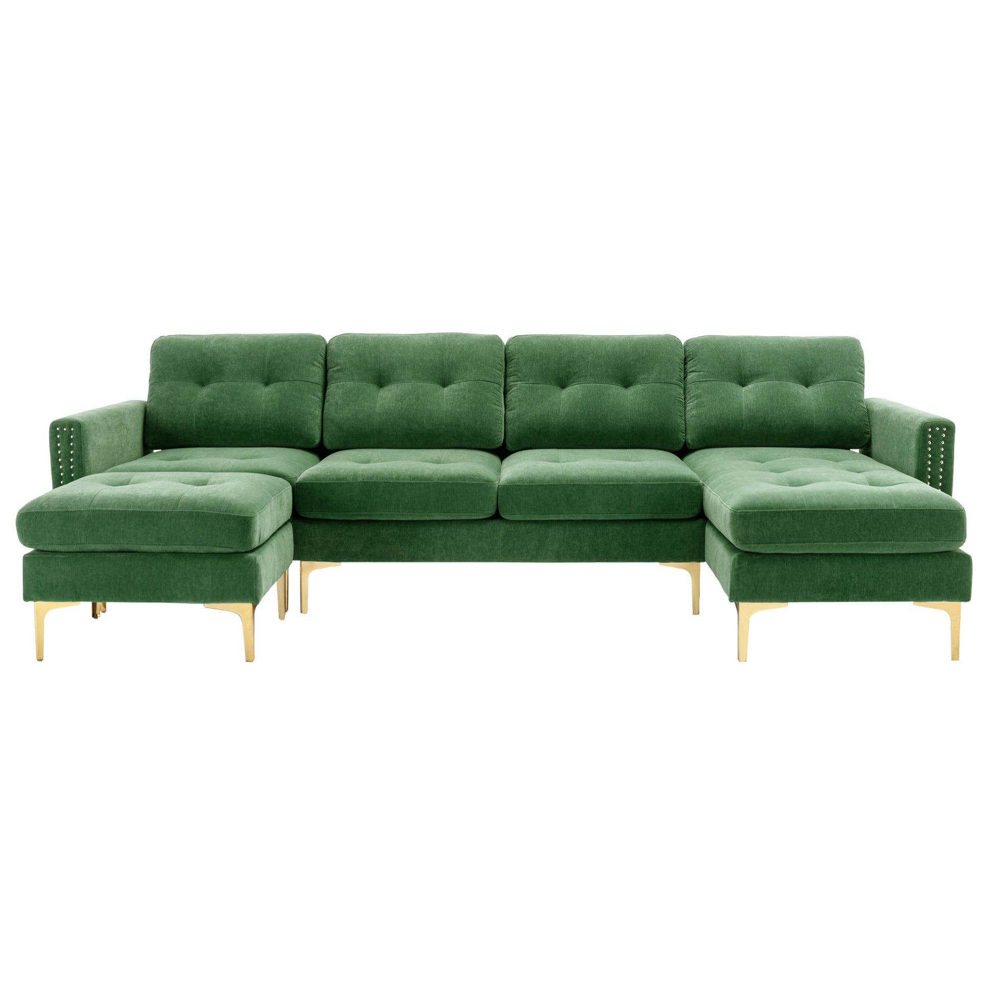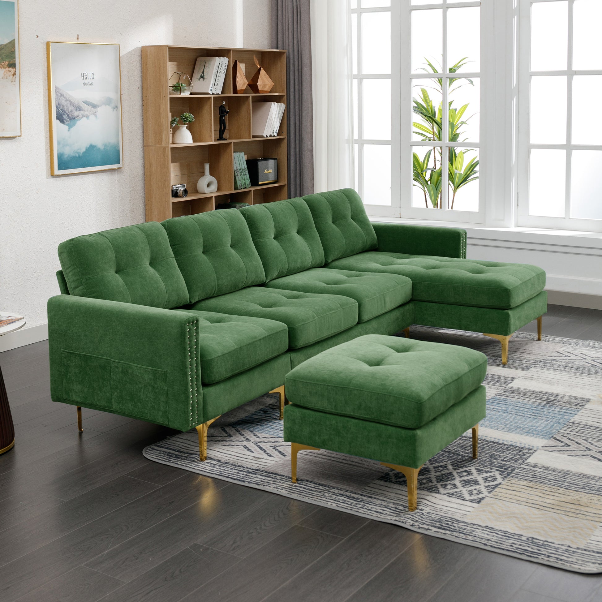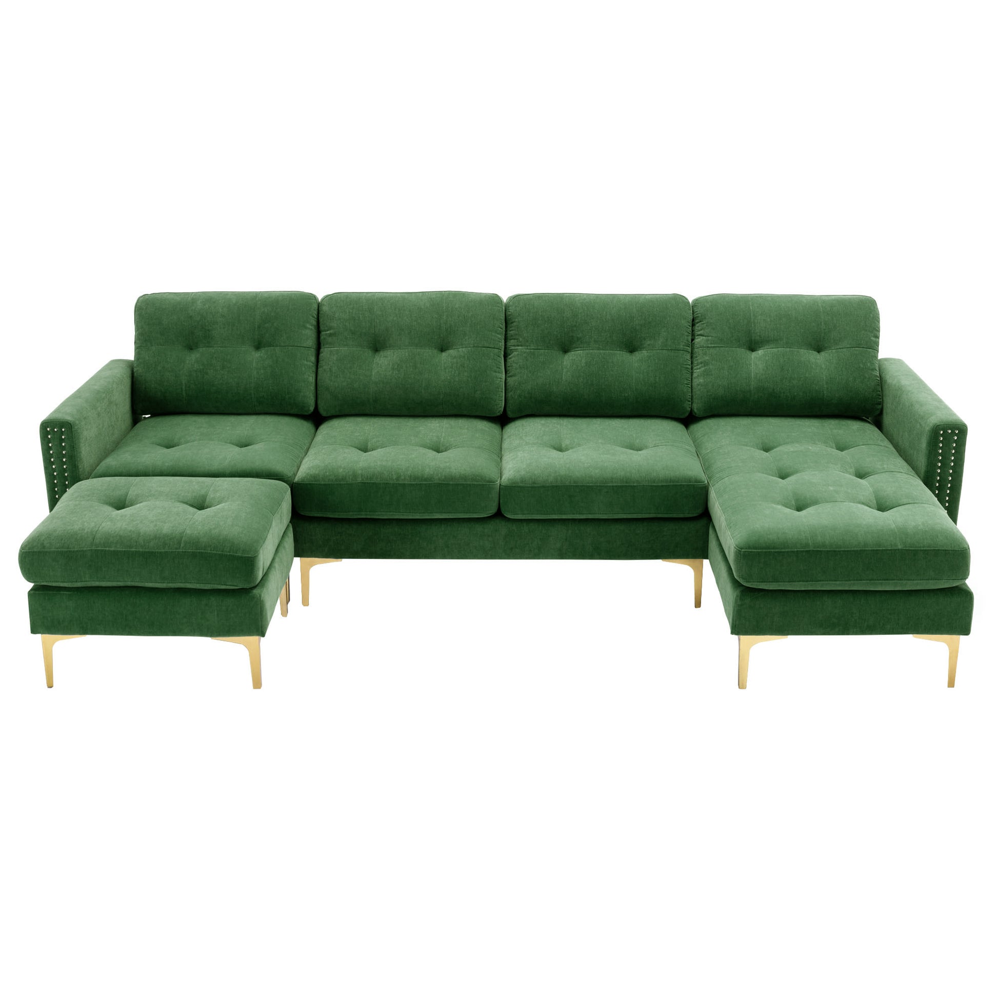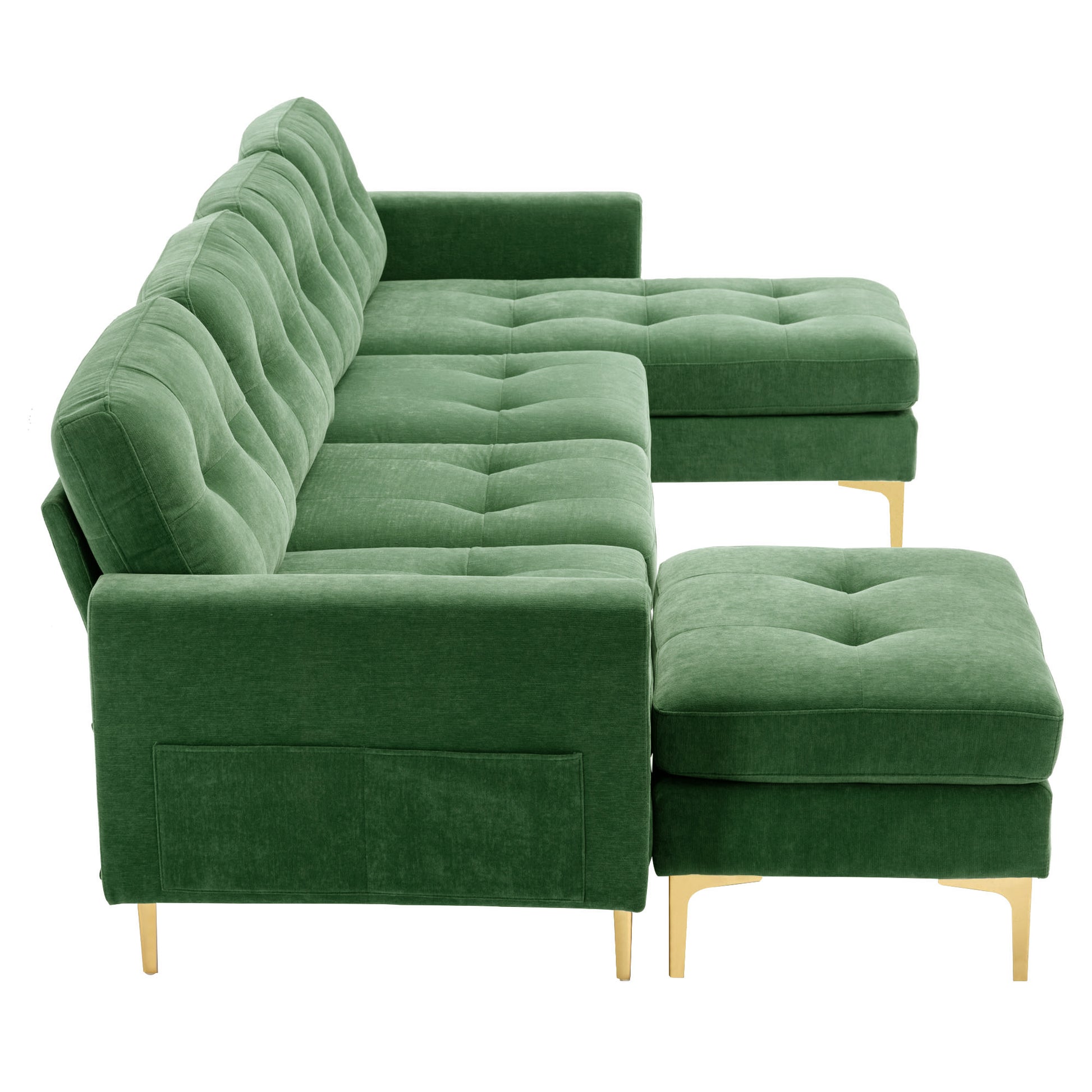 110" L Shape Convertible Sectional Sofa Couch With Movable Ottoman For Living Room, Apartment, Office, Green Green Foam Velvet 4 Seat