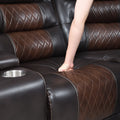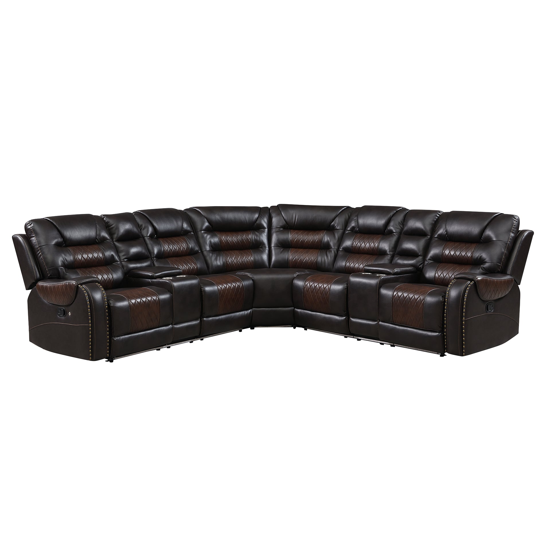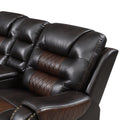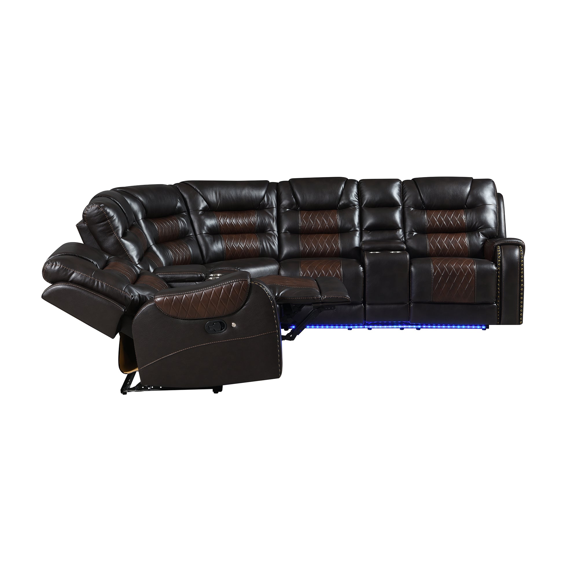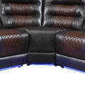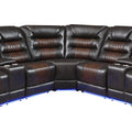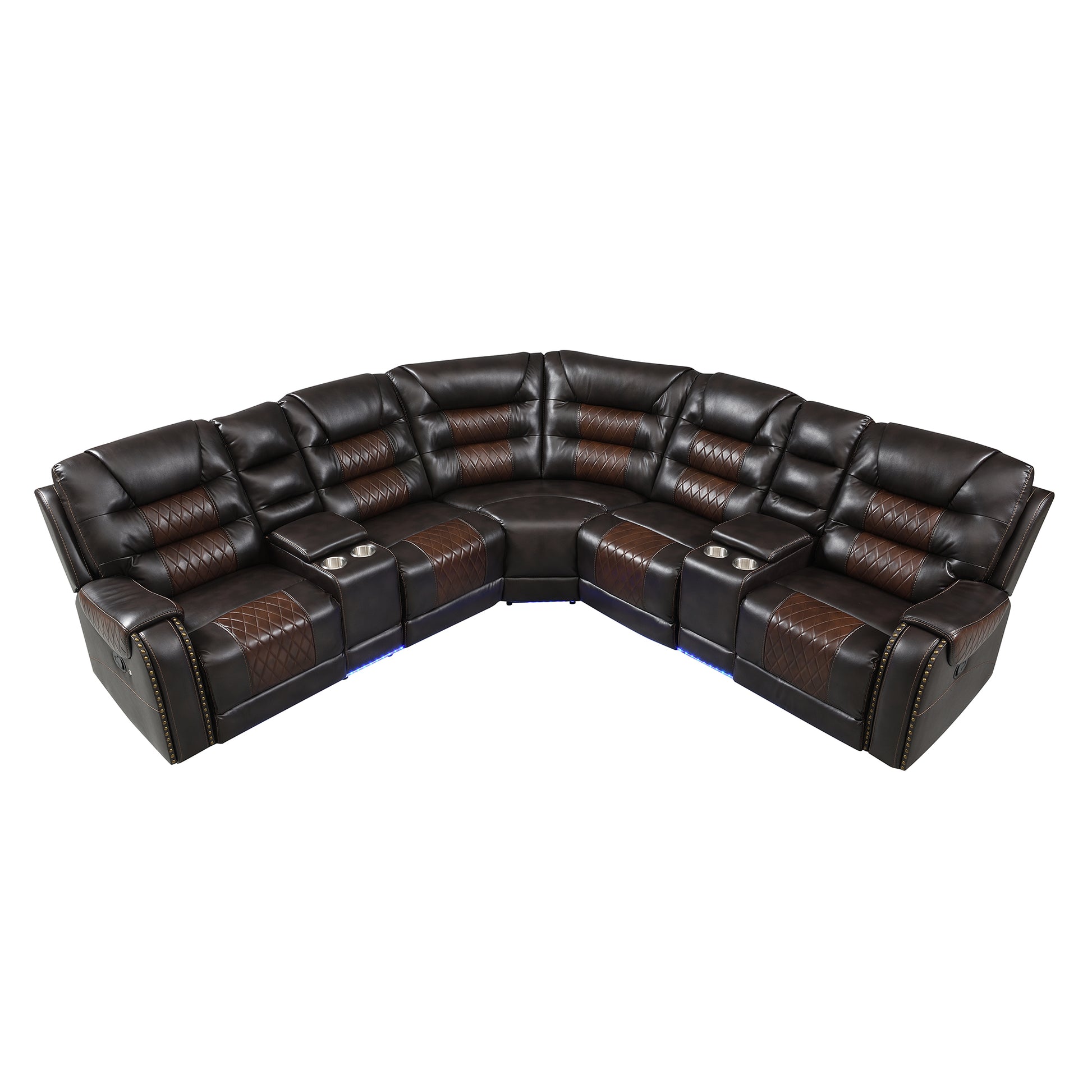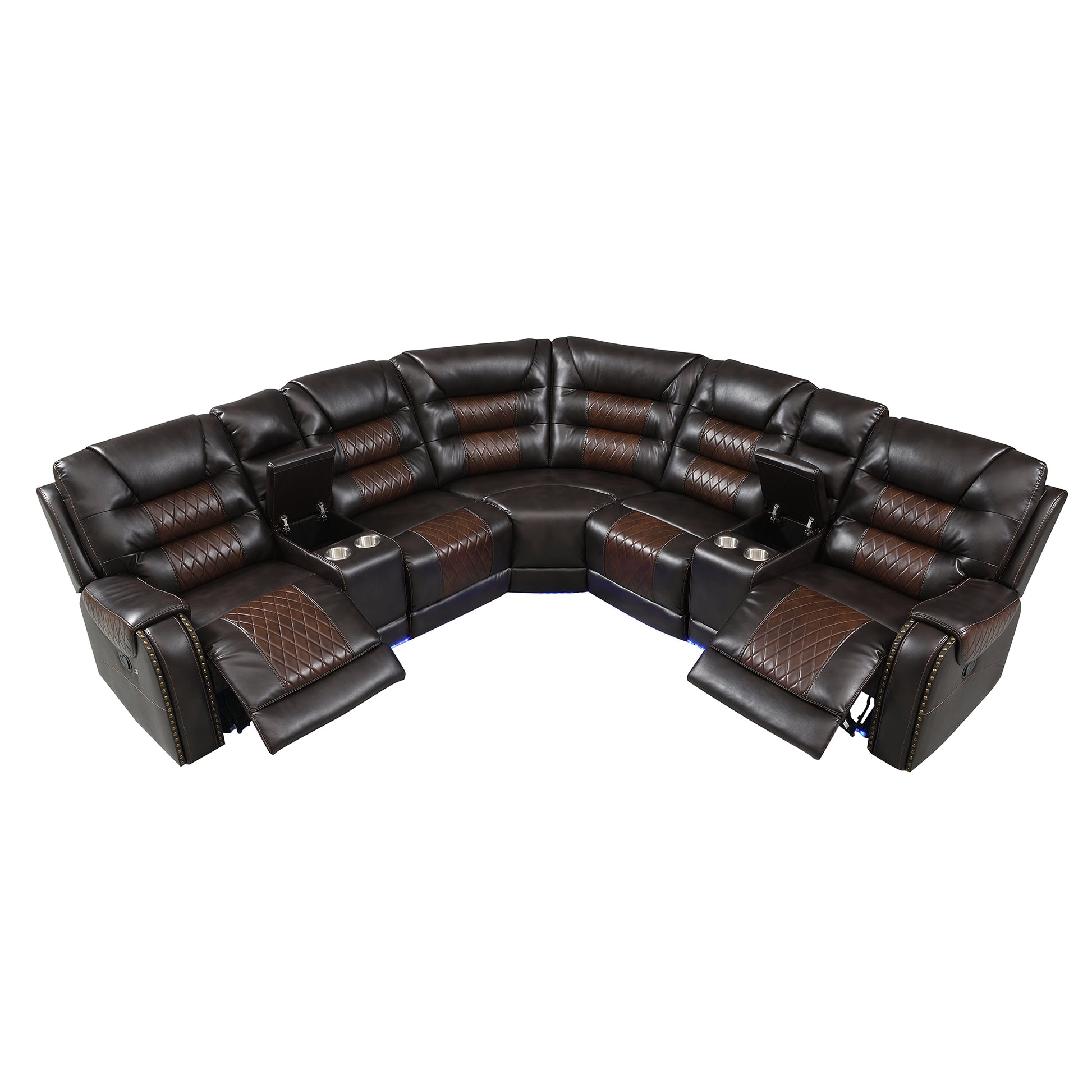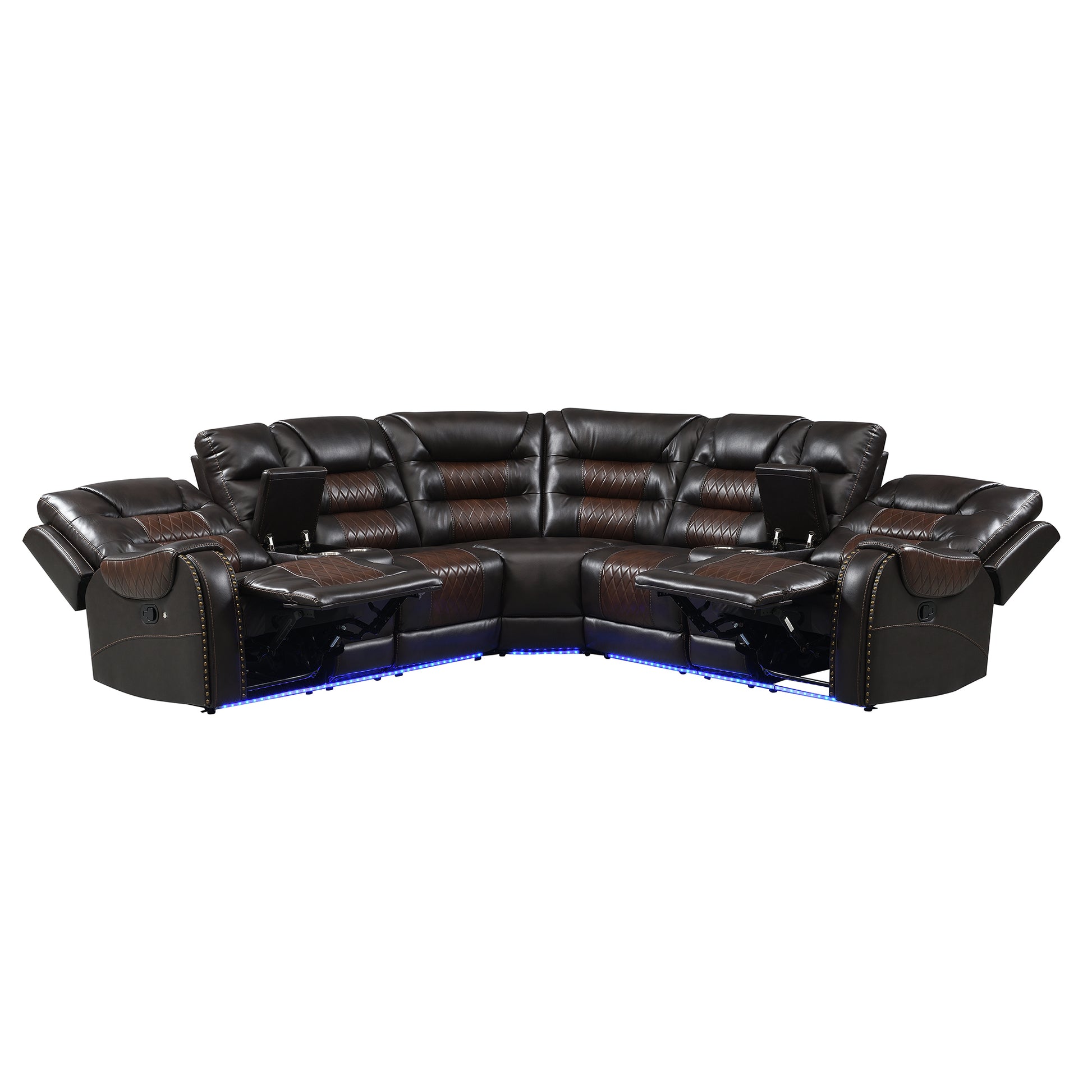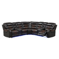 112.2" Manual Reclining Sectional Sofa Set L Shaped Symmetrical Motion Sofa Corner Couch Sets With Storage Boxes, 4 Cup Holders And Led Light Strip For Living Room, Brown Brown Foam Pu Leather 5 Seat