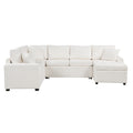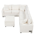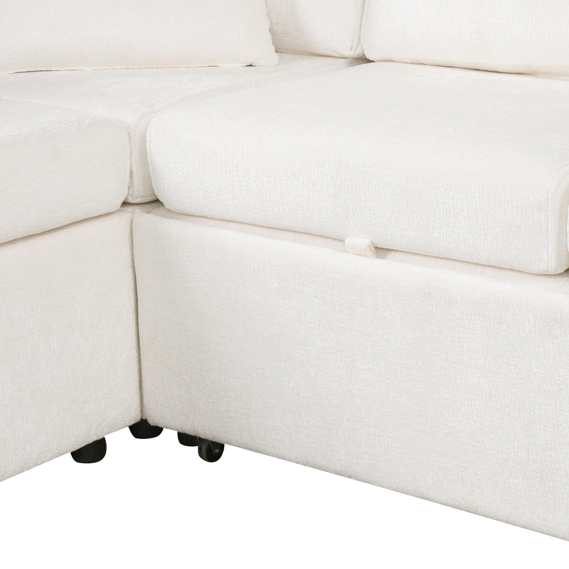 112.2" Sectional Sofa Pull Out Sofa Bed Sleeper With A Storage Ottoman,Three Pillows And Charging Devices For Living Room, Cream Cream Foam Chenille 6 Seat