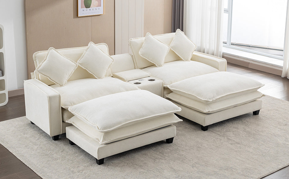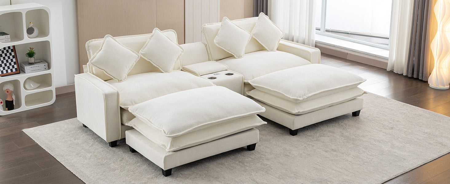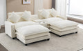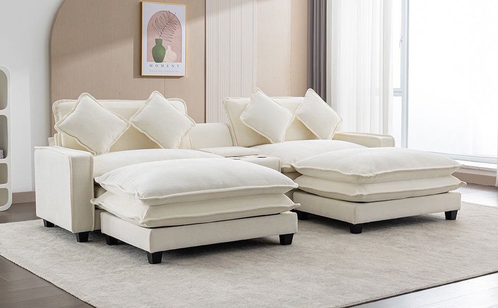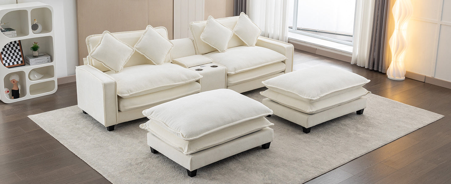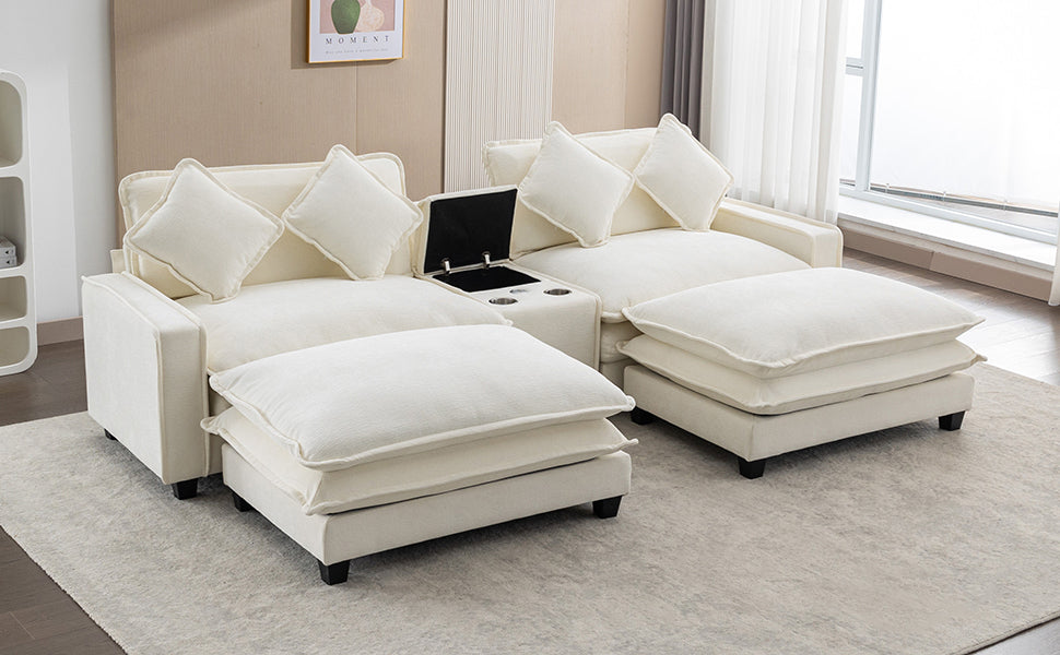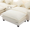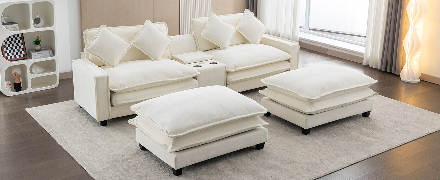 112.6" Sectional Sofa Chenille Upholstered Sofa With Two Removable Ottoman, Two Usb Ports, Two Cup Holders And Large Storage Box For Living Room, Beige Beige Foam Chenille 2 Seat