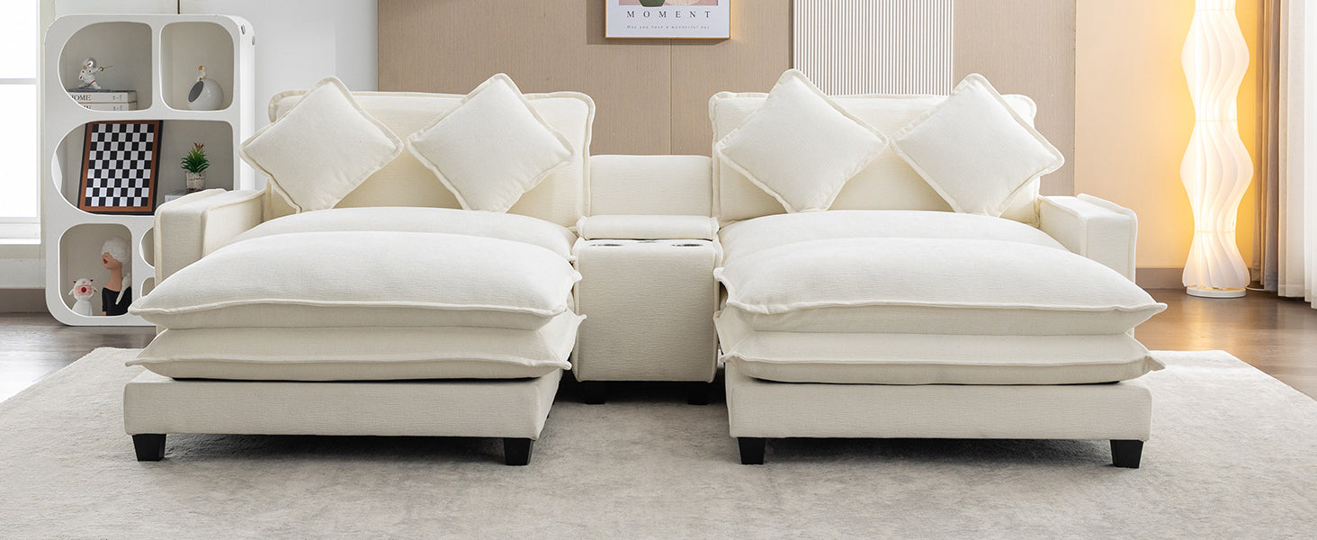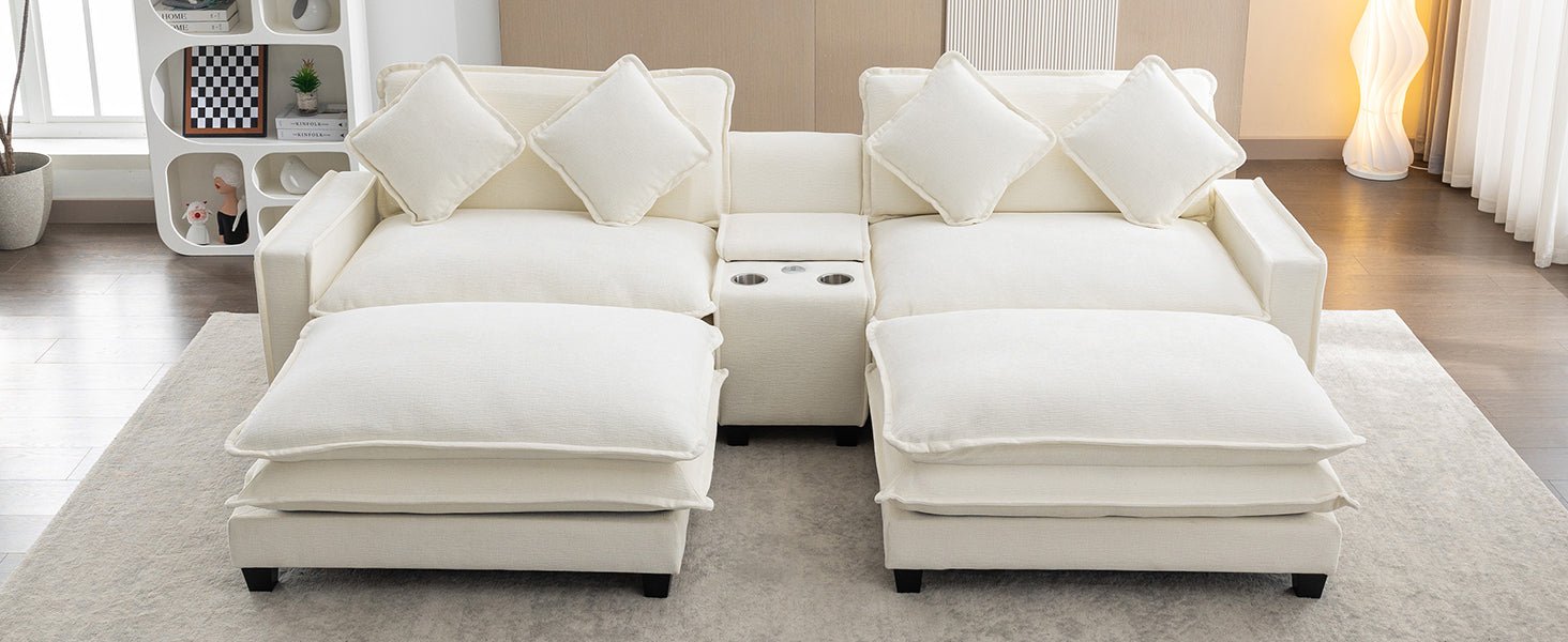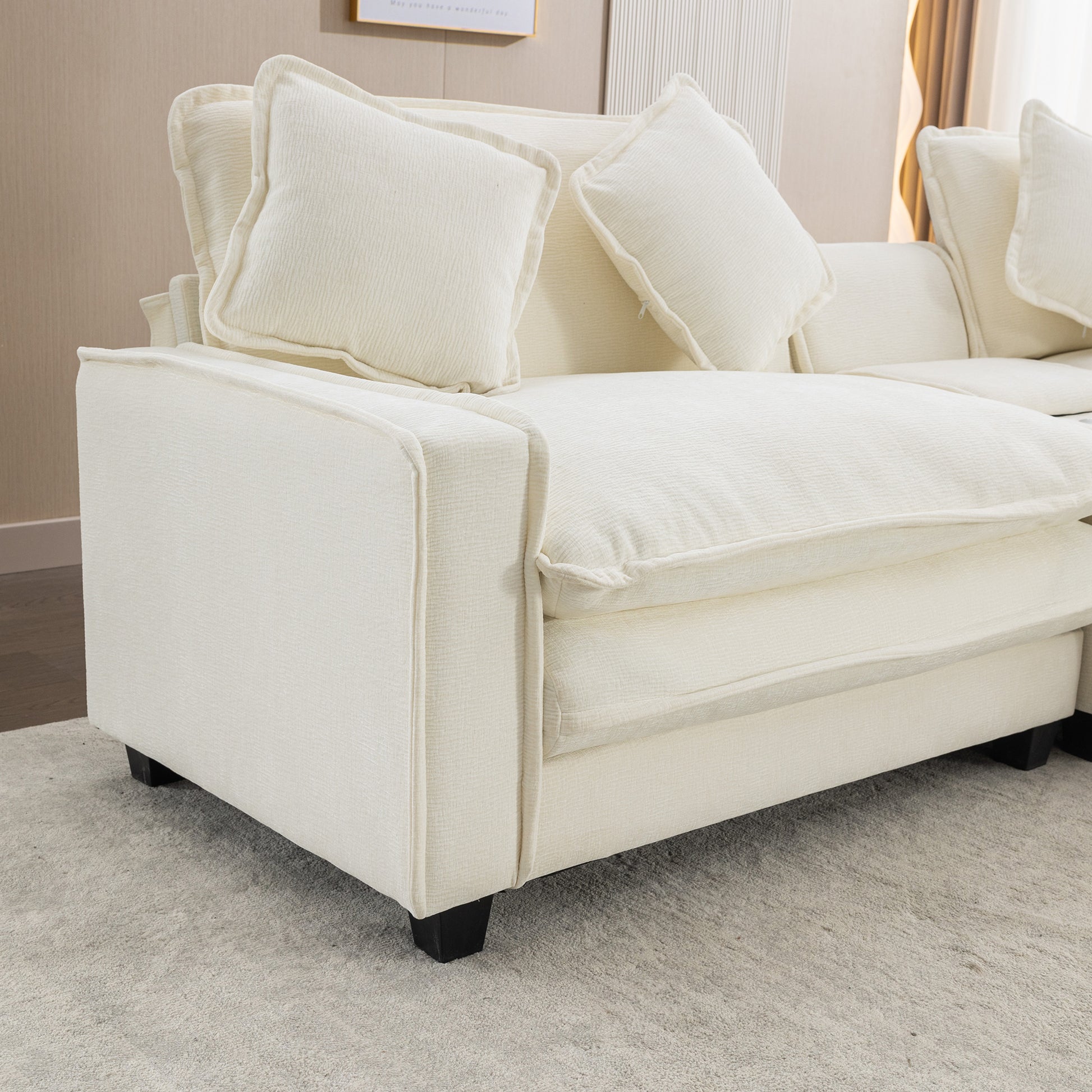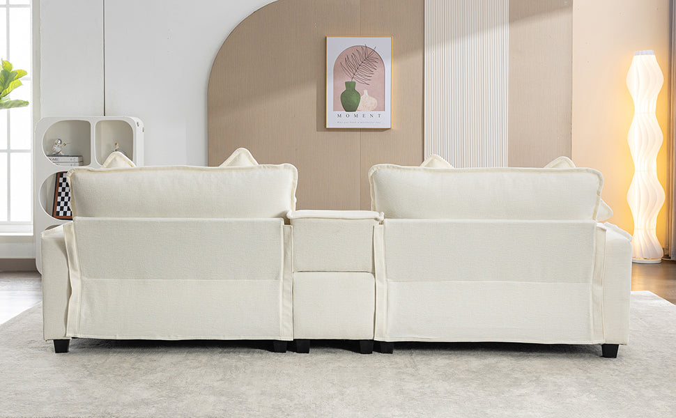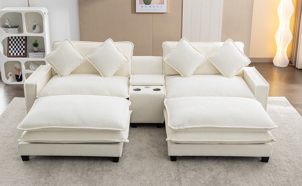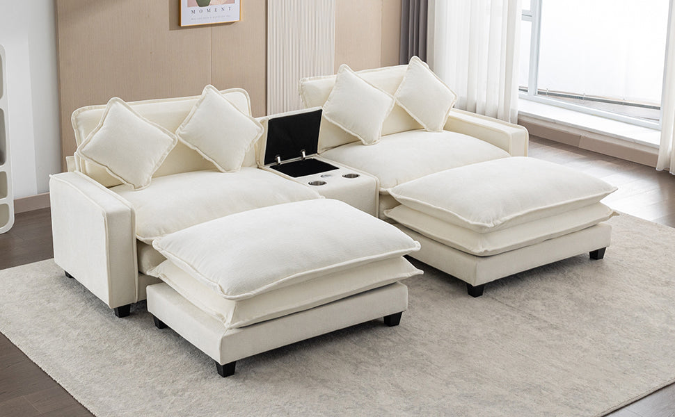 112.6" Sectional Sofa Chenille Upholstered Sofa With Two Removable Ottoman, Two Usb Ports, Two Cup Holders And Large Storage Box For Living Room, Beige Beige Foam Chenille 2 Seat