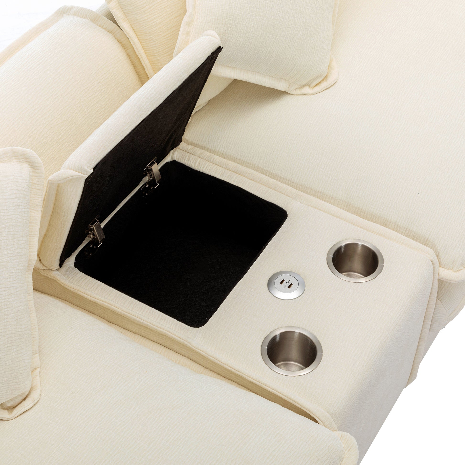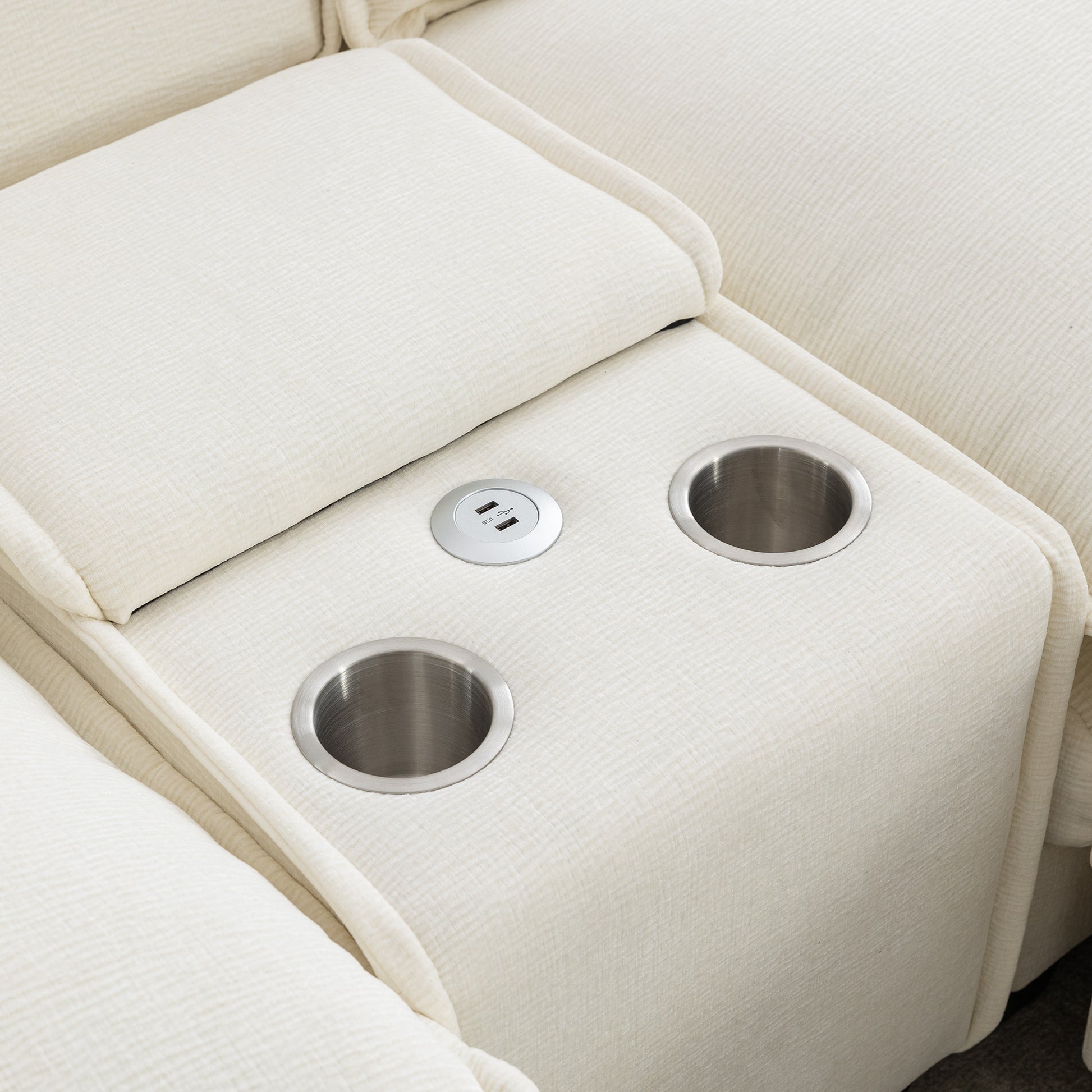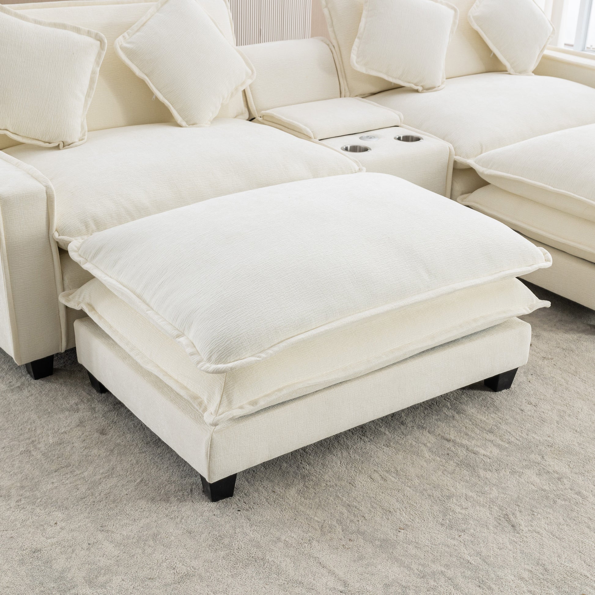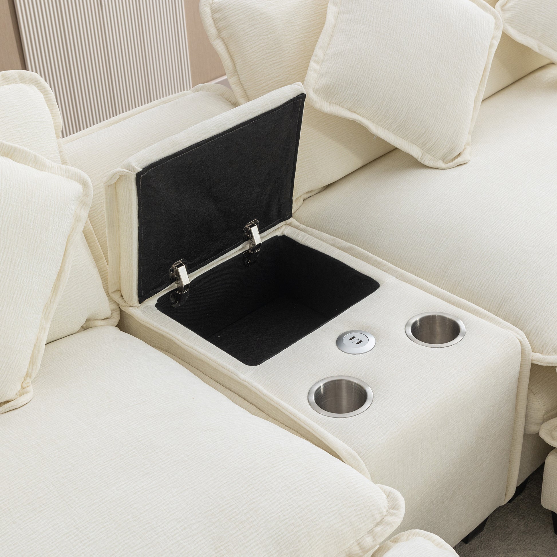 112.6" Sectional Sofa Chenille Upholstered Sofa With Two Removable Ottoman, Two Usb Ports, Two Cup Holders And Large Storage Box For Living Room, Beige Beige Foam Chenille 2 Seat