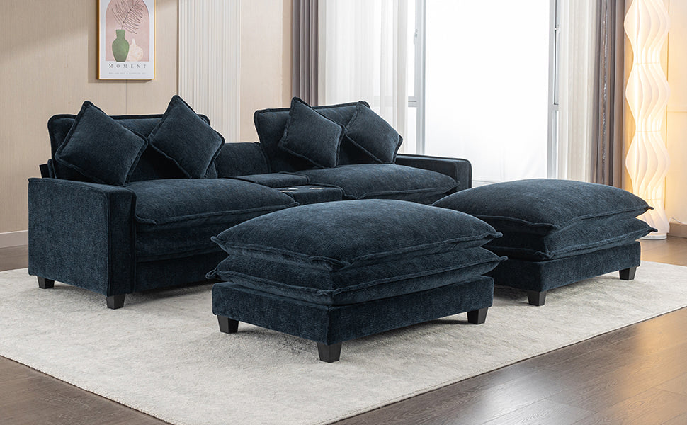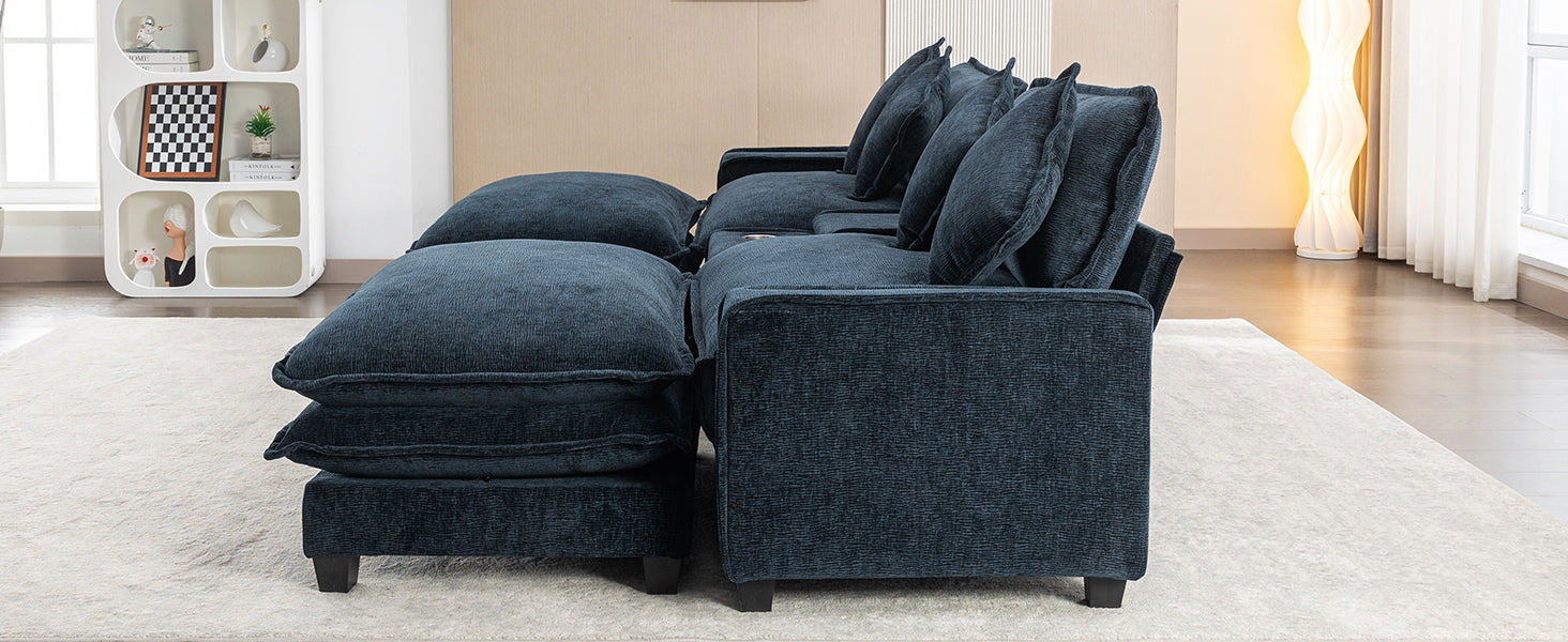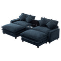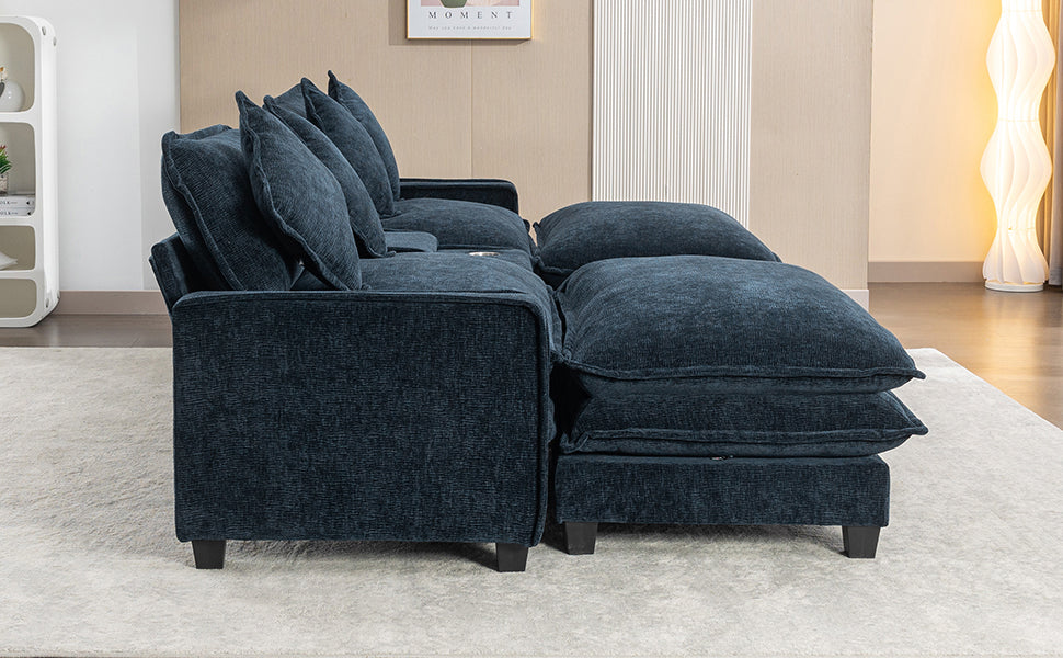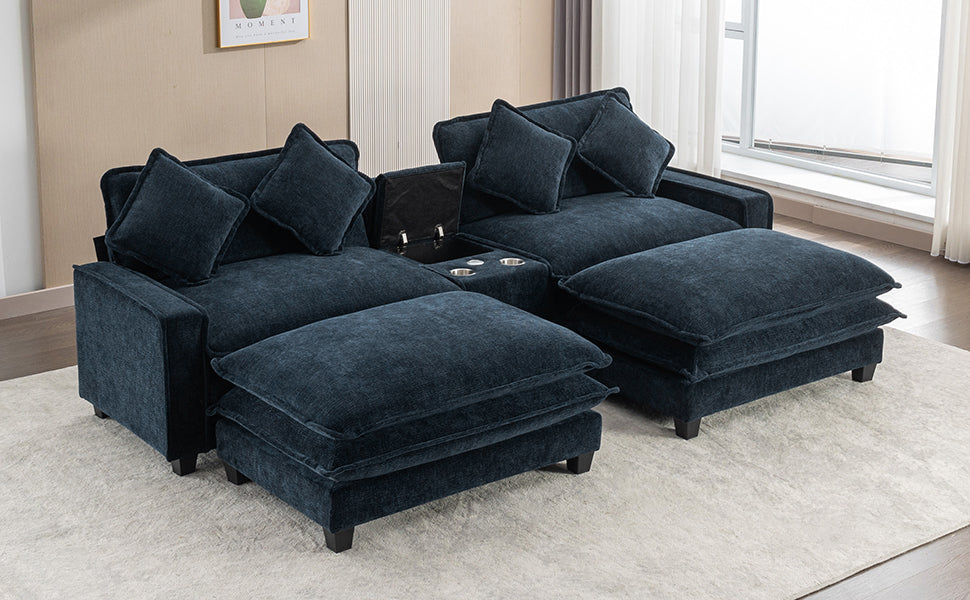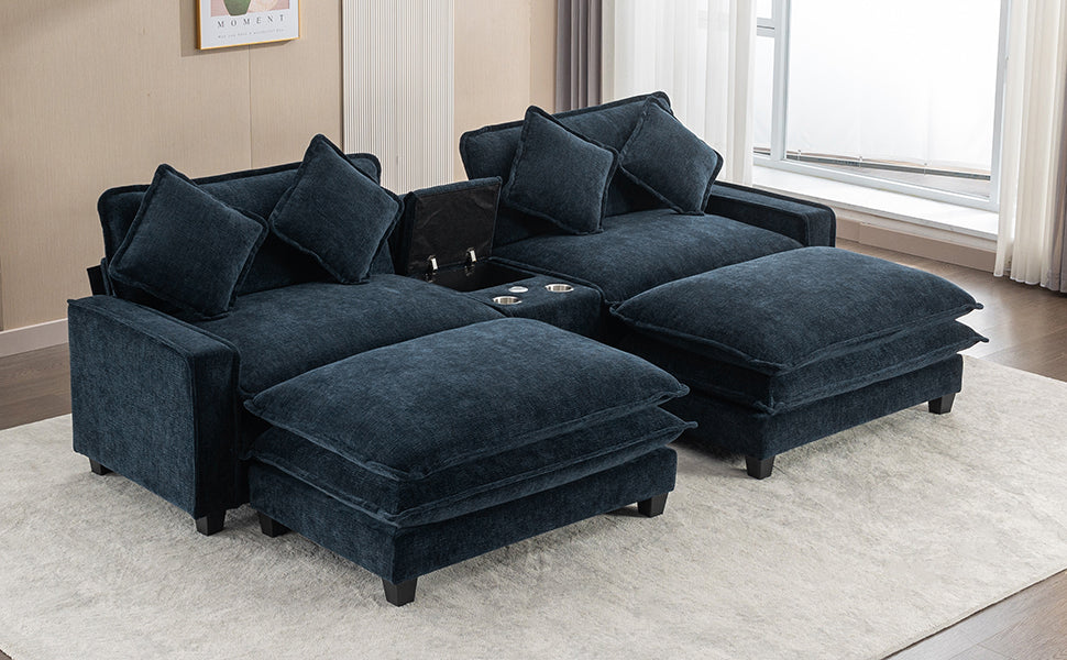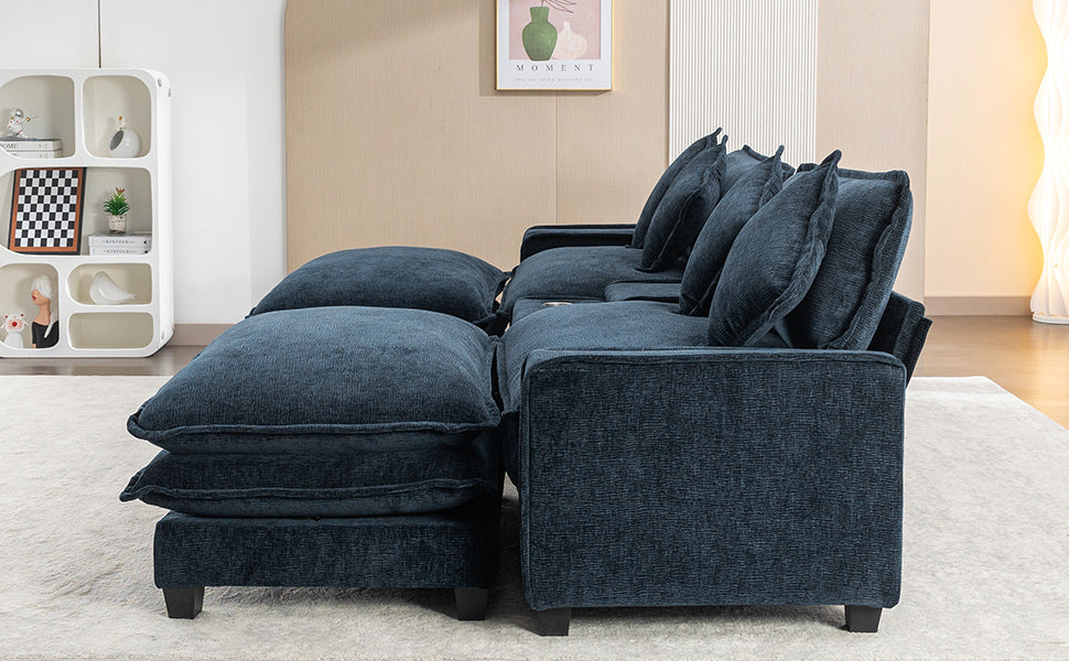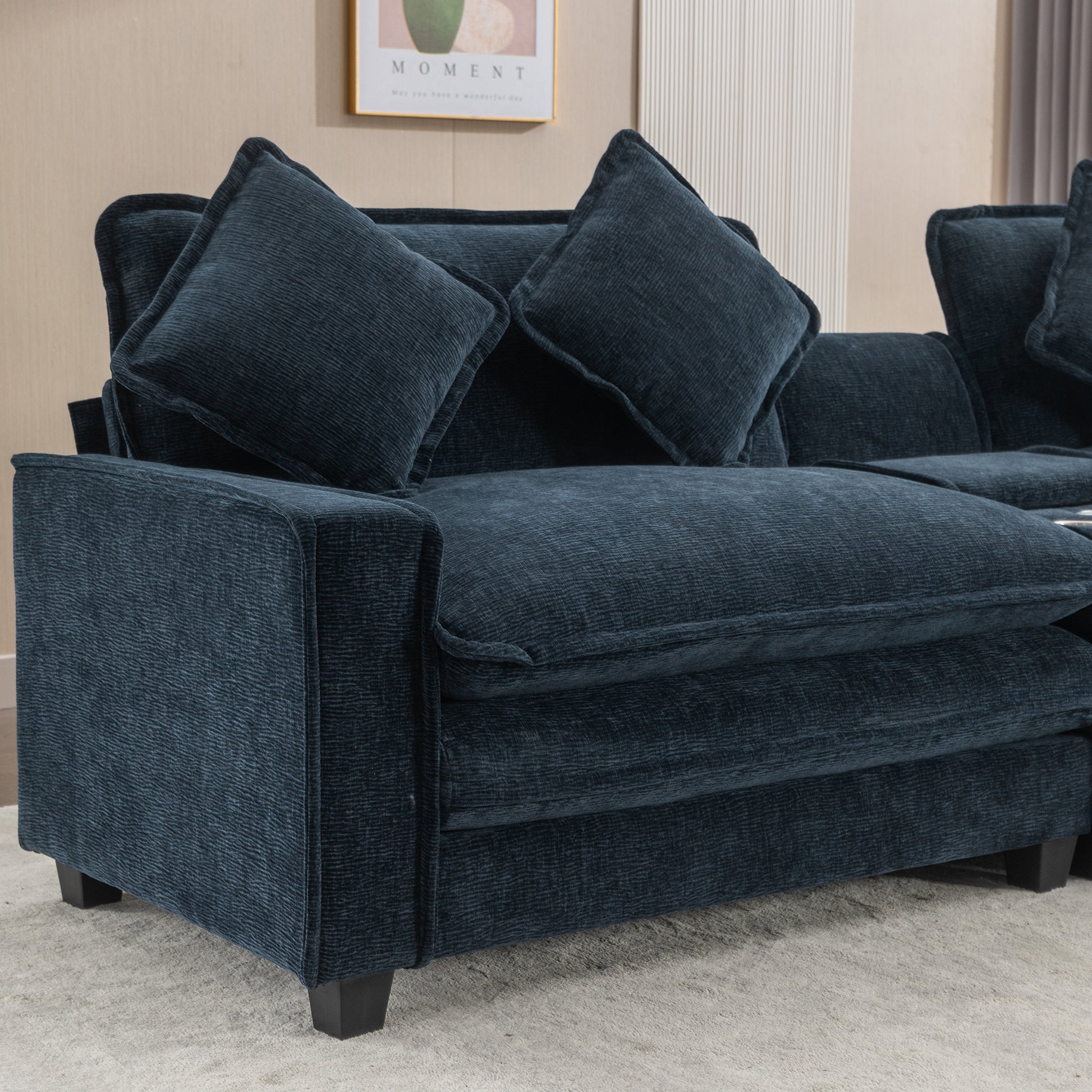 112.6" Sectional Sofa Chenille Upholstered Sofa With Two Removable Ottoman, Two Usb Ports, Two Cup Holders And Large Storage Box For Living Room, Blue Blue Foam Chenille 2 Seat