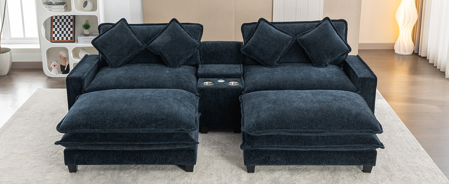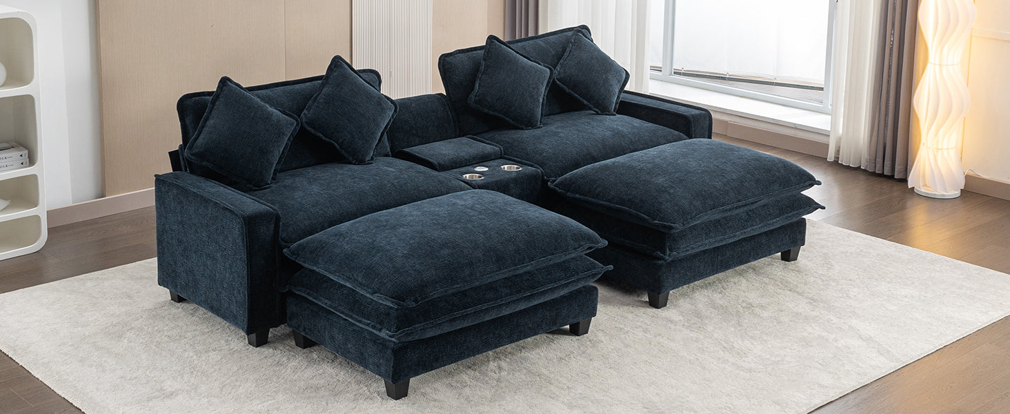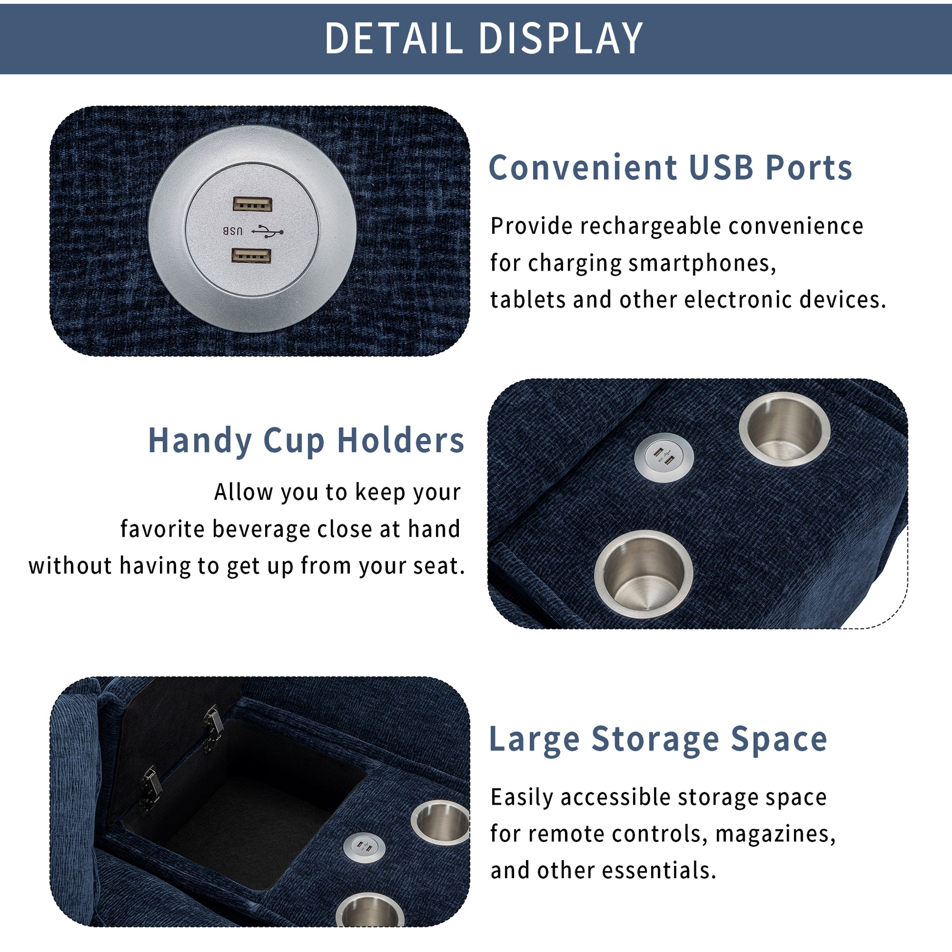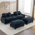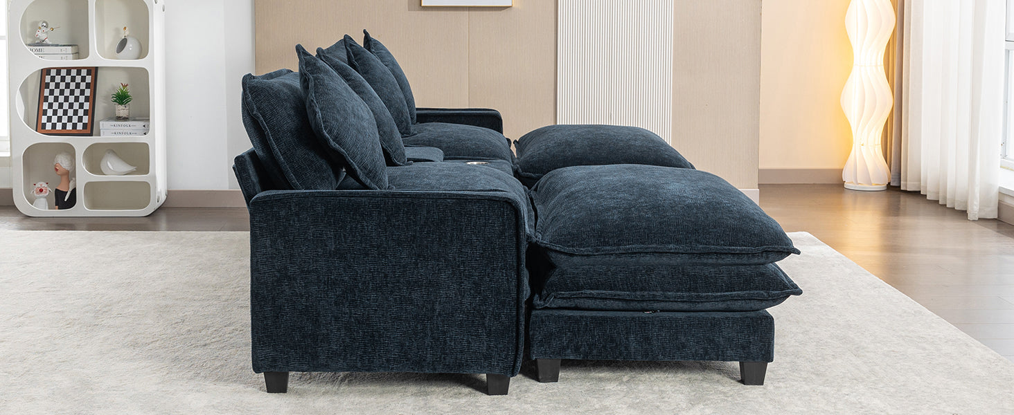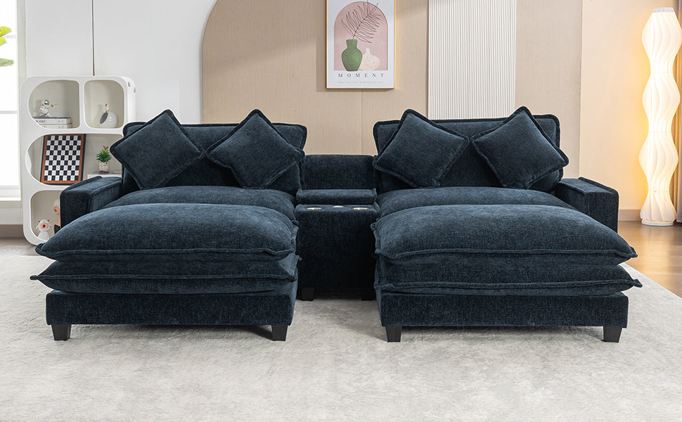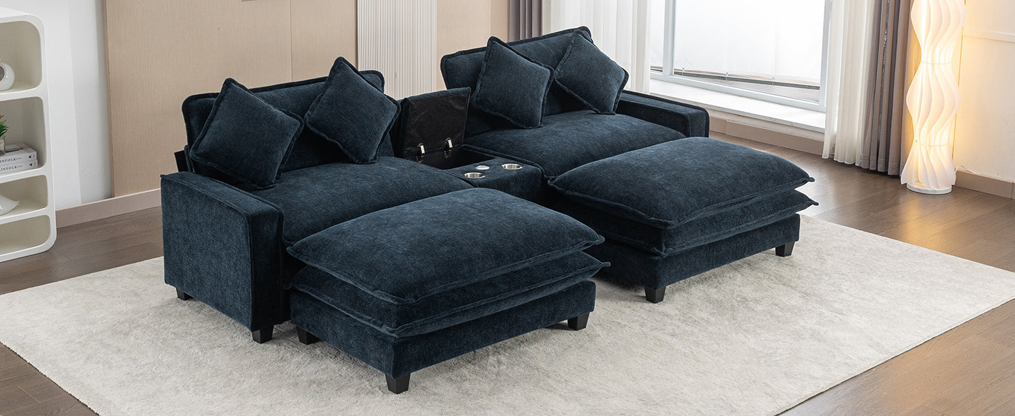 112.6" Sectional Sofa Chenille Upholstered Sofa With Two Removable Ottoman, Two Usb Ports, Two Cup Holders And Large Storage Box For Living Room, Blue Blue Foam Chenille 2 Seat