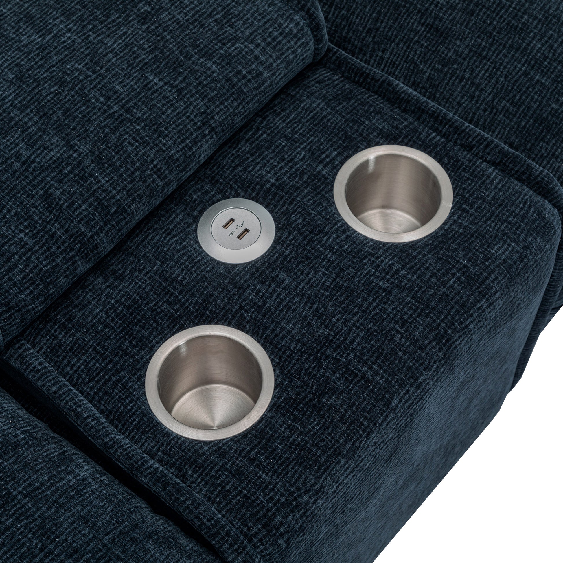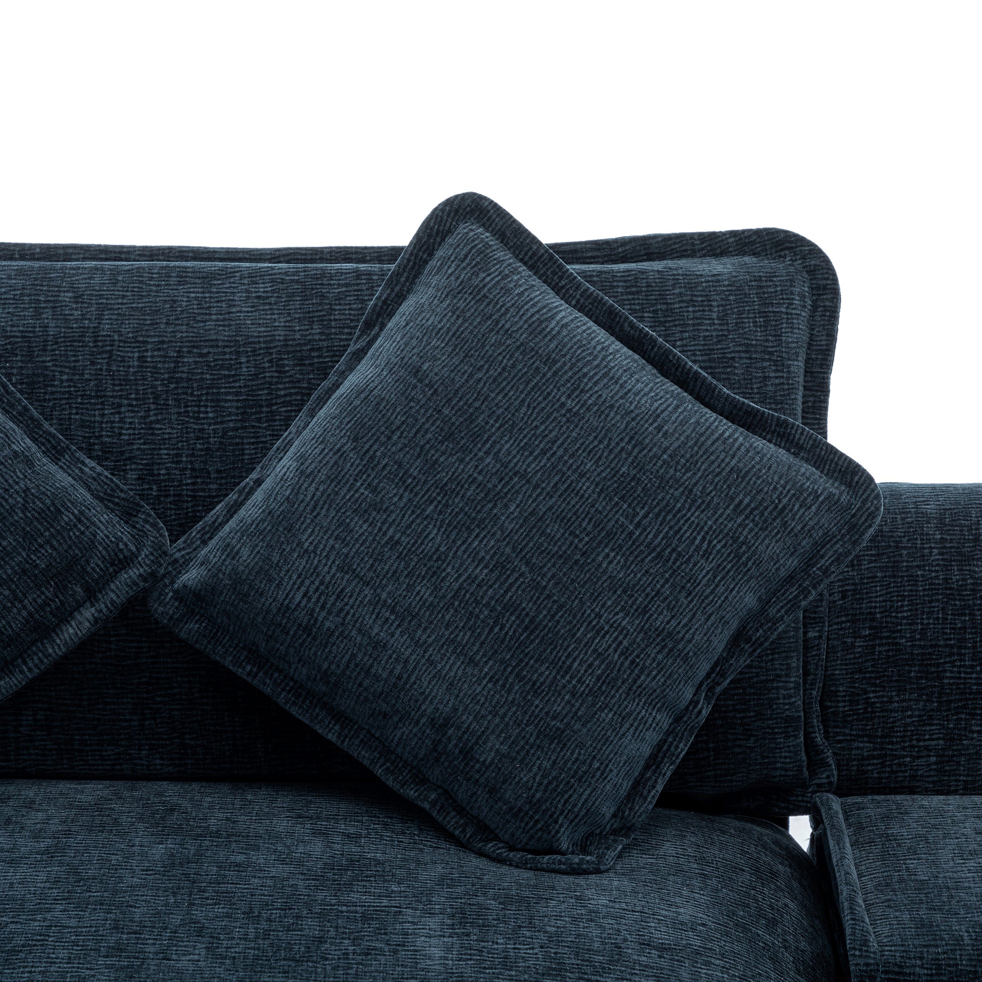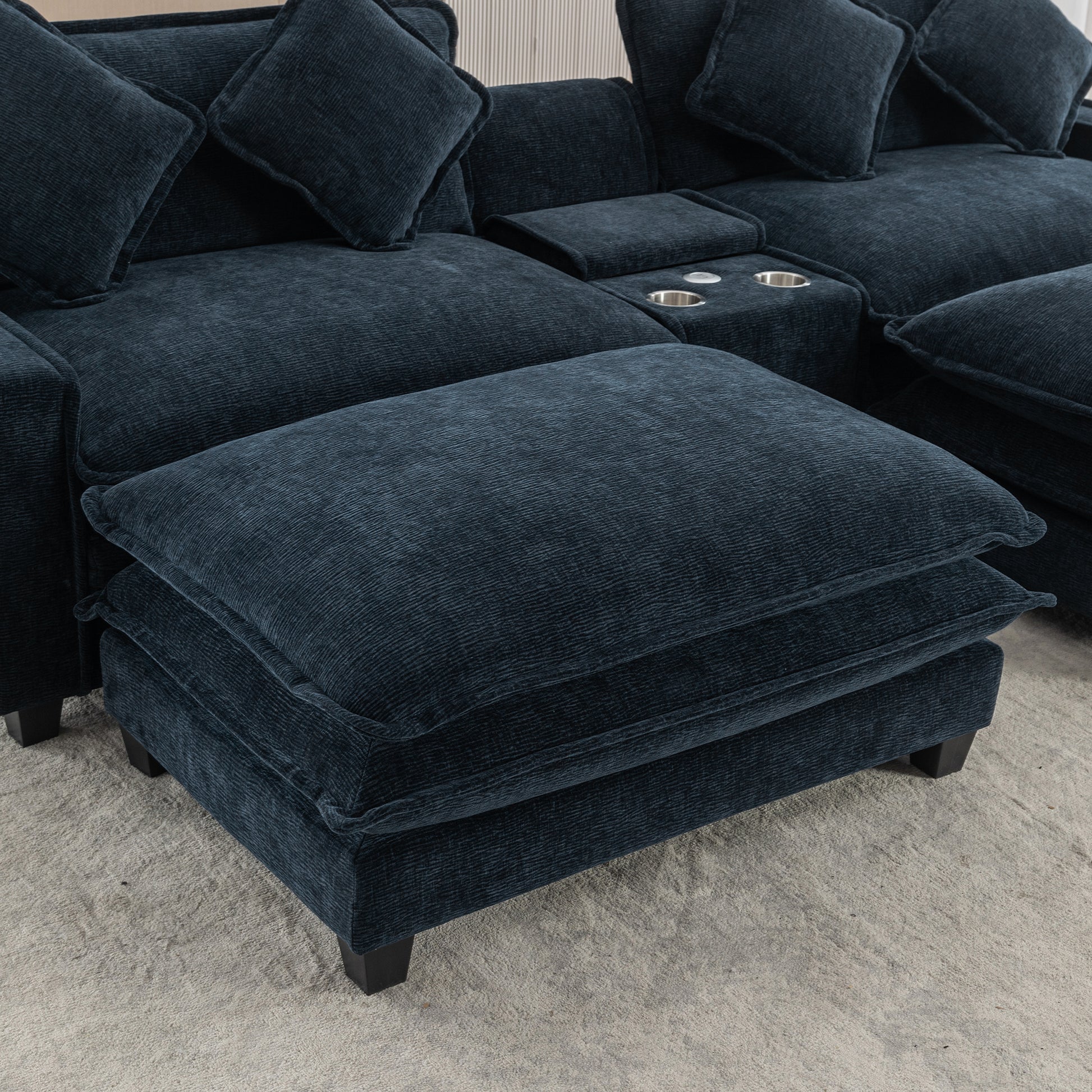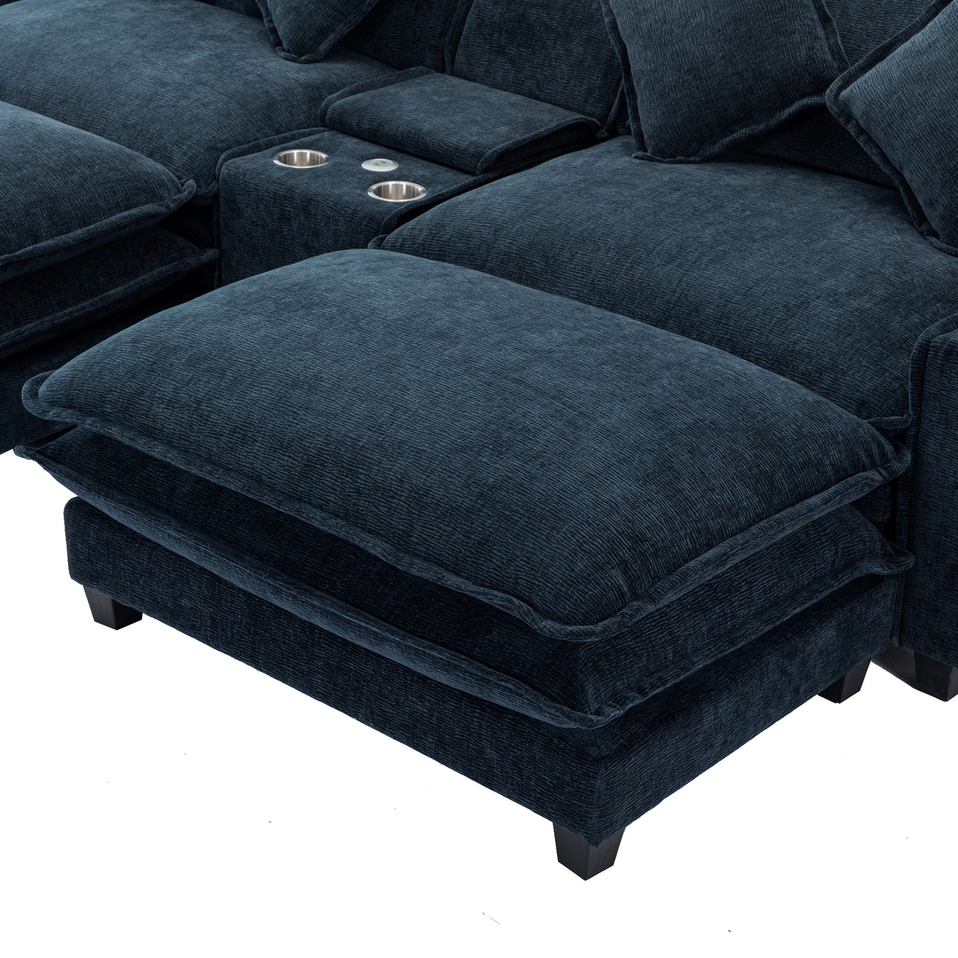 112.6" Sectional Sofa Chenille Upholstered Sofa With Two Removable Ottoman, Two Usb Ports, Two Cup Holders And Large Storage Box For Living Room, Blue Blue Foam Chenille 2 Seat