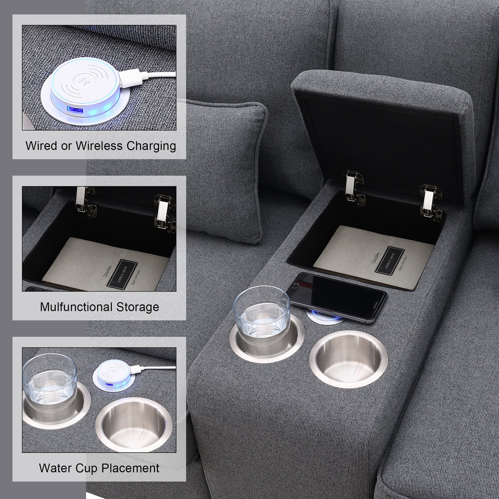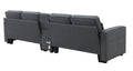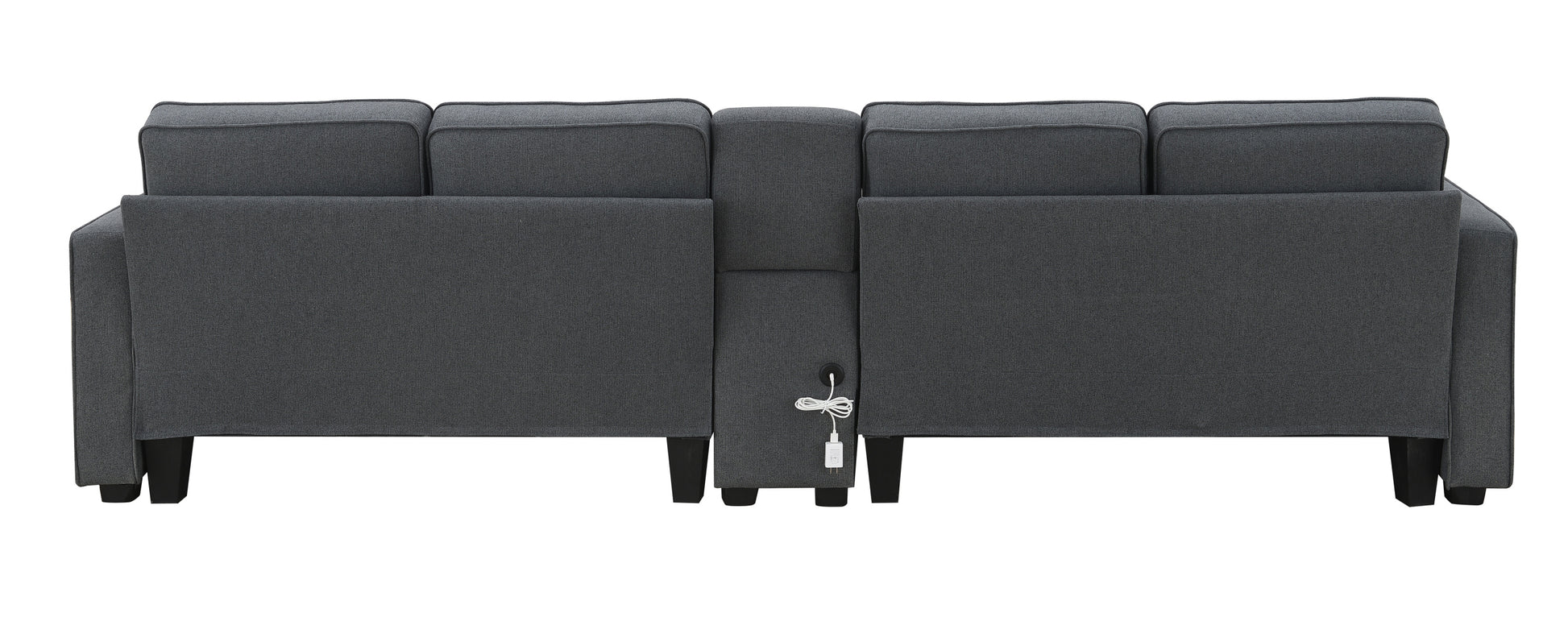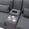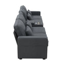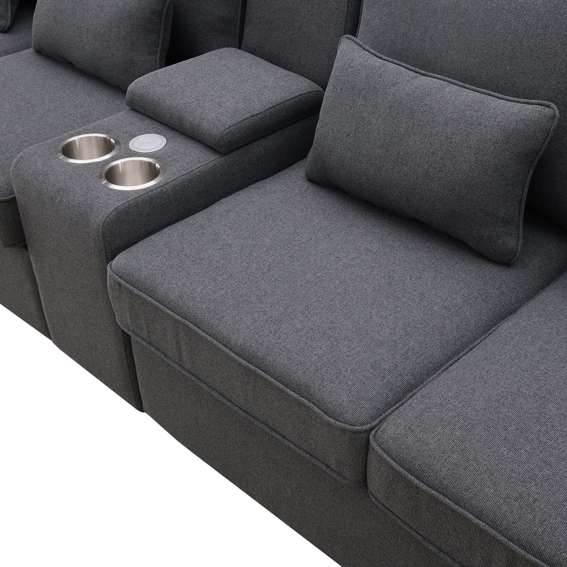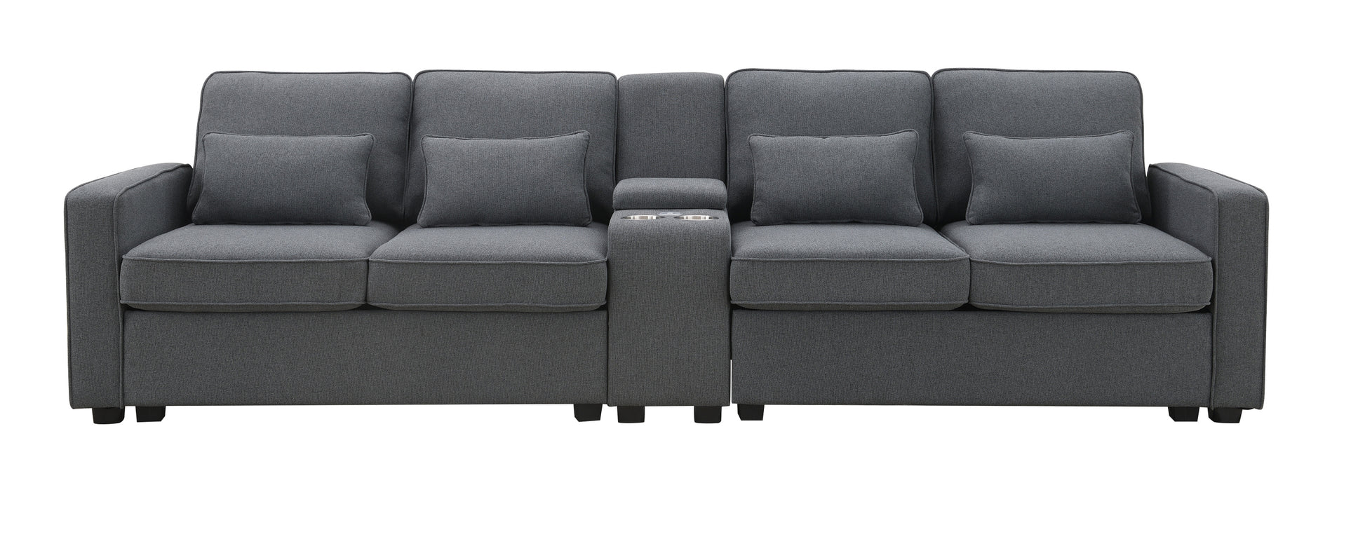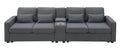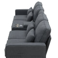114.2" Upholstered Sofa With Console, 2 Cupholders And 2 Usb Ports Wired Or Wirelessly Charged, Modern Linen Fabric Couches With 4 Pillows For Living Room, Apartment 4 Seat Dark Grey Fabric 4 Seat
