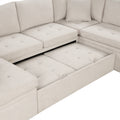 117.3" Oversized Sectional Sofa U Shaped Sofa Couch Pull Out Sofa Bed With Two Throw Pillows For Living Room, Beige Beige Foam Chenille 4 Seat