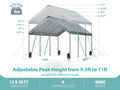 12*20 Heavy Duty Carport Canopy Extra Large Portable Car Tent Garage With Adjustable Peak Height From 9.5Ft To 11Ft,Metal Roof &Side Walls For Car, Suv,Boats&Truck Party Tent Shelter Logic Storage Gray Rectangular None Garden & Outdoor Water Resistant
