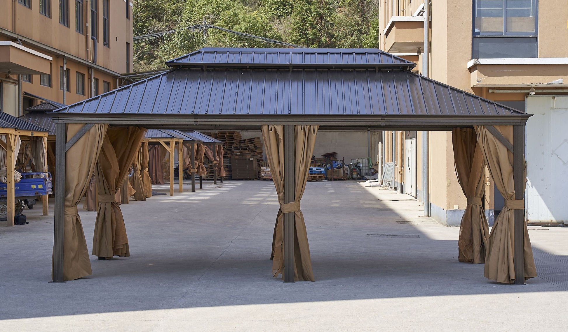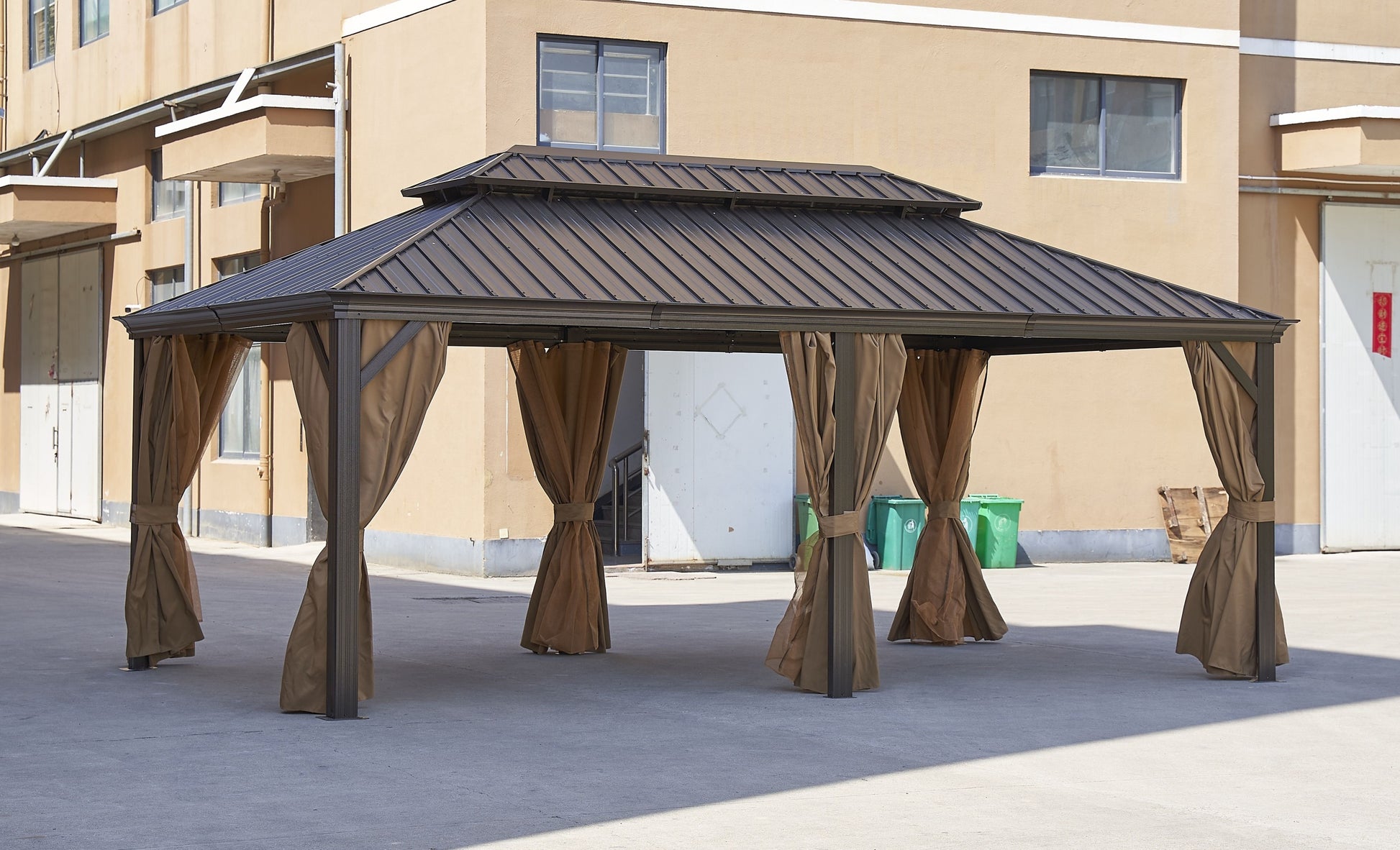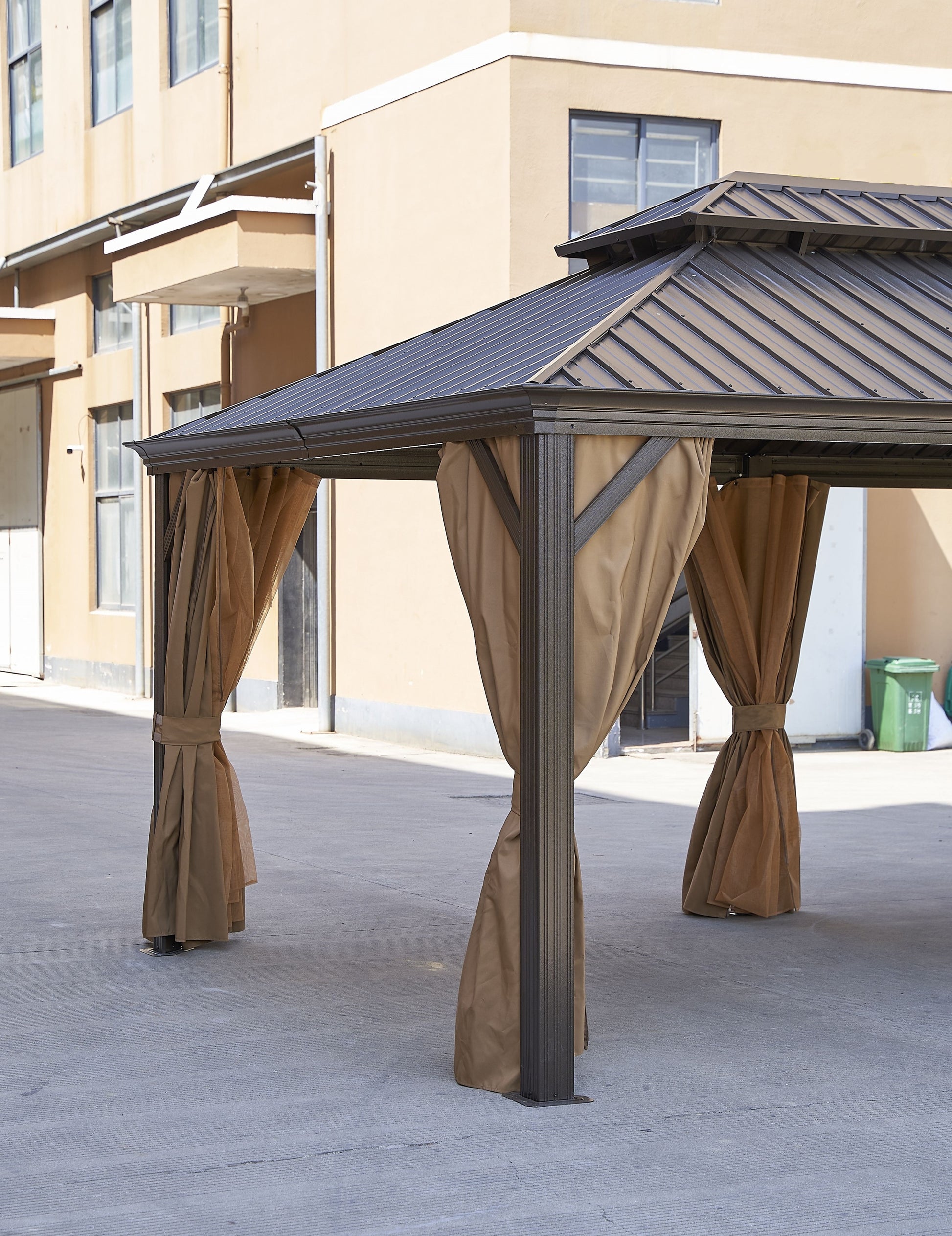 12*20Ft Patic Gazebo,Alu Gazebo With Steel Canopy,Outdoor Permanent Hardtop Gazebo Canopy For Patio, Garden, Backyard Bronze Steel