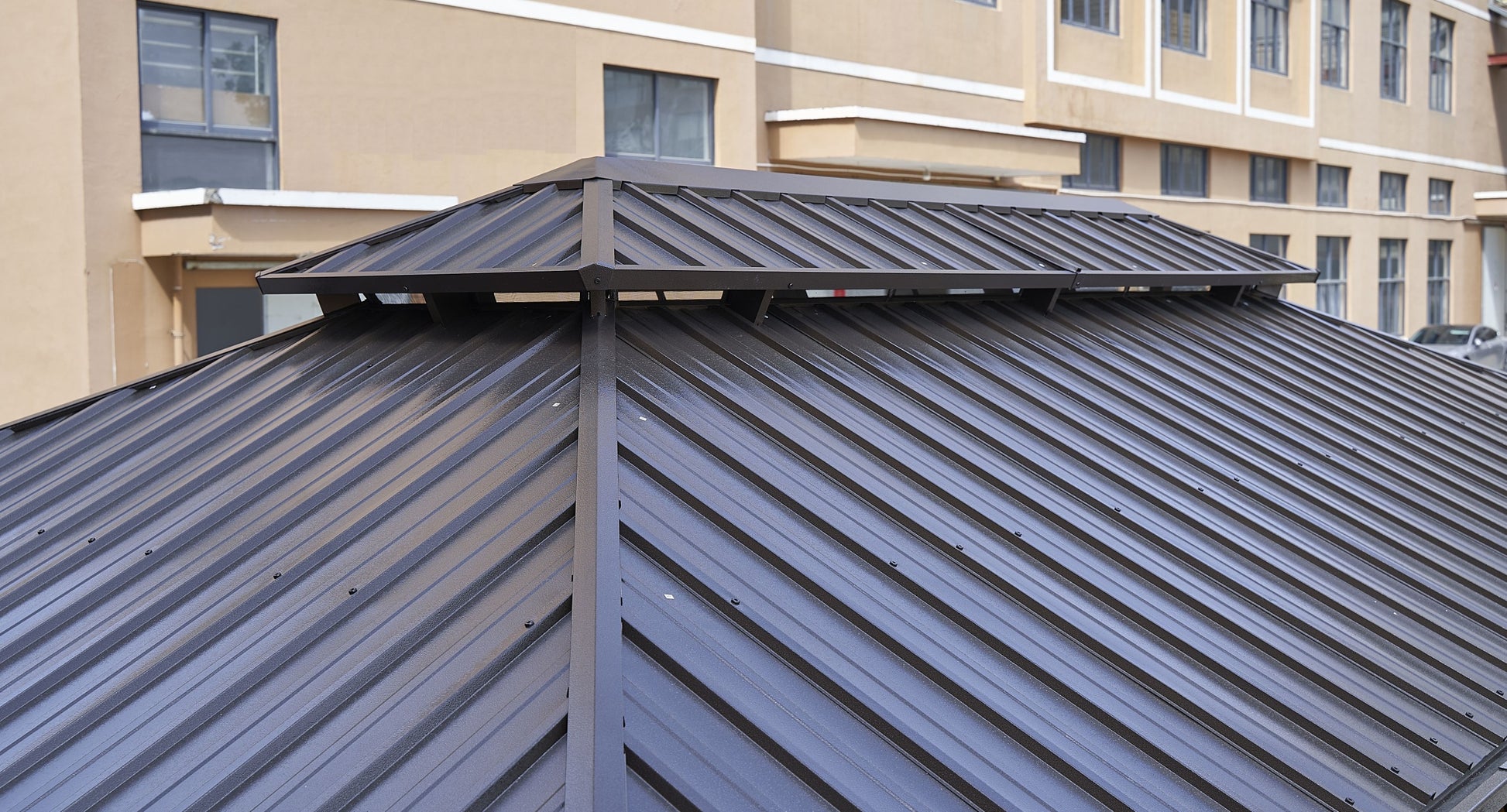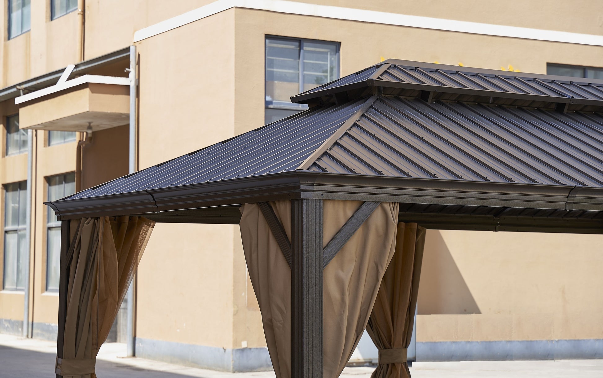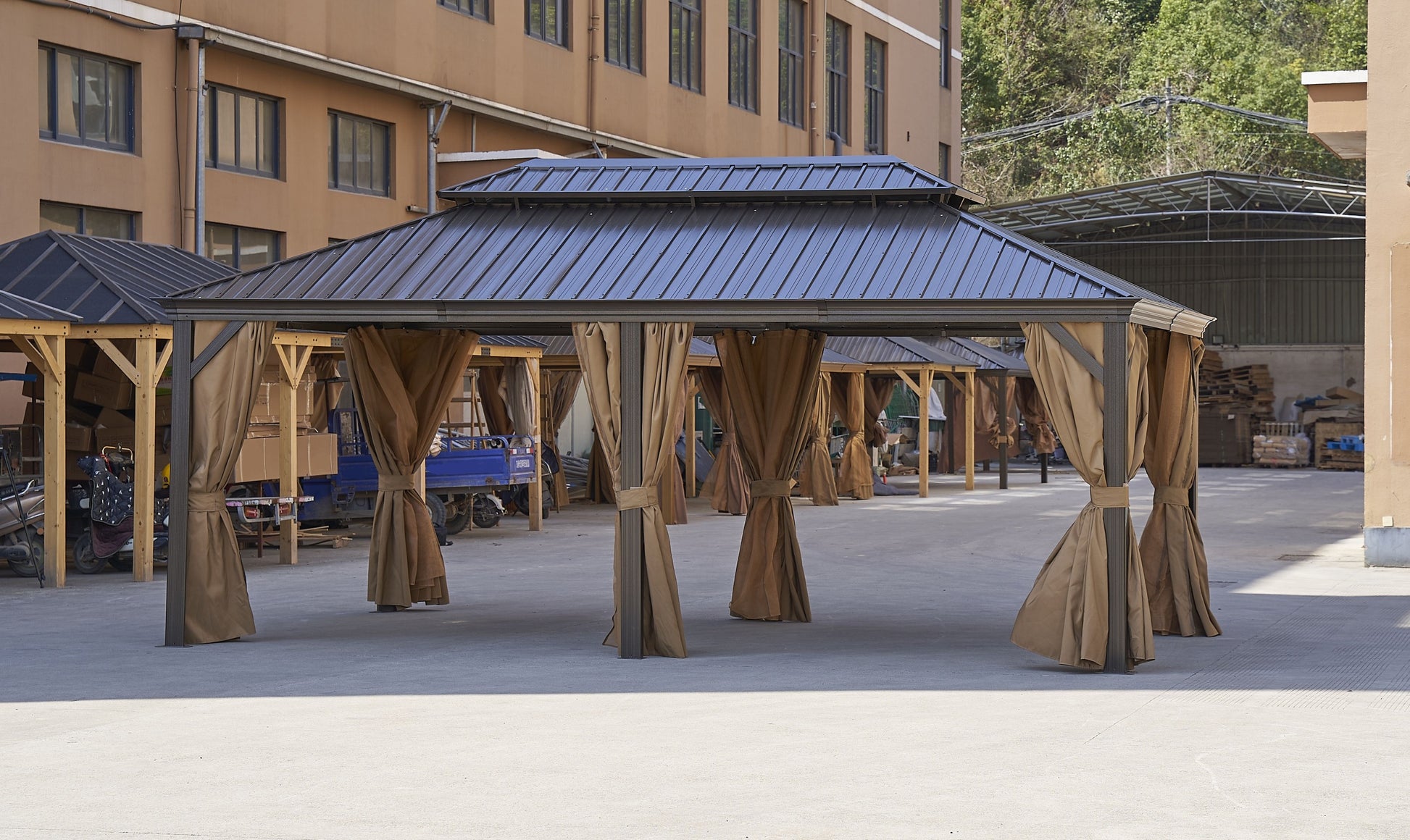 12*20Ft Patic Gazebo,Alu Gazebo With Steel Canopy,Outdoor Permanent Hardtop Gazebo Canopy For Patio, Garden, Backyard Bronze Steel