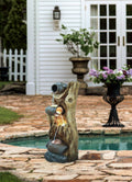 12.4X11.6X37.8" Decorative 3 Tier Tree Trunk Fountain With Lights And Pump, Brown Brown Garden & Outdoor Farmhouse,French Country,Pastoral,Rustic,Traditional Polyresin