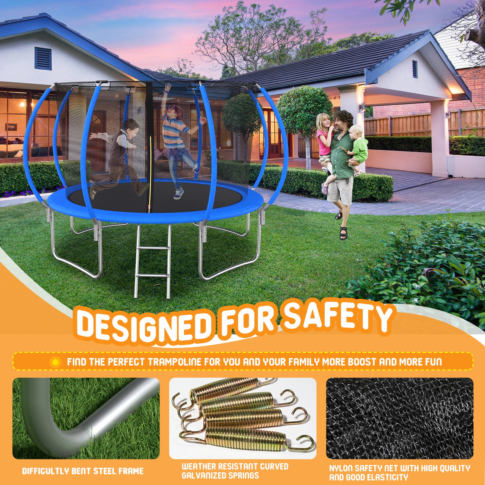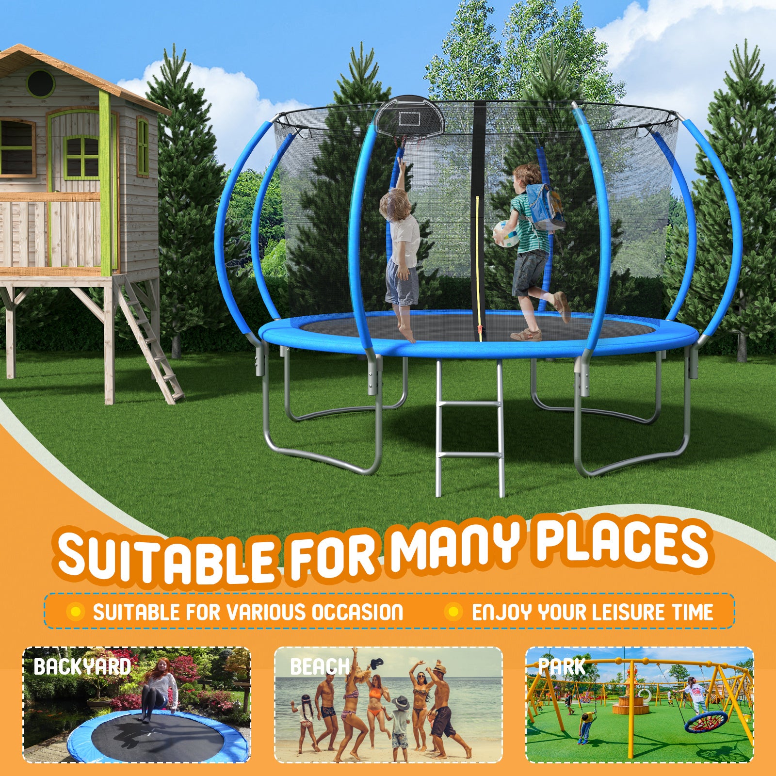12 Ft Trampoline Pumpkin Style Safety Net With Basketball Hoop Blue Metal