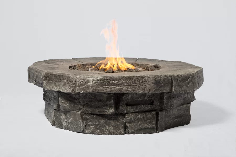 12" H X 39" W Outdoor Fire Pit Table Cm 1020 Acacia Wood Modern Concrete