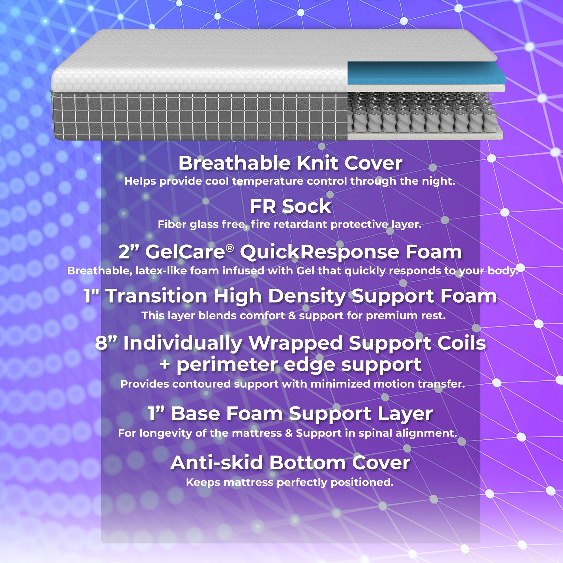 12 Inch Recharge Hybrid Cooling Hypergel Quick Response Foam And Coil Kids Mattress, Twin Xl Size White Bedroom Memory Foam Foam Spring Twin Xl