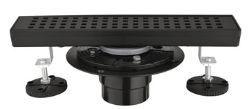 12 Inches Linear Shower Drain With Removable Quadrato Pattern Grate, 304 Stainless Shower Drain Included Hair Strainer And Leveling Feet, Flange Matte Black Stainless Steel