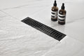 12 Inches Linear Shower Drain With Removable Quadrato Pattern Grate, 304 Stainless Shower Drain Included Hair Strainer And Leveling Feet Matte Black Stainless Steel