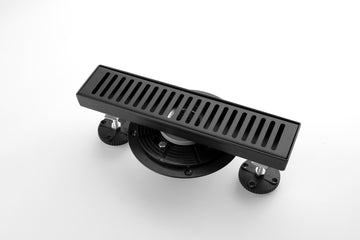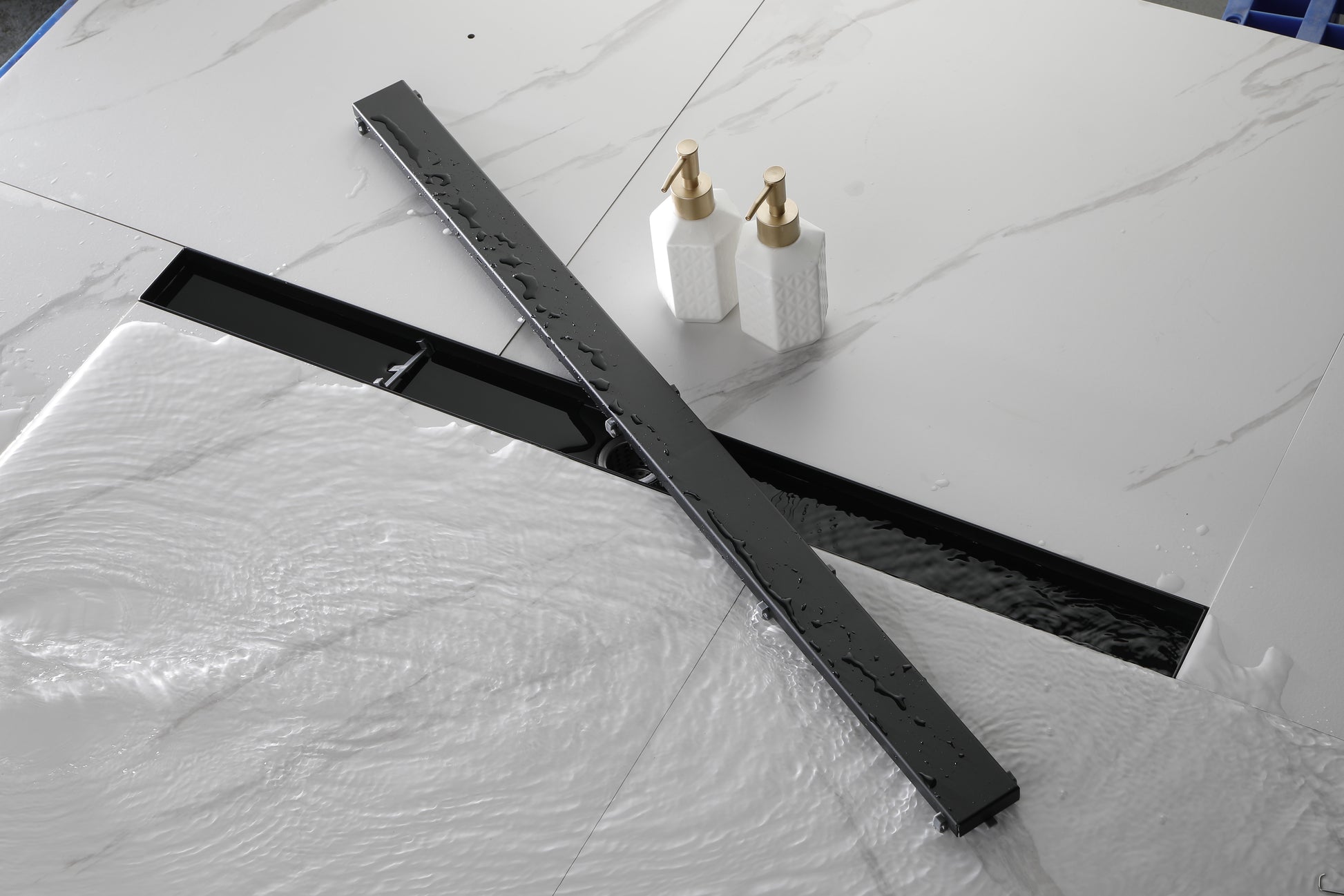 12 Inches Linear Shower Drain With Removable Capsule Pattern Grate, 304 Stainless Shower Drain Included Hair Strainer And Leveling Feet, Flange Matte Black Stainless Steel