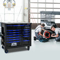 12 Layer Drawer Multi Purpose Tool Car, With Wheels, Iron Top Black Blue Steel