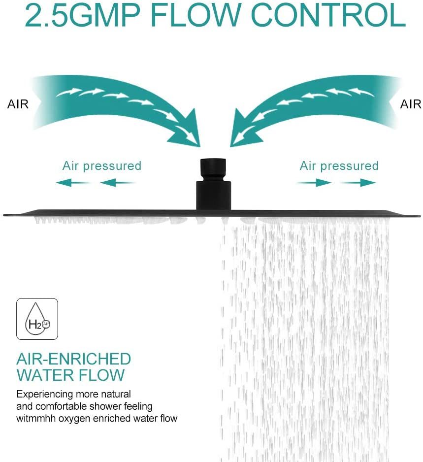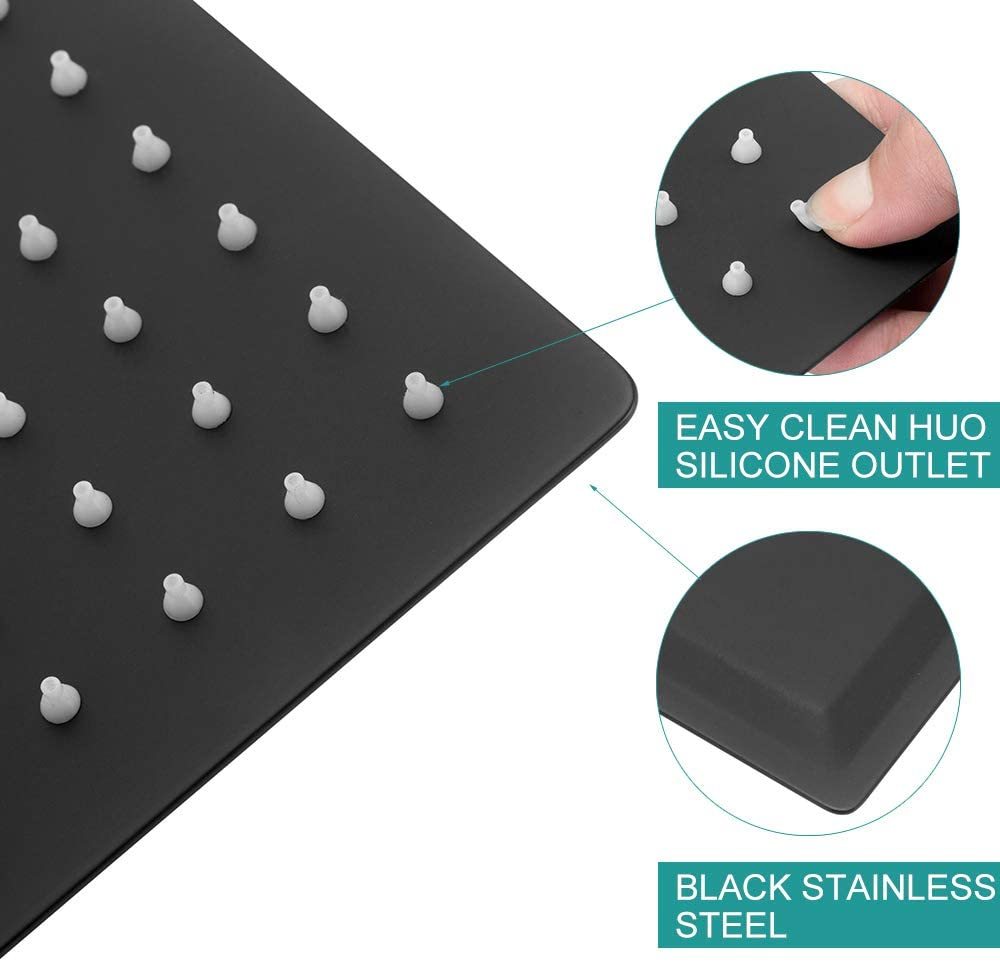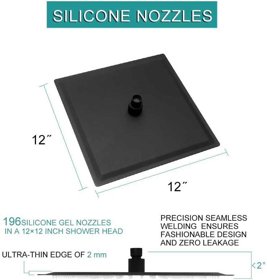 12" Square Rainfall Shower Head Black Top Sprayer Shower Head Wall Ceiling Mounted Matte Black Stainless Steel