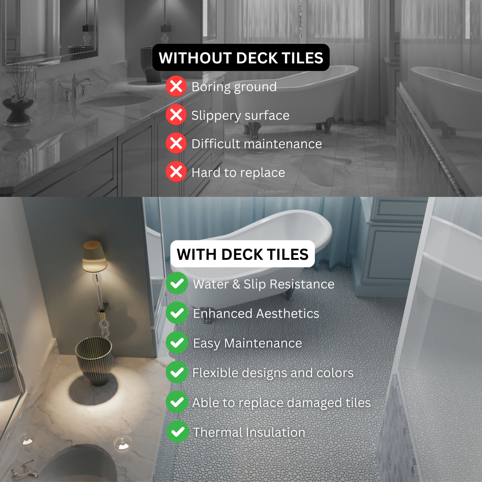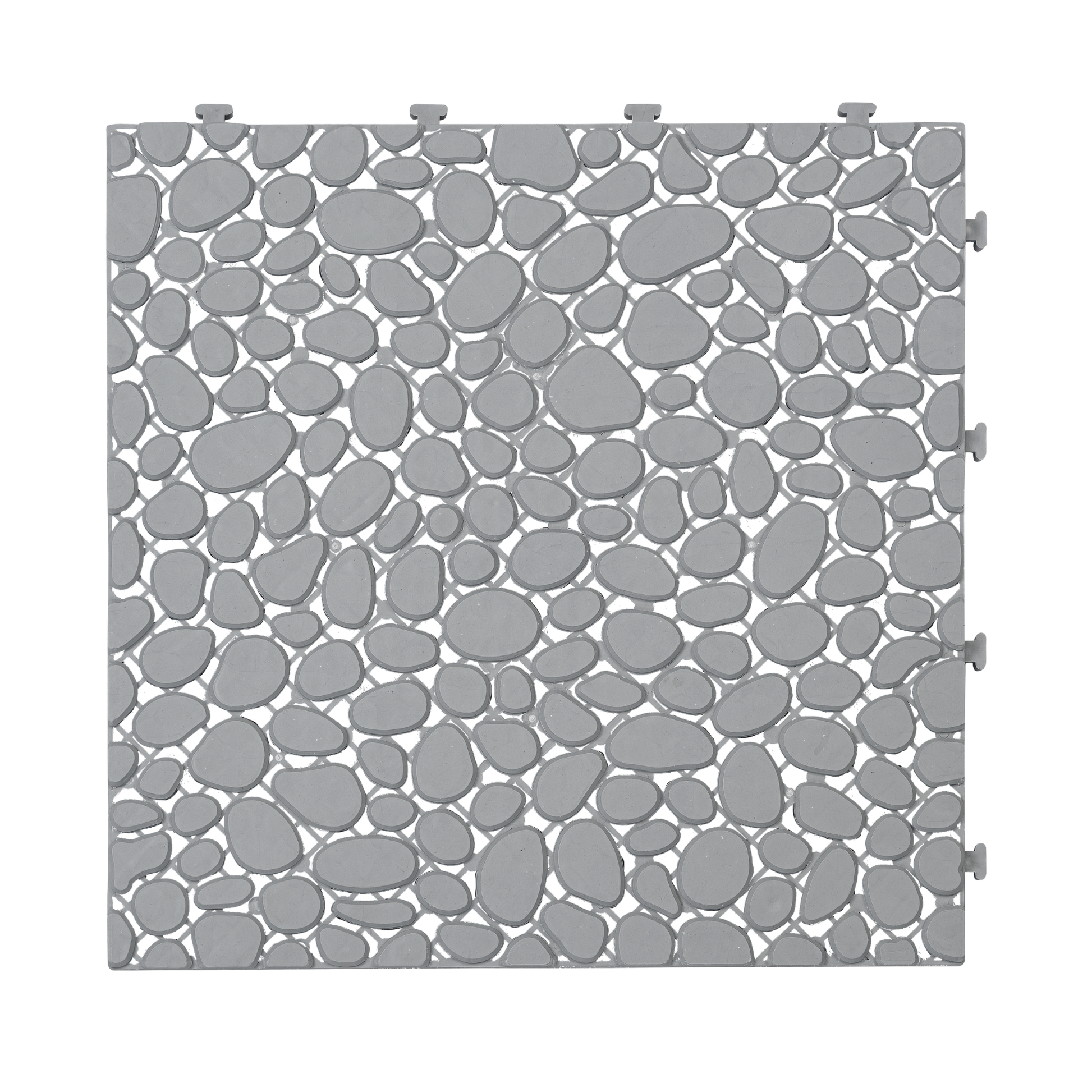 12 X 12 Inch Gray Interlocking Deck Tiles Plastic Waterproof Outdoor All Weather Anti Slip Bathroom Shower Balcony Porch Strong Weight Capacity Upto 440 Lbs, Pebble Stone Pattern Pack Of 24 Grey Bathroom American Design,American Traditional Plastic