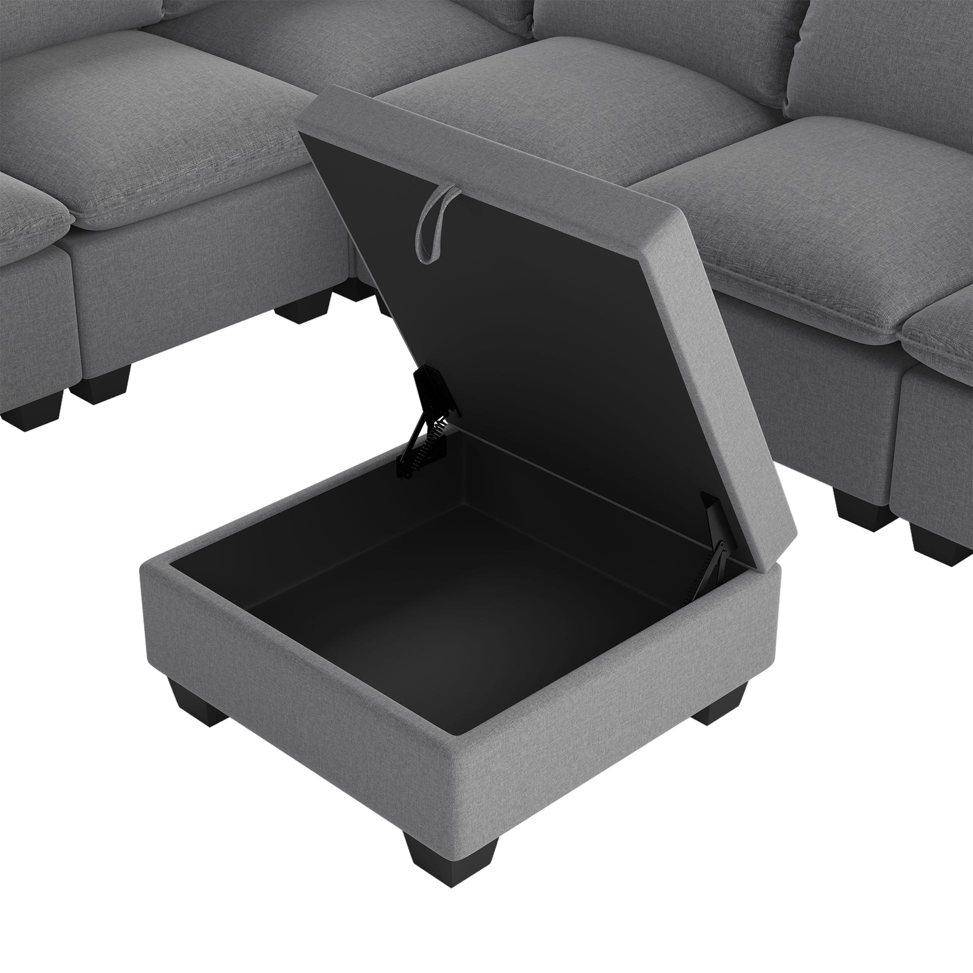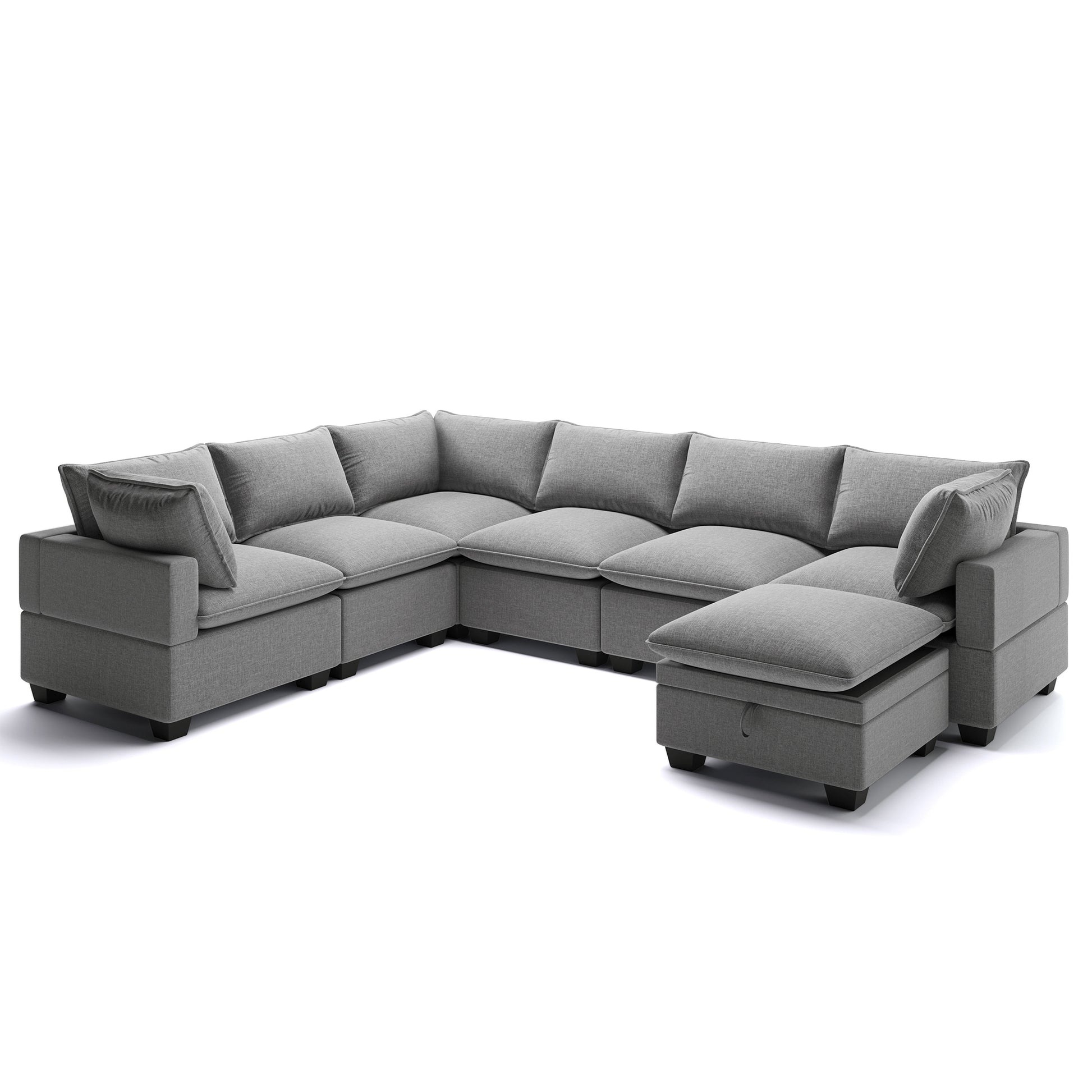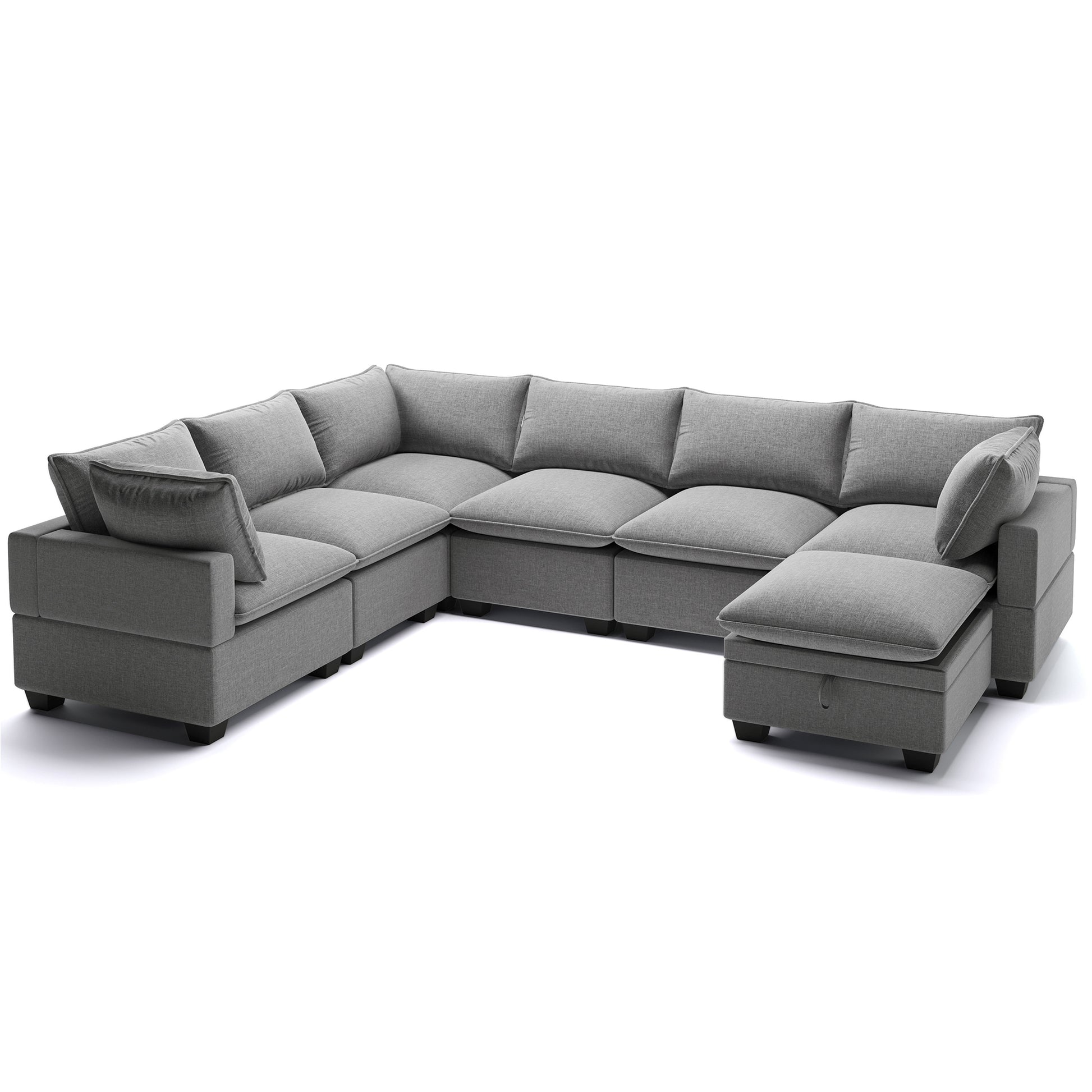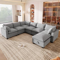 120*93" Modern U Shape Modular Sofa With Storage Ottoman,Luxury 7 Seat Sectional Couch Set With 2 Pillows Included,Freely Combinable Indoor Funiture For Living Room, Apartment Gray Polyester 7 Seat