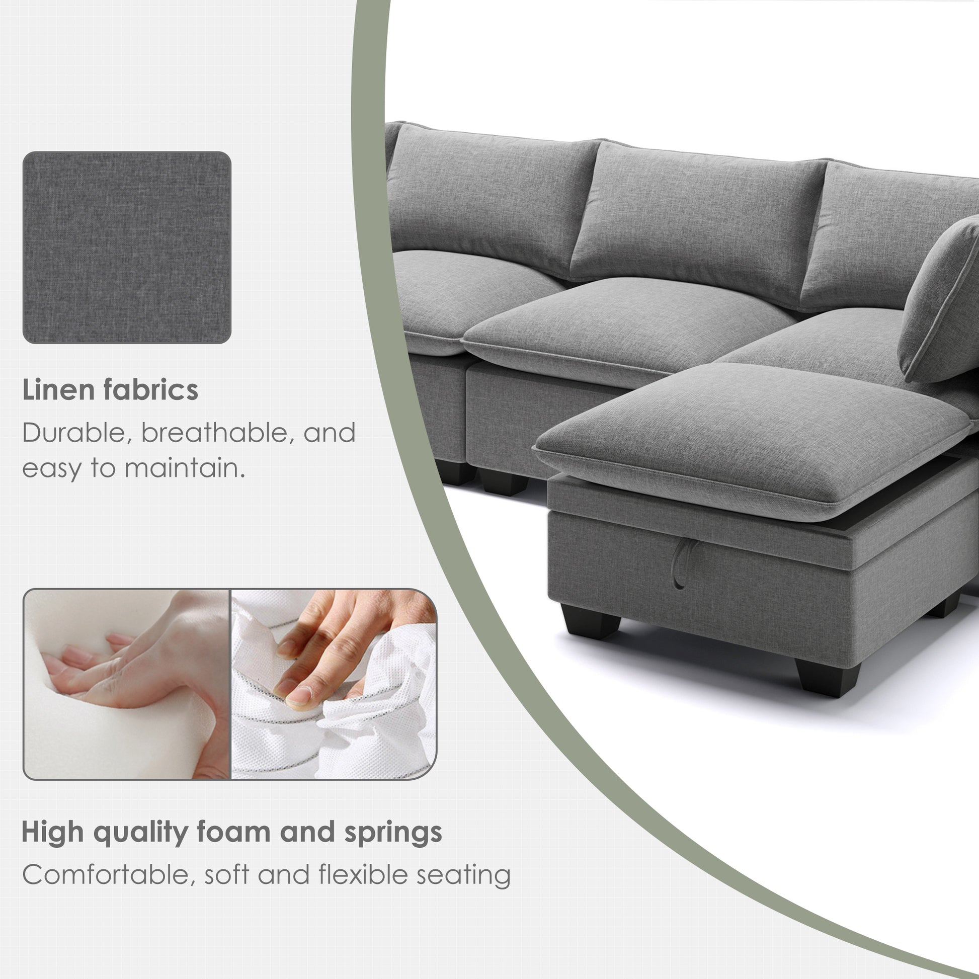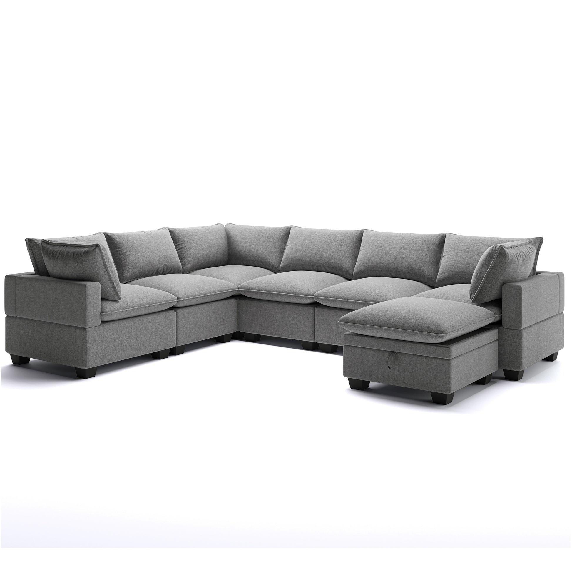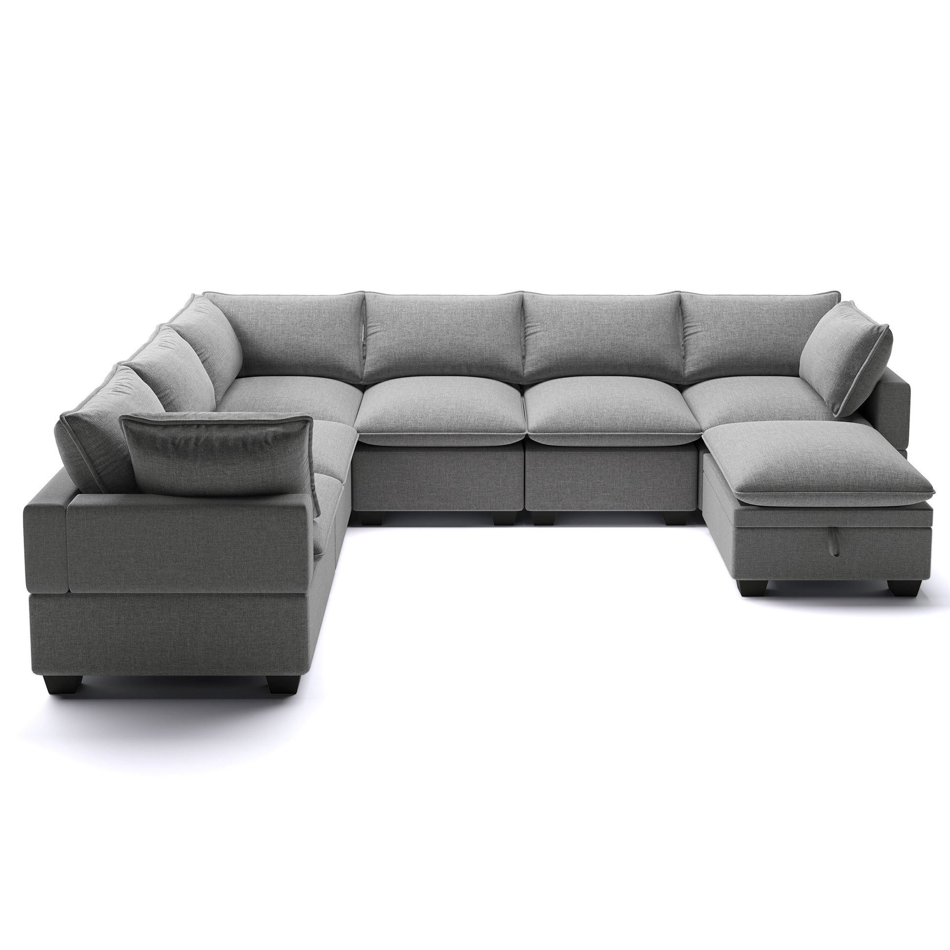 120*93" Modern U Shape Modular Sofa With Storage Ottoman,Luxury 7 Seat Sectional Couch Set With 2 Pillows Included,Freely Combinable Indoor Funiture For Living Room, Apartment Gray Polyester 7 Seat