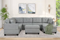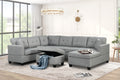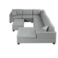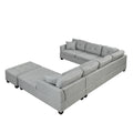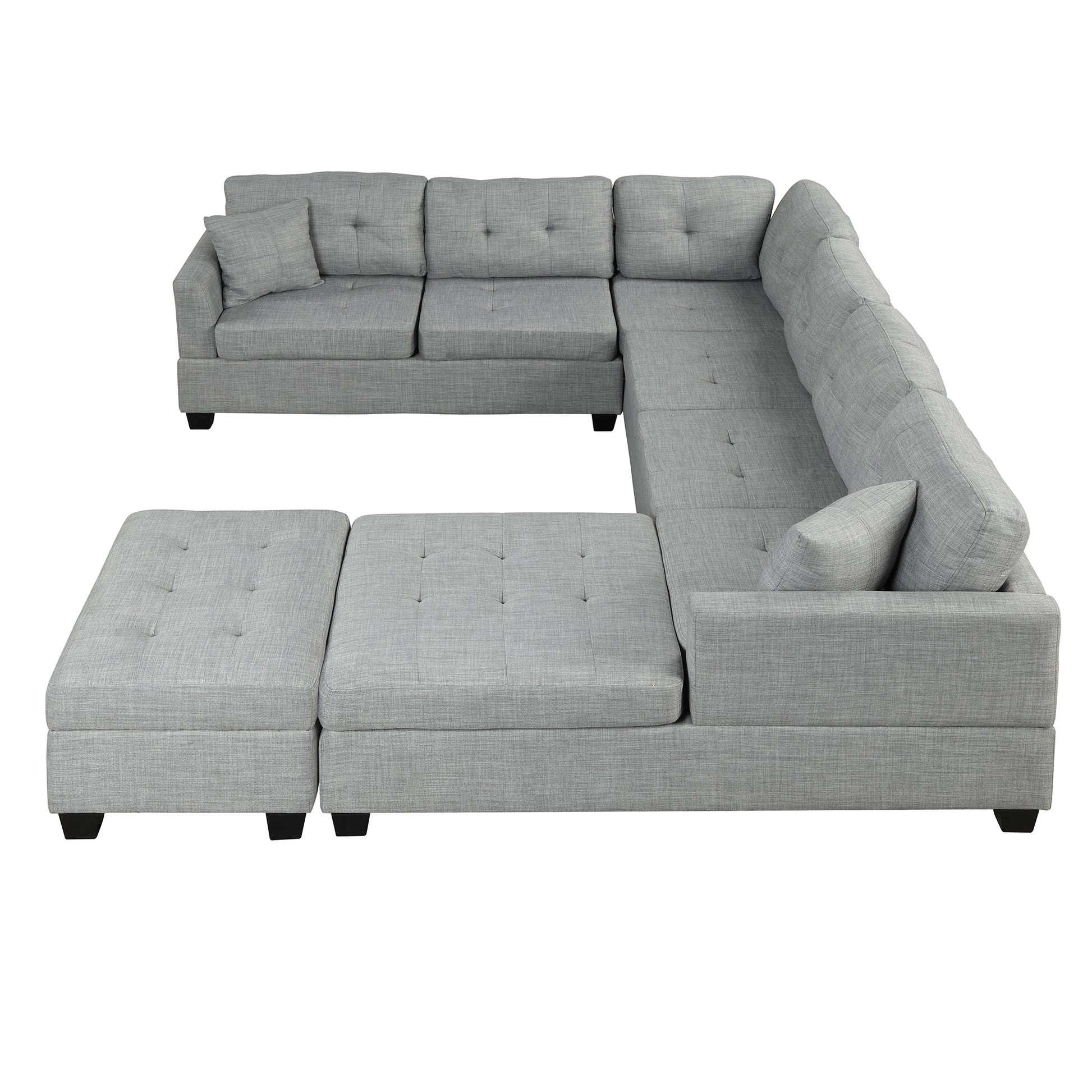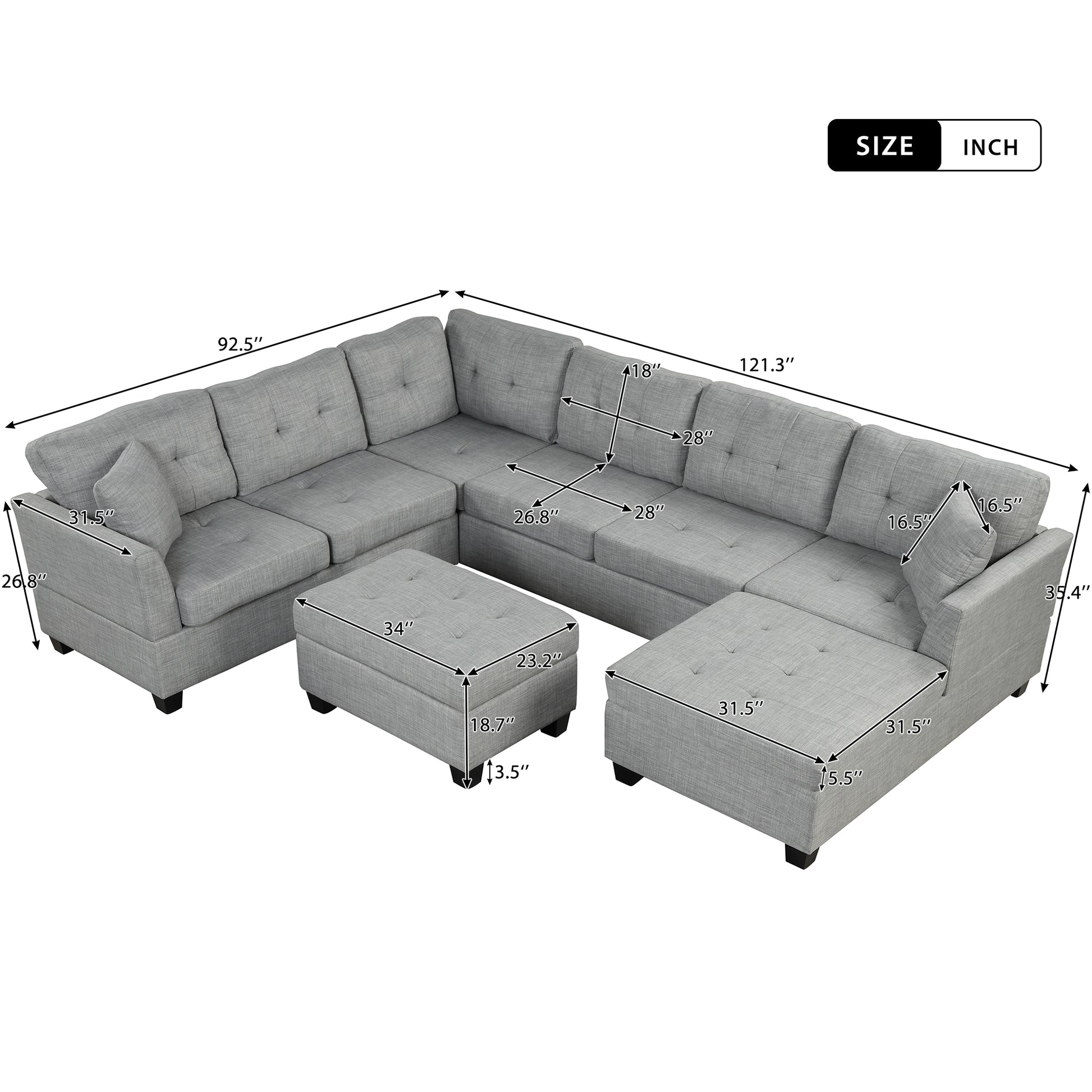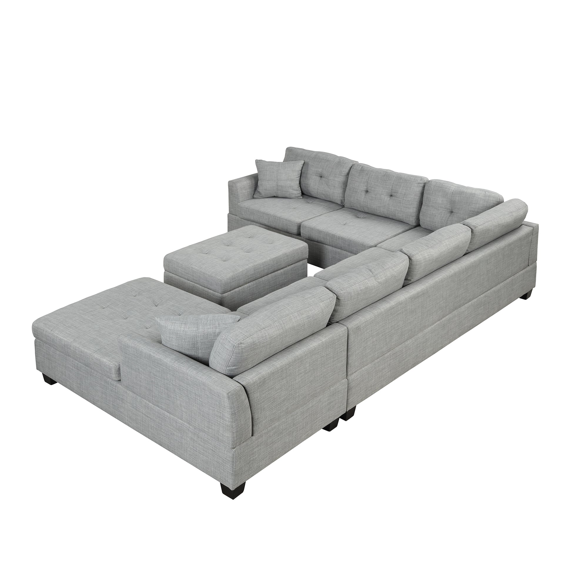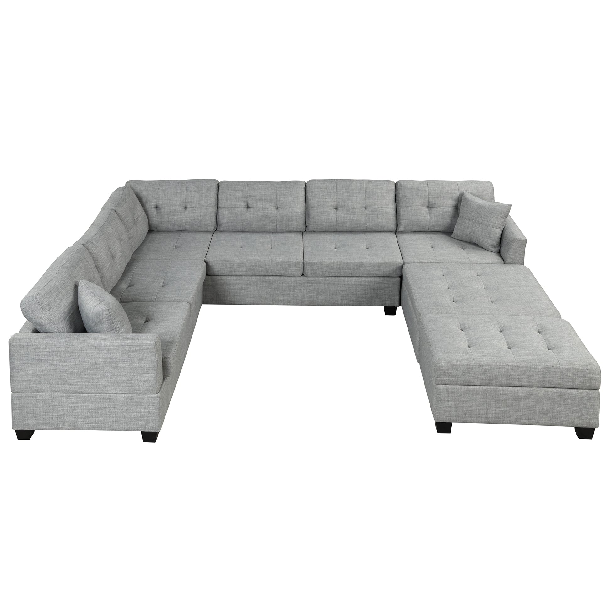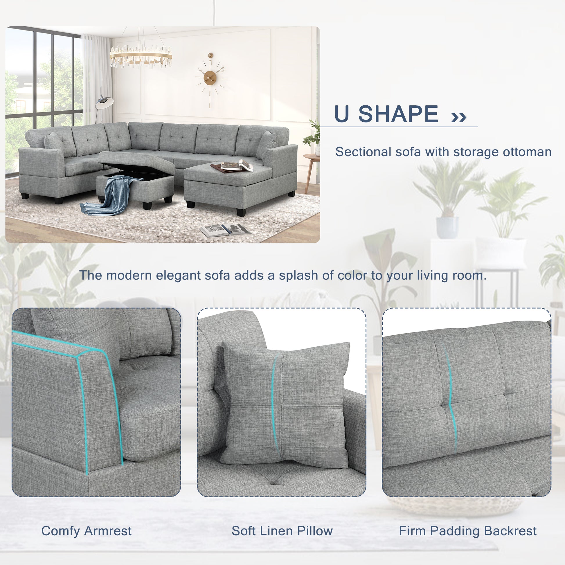 121.3" Oversized Sectional Sofa With Storage Ottoman, U Shaped Sectional Couch With 2 Throw Pillows For Large Space Dorm Apartment Light Grey Foam Linen