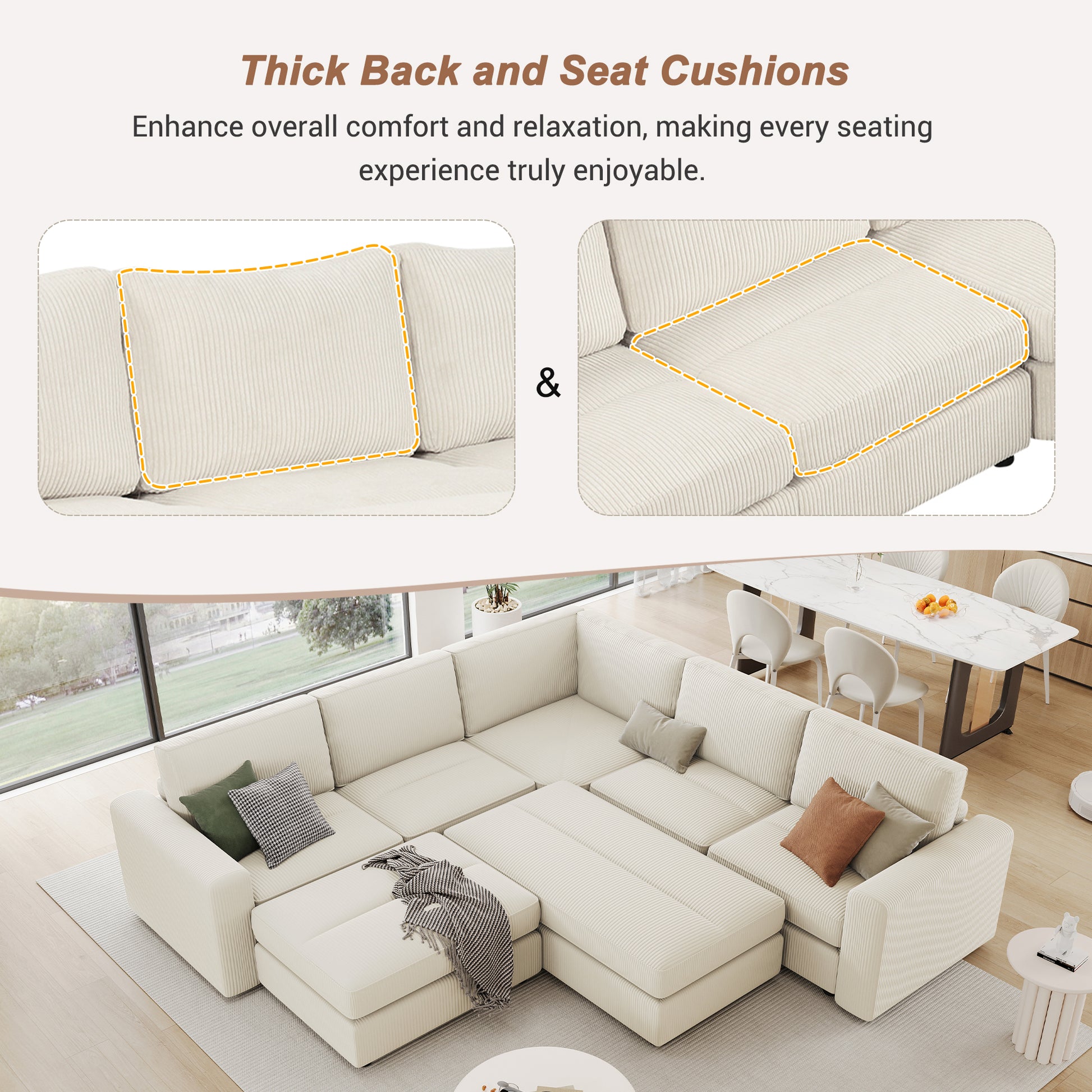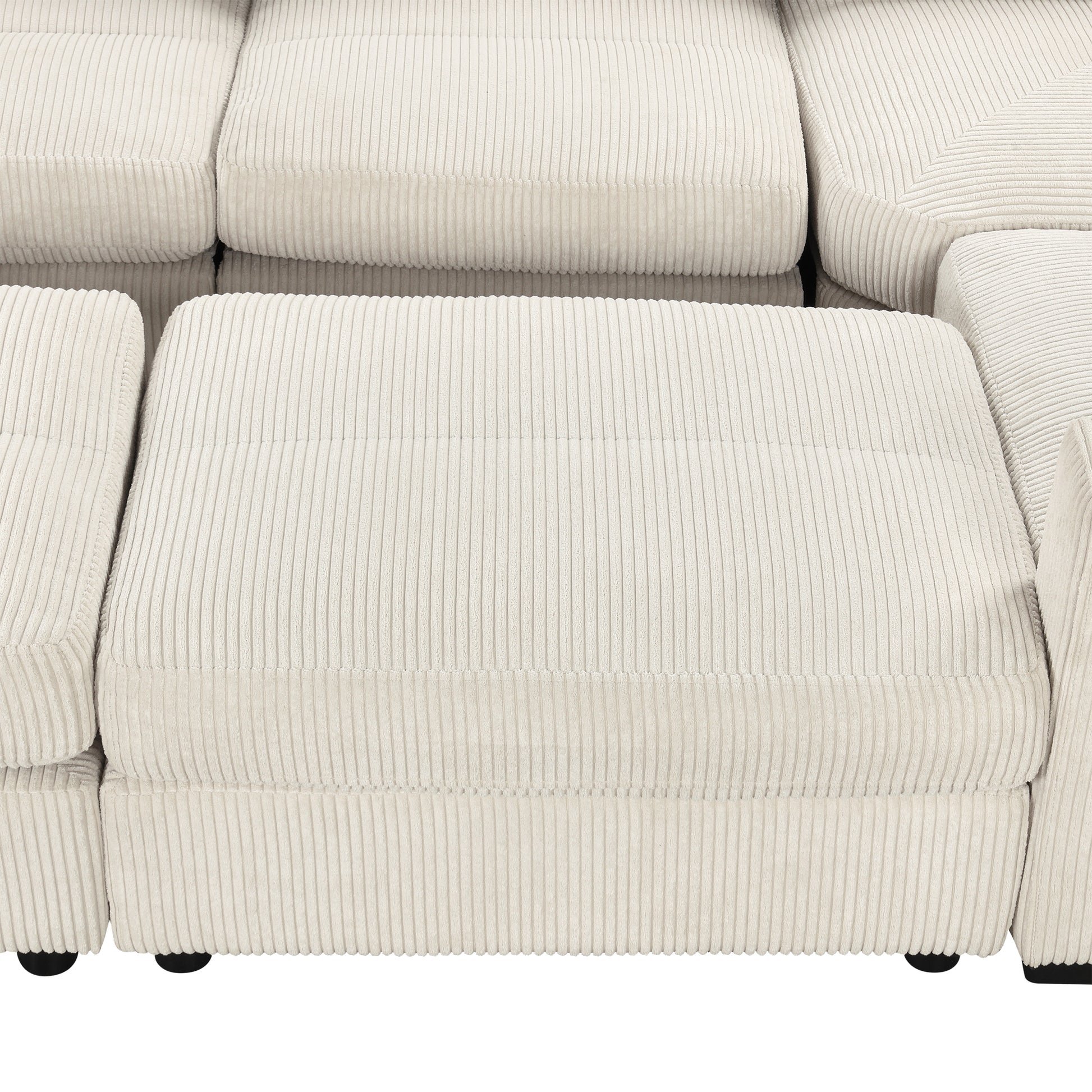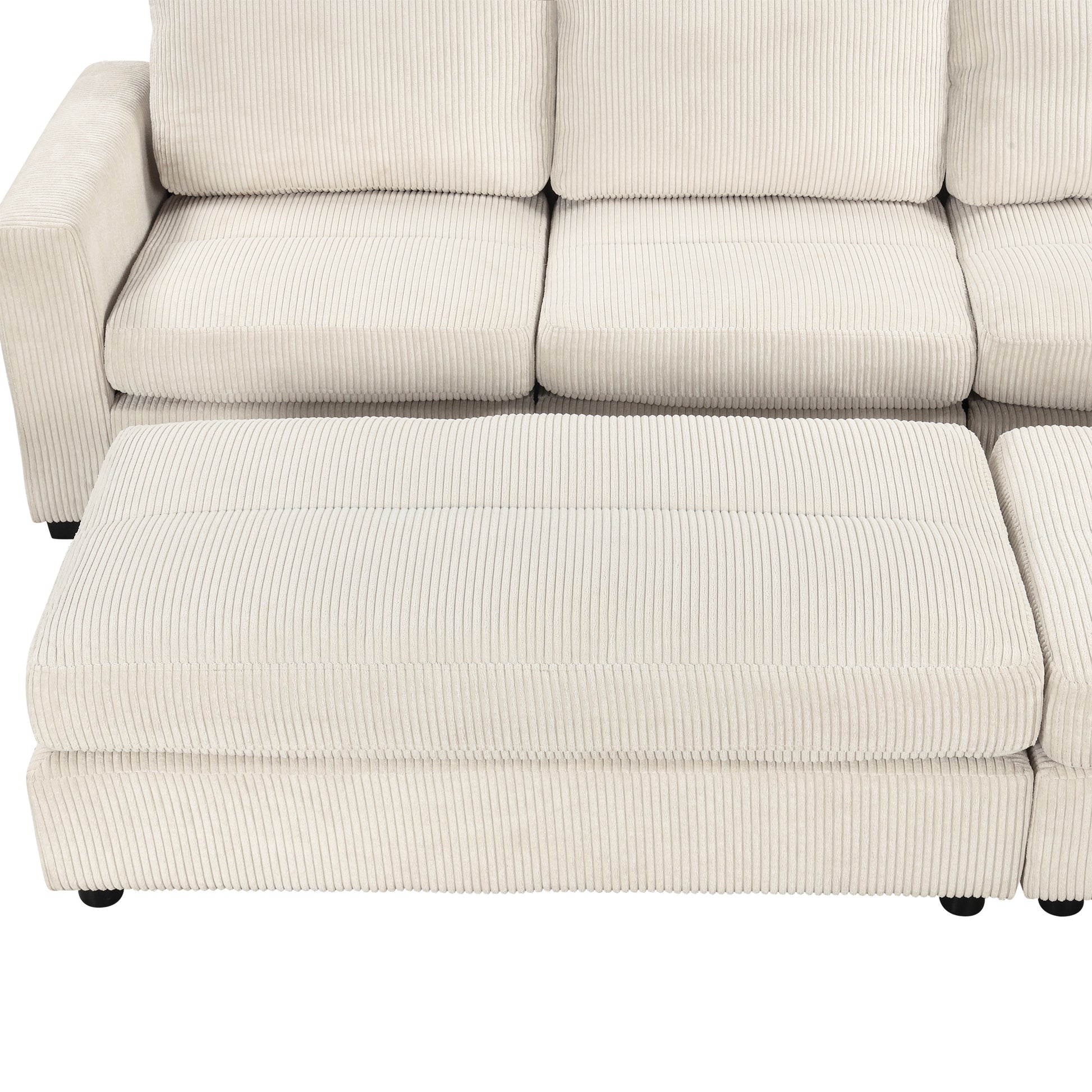 121.3" Sectional Couch Sofa Bed Modular Sofa With Two Movable Ottomans For Living Room Old Sku:N719S001640A , Beige Beige Foam Corduroy 7 Seat