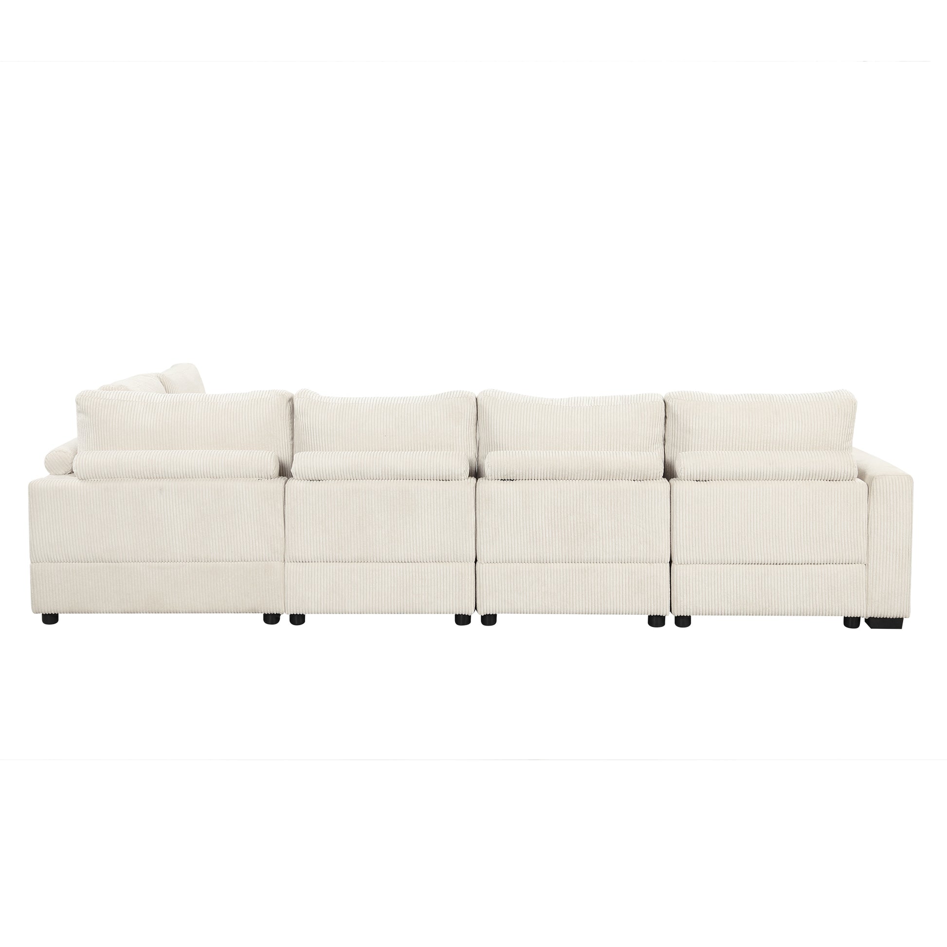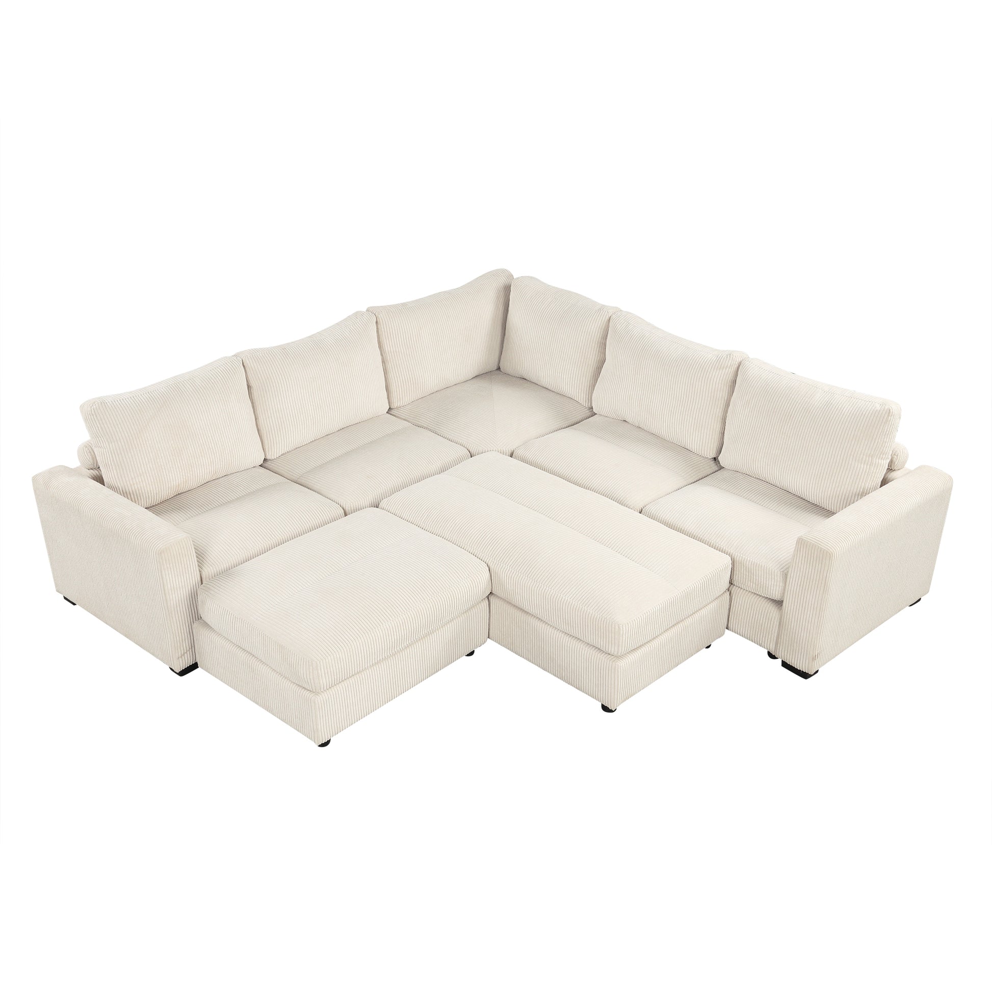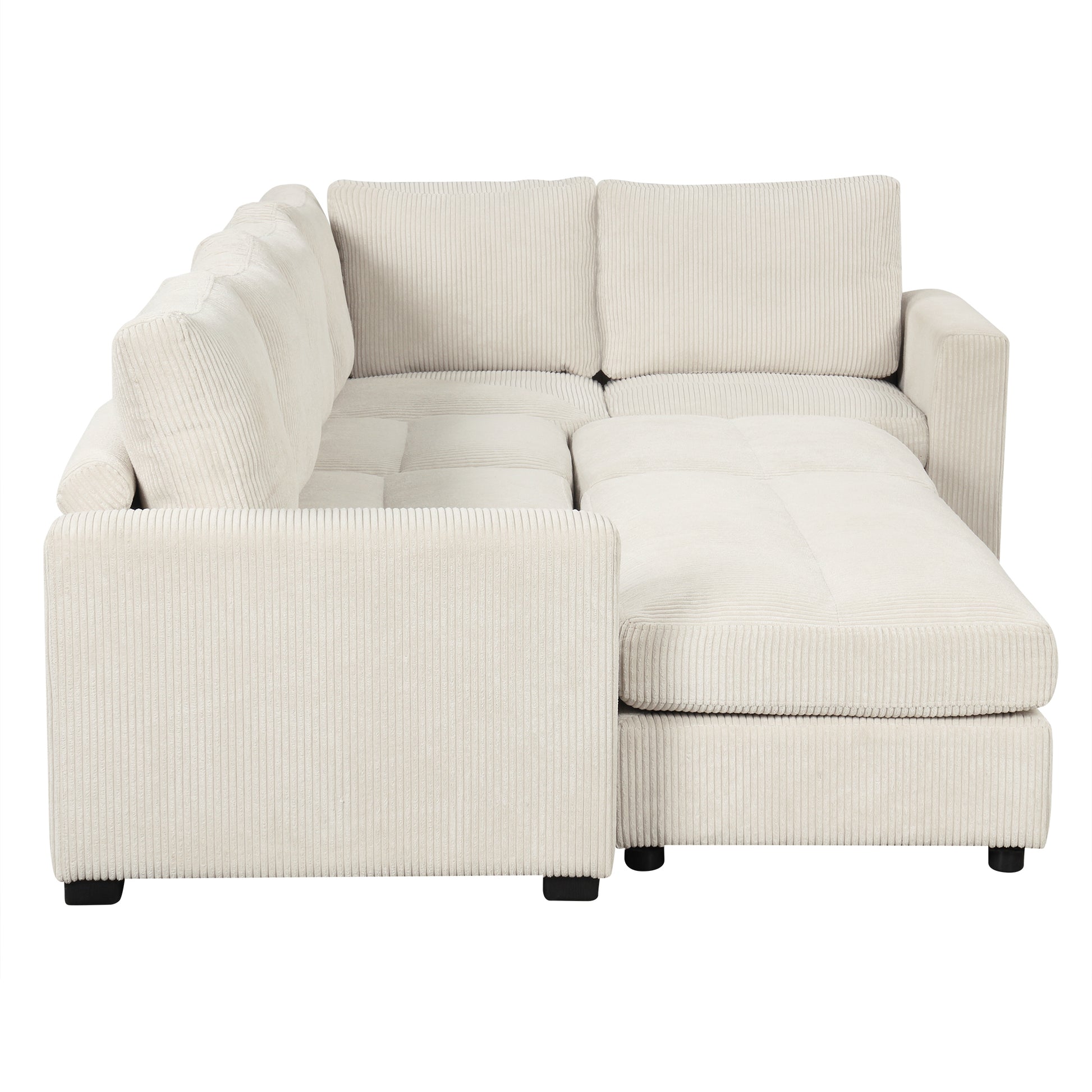 121.3" Sectional Couch Sofa Bed Modular Sofa With Two Movable Ottomans For Living Room Old Sku:N719S001640A , Beige Beige Foam Corduroy 7 Seat