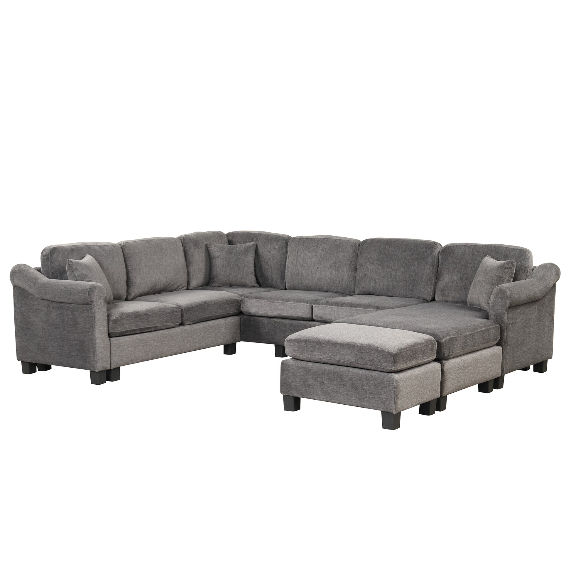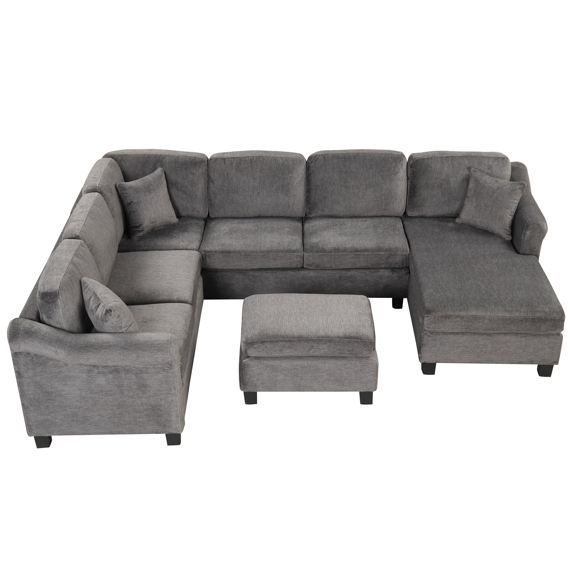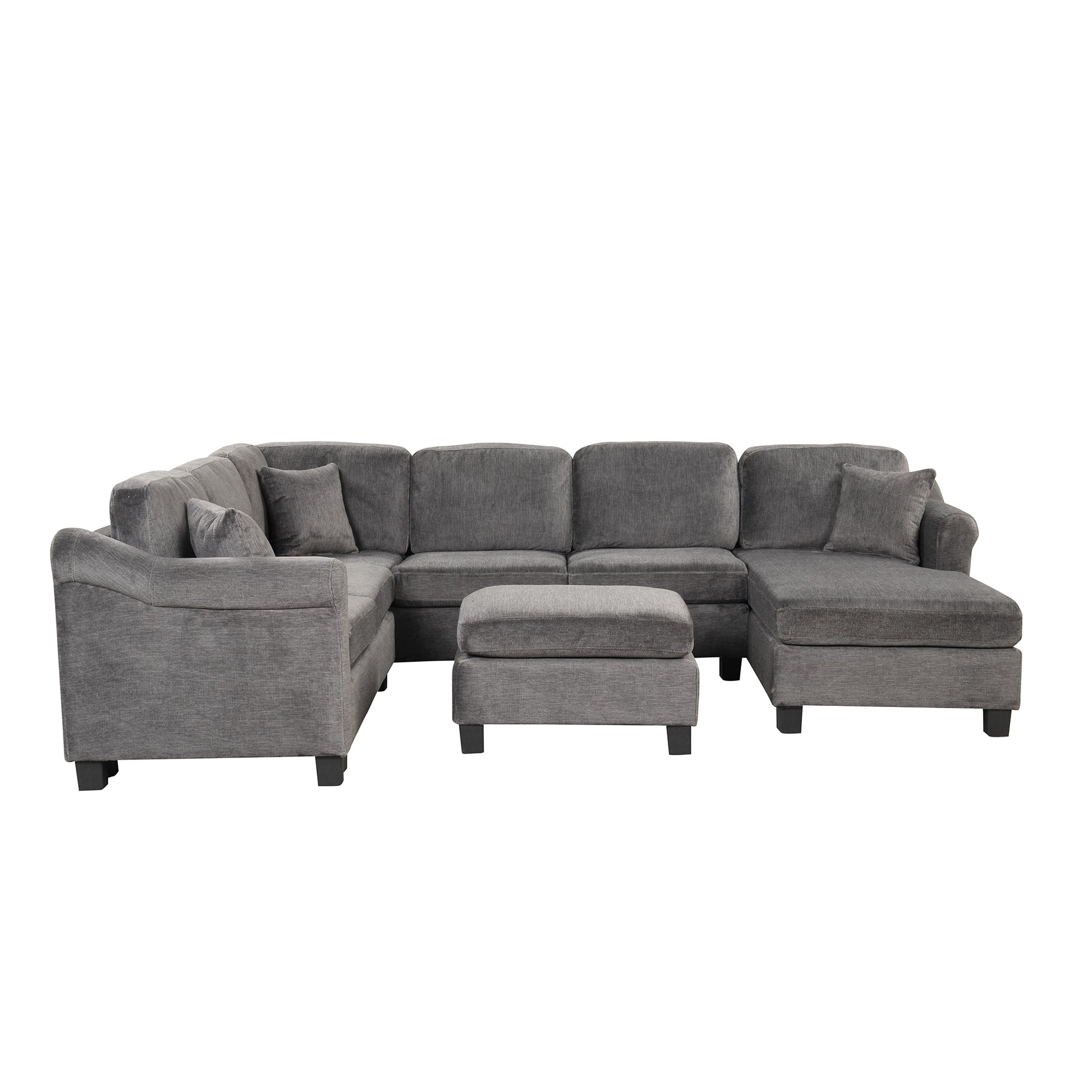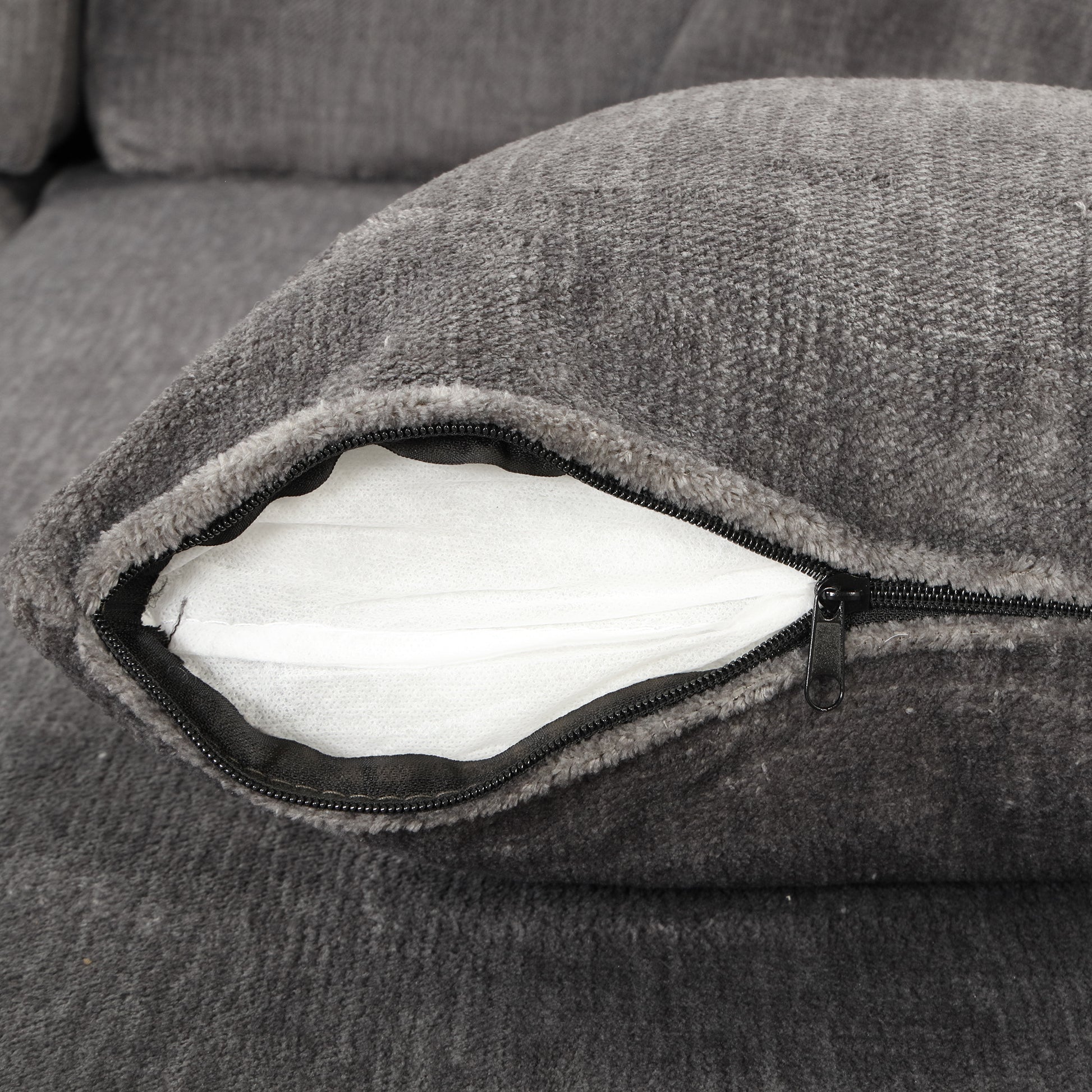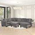 122.1" *91.3" 4Pcs Sectional Sofa With Ottoman With Right Side Chaise Velvet Fabric Dark Gray Dark Grey Foam Velvet 6 Seat