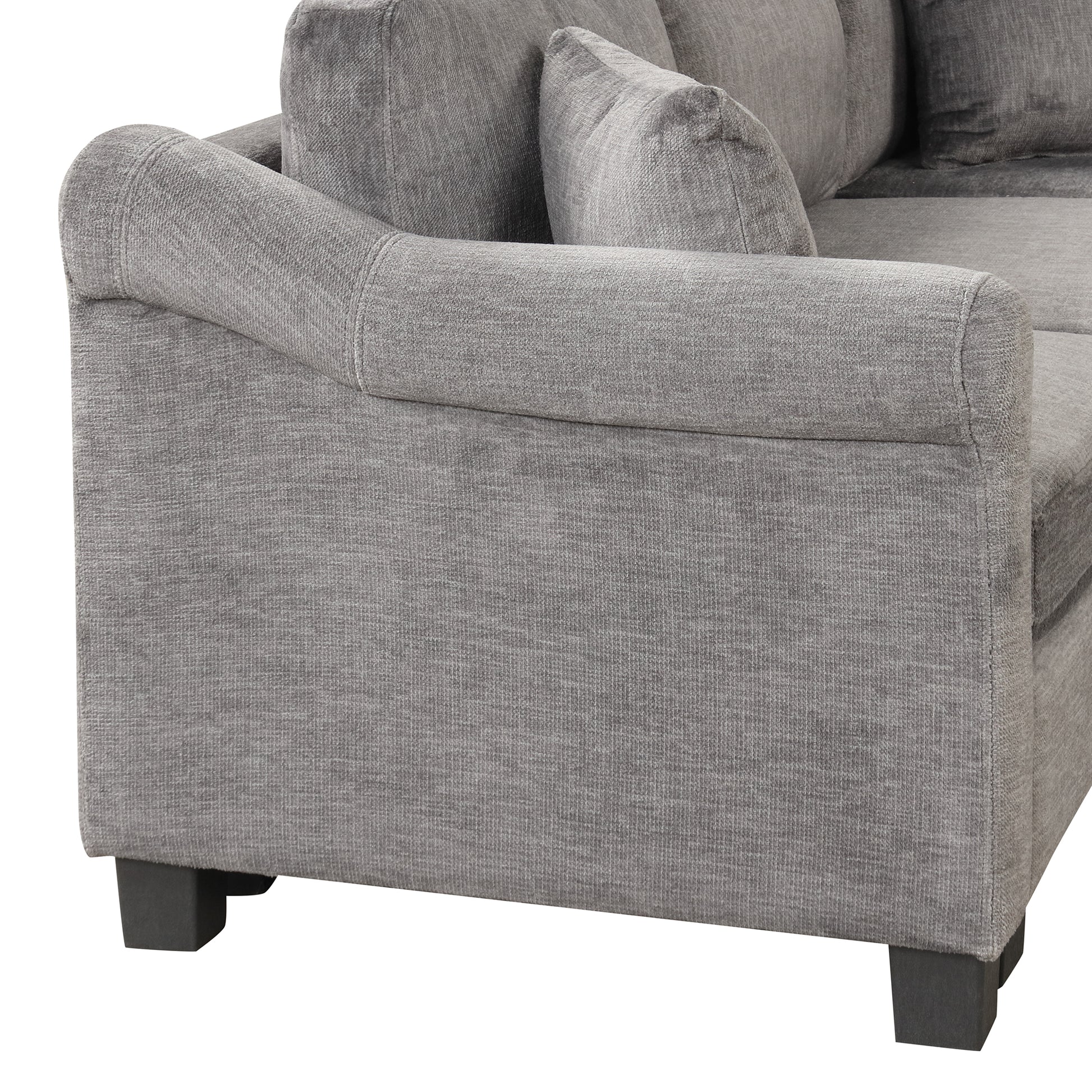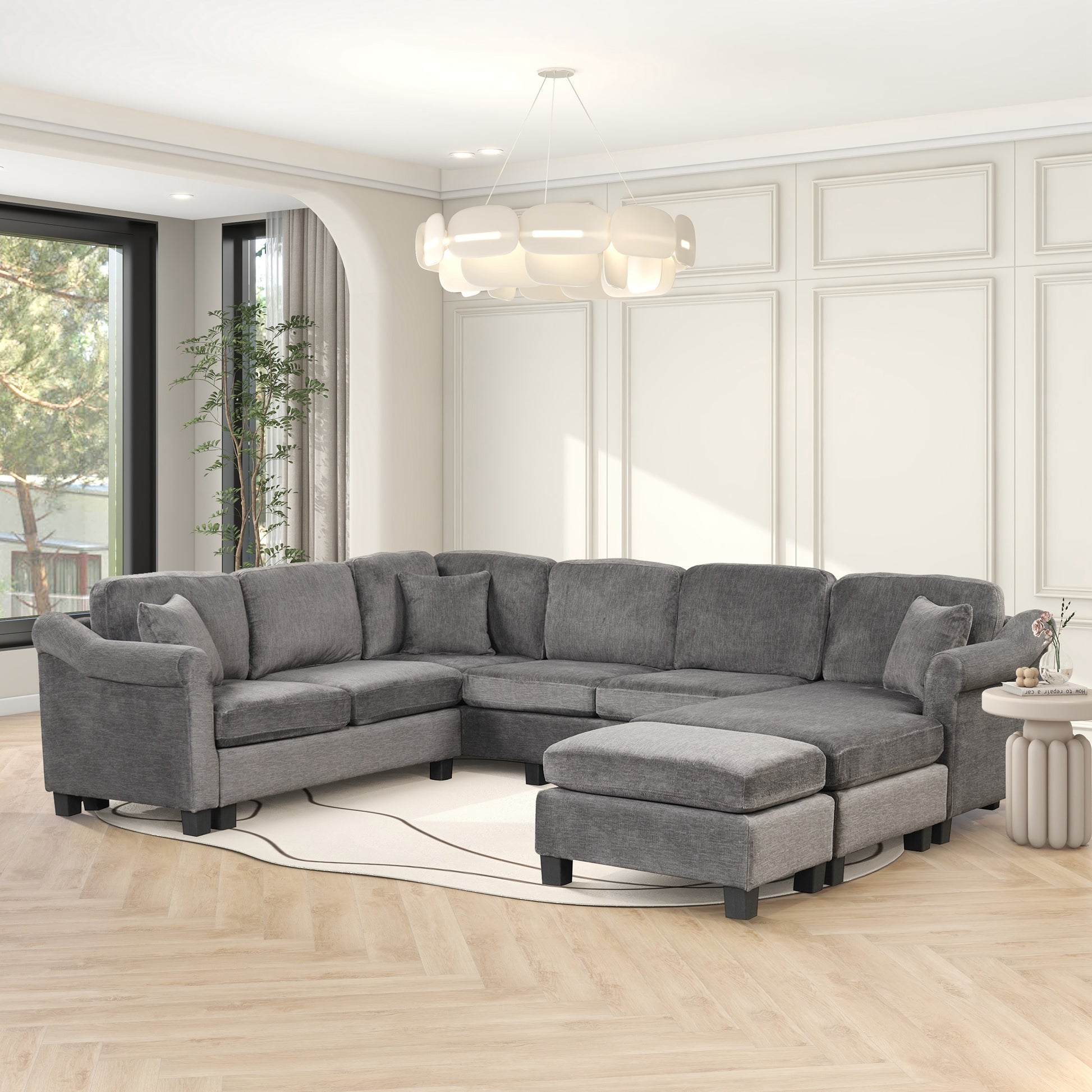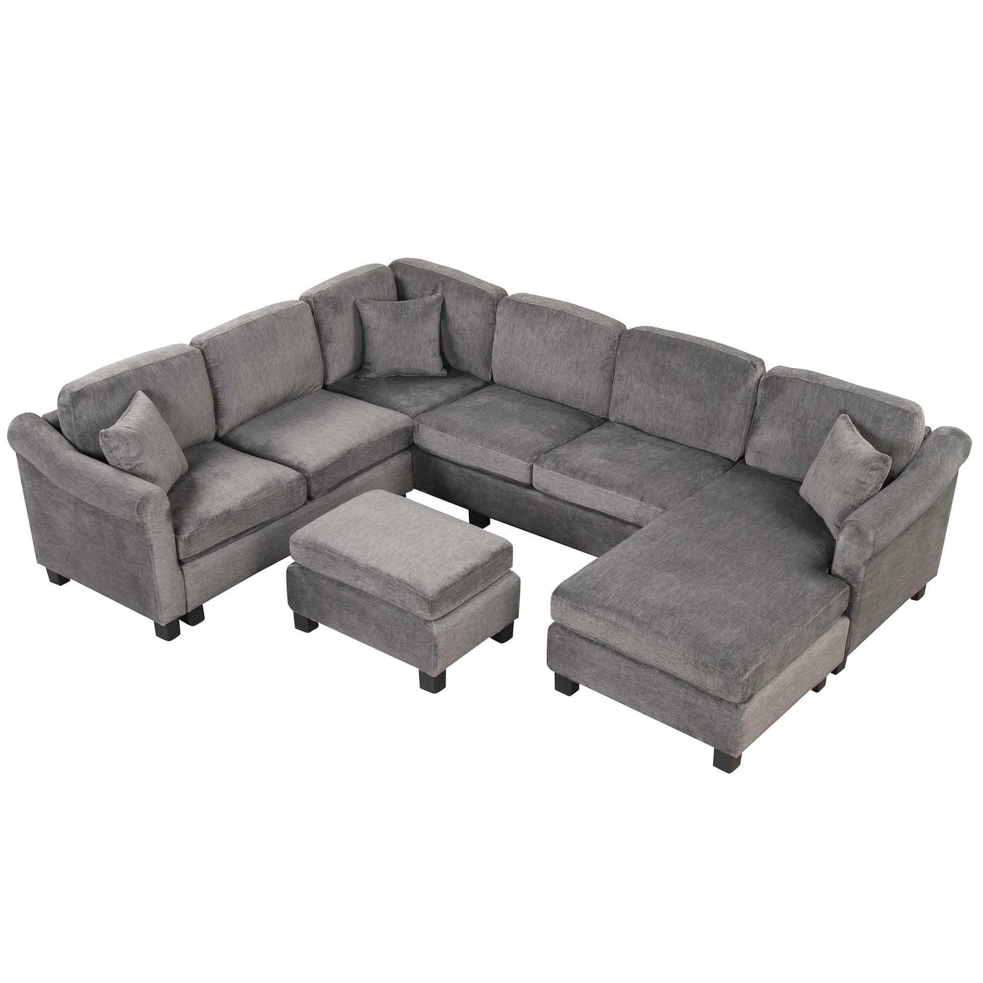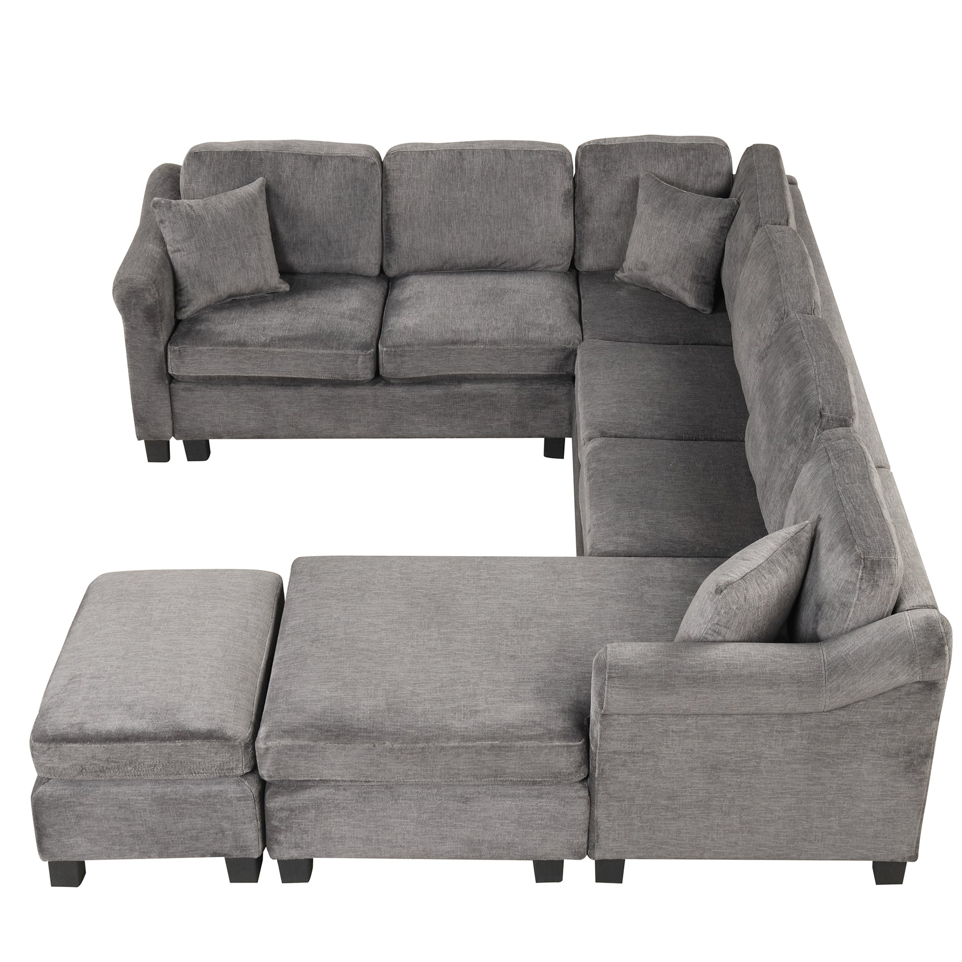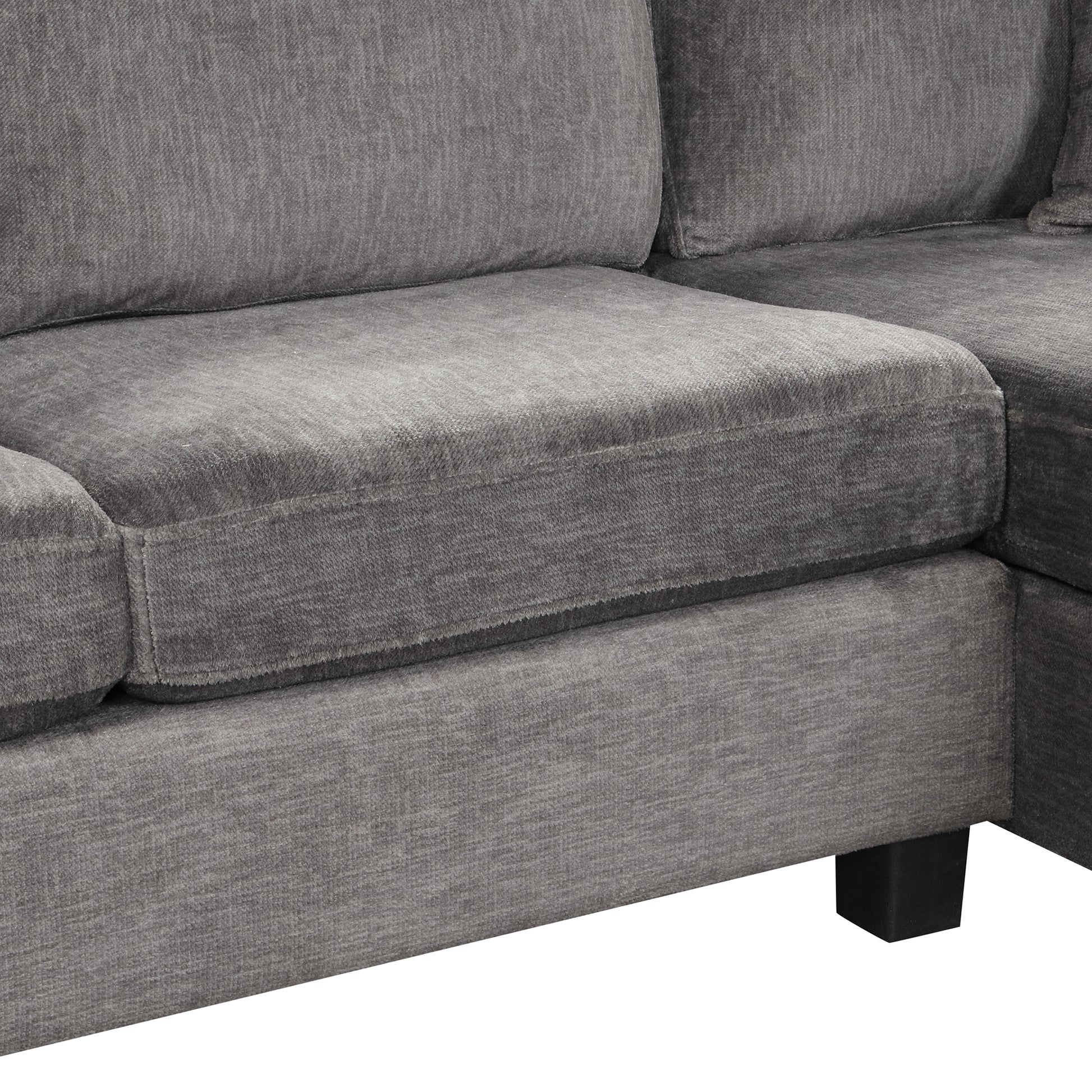 122.1" *91.3" 4Pcs Sectional Sofa With Ottoman With Right Side Chaise Velvet Fabric Dark Gray Dark Grey Foam Velvet 6 Seat