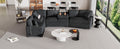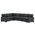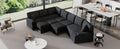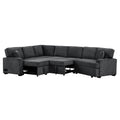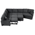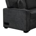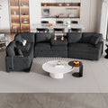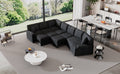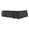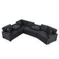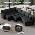 126" L Shaped Sofa Sectional Sofa Couch Pull Out Sofa Bed With Charging Devices And Cup Holders For Living Room, Blue Black Black Blue Foam Chenille 6 Seat