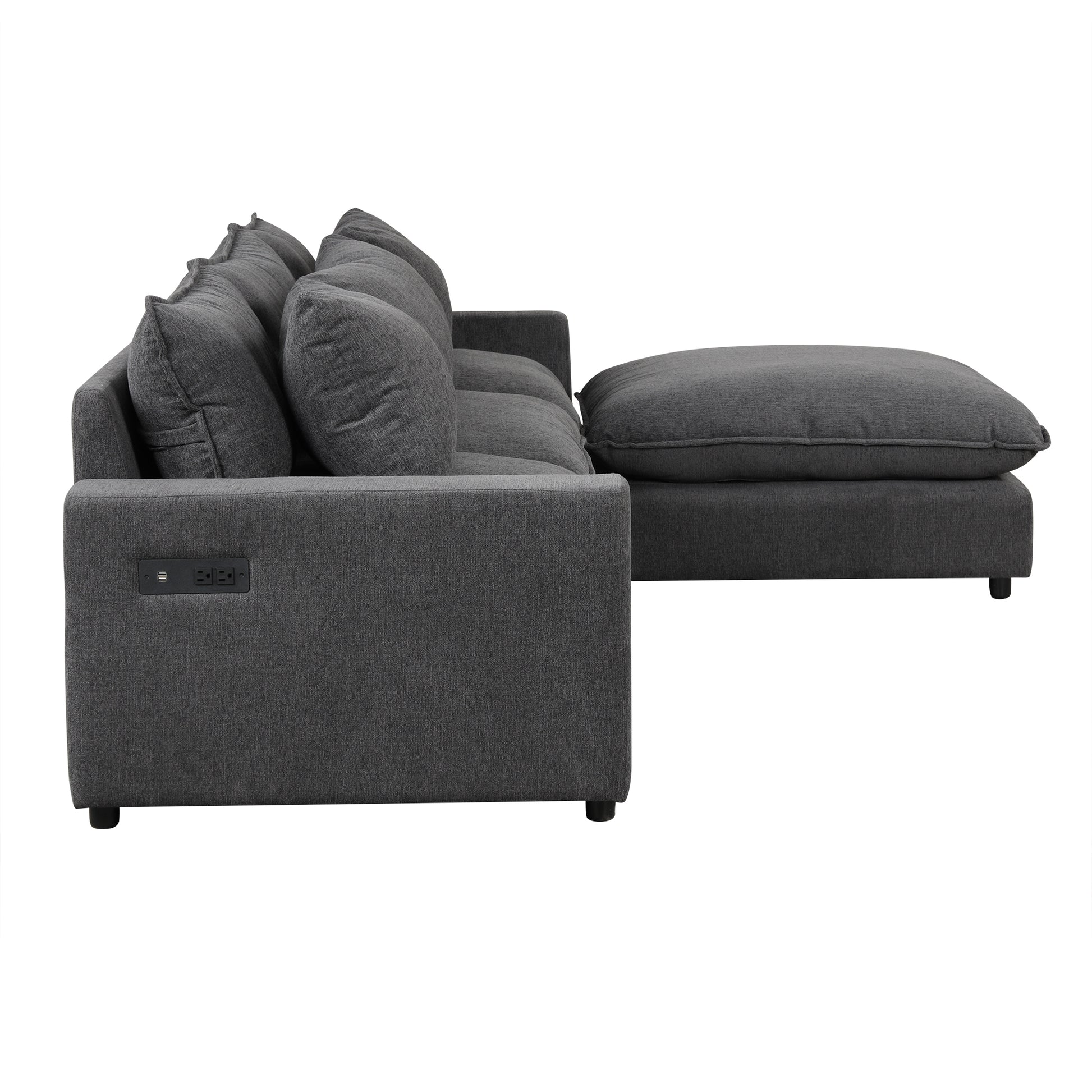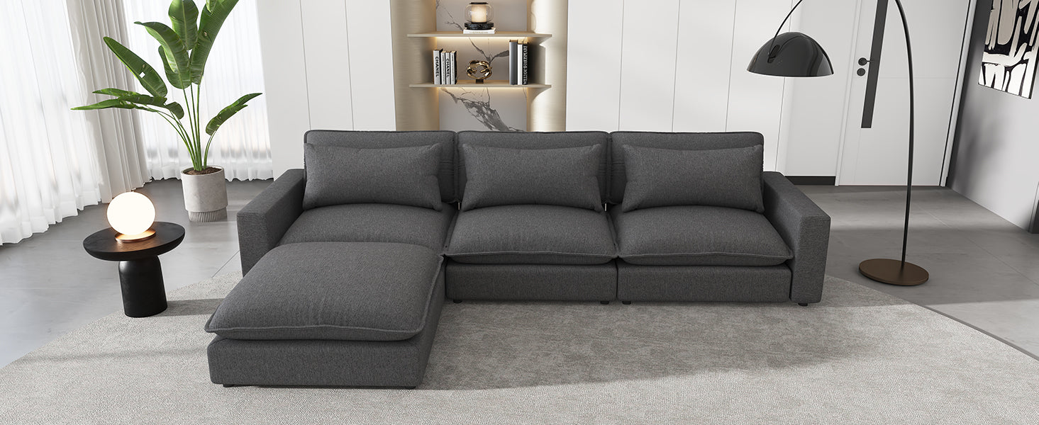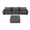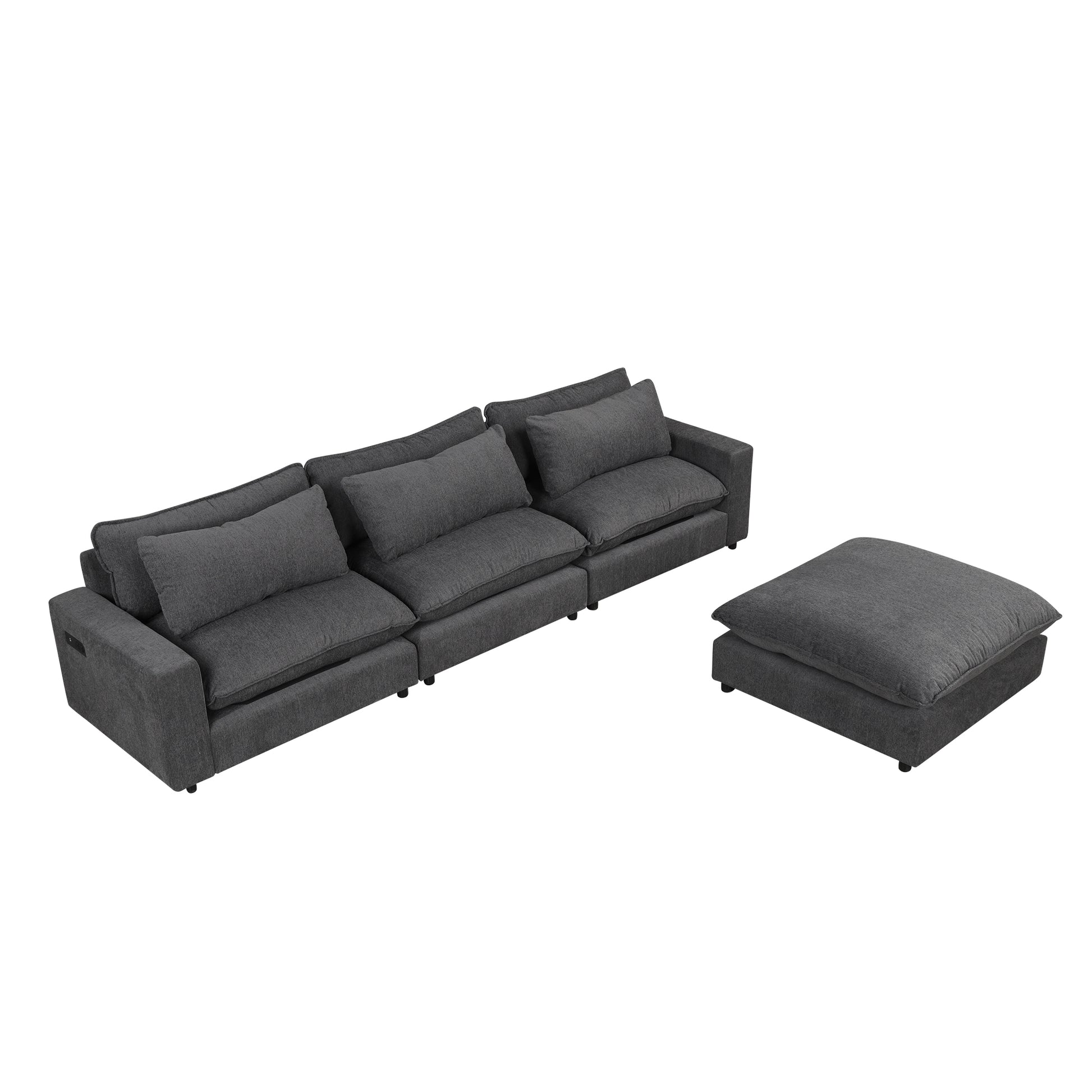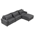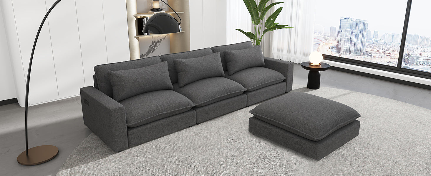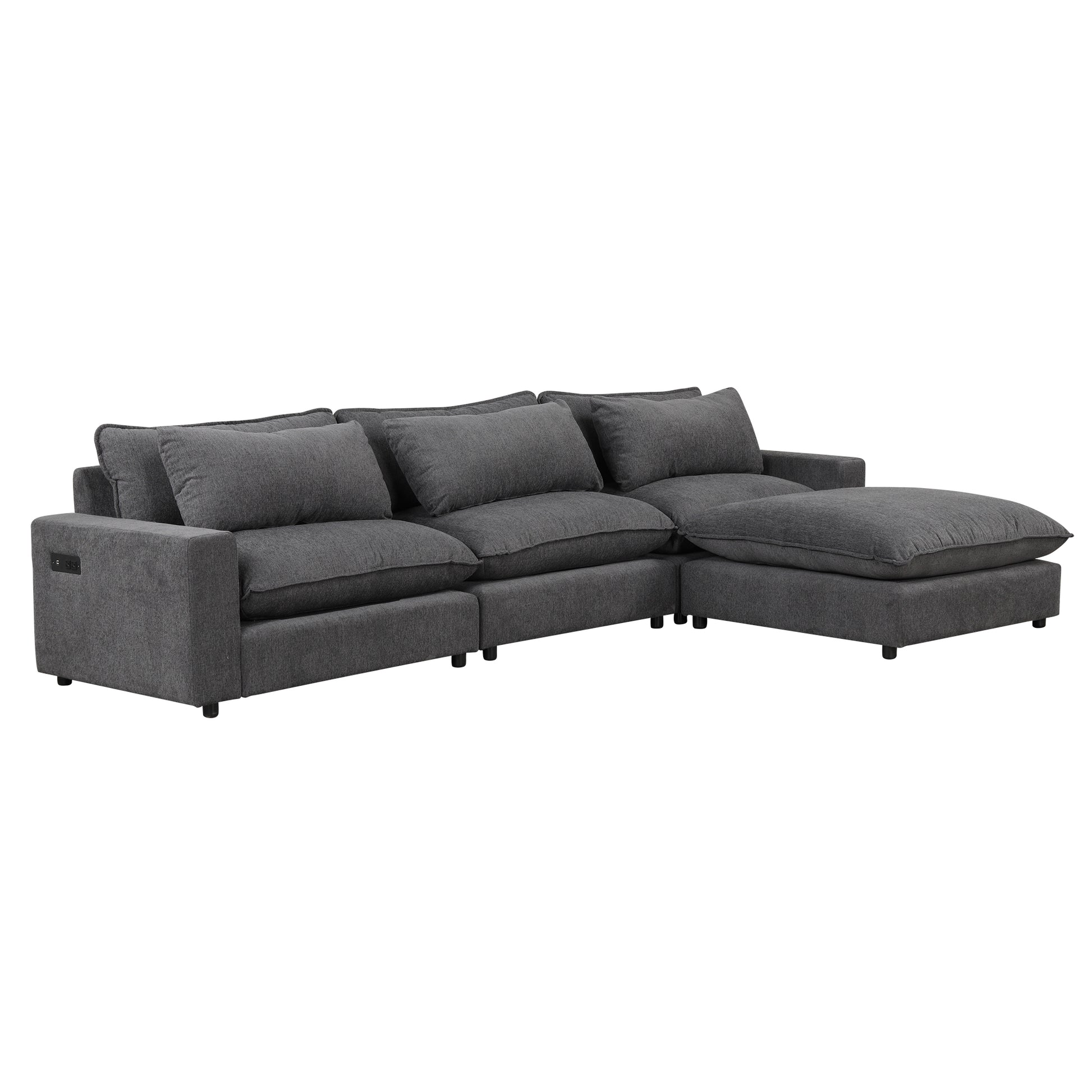 128" Sectional Sofa Cloud Sofa Chenille Upholstered Sofa Couch With Movable Ottoman, Comfortable Seat Cushions, Charging Ports And Three Back Pillows For Living Room, Grey Grey Foam Chenille 4 Seat