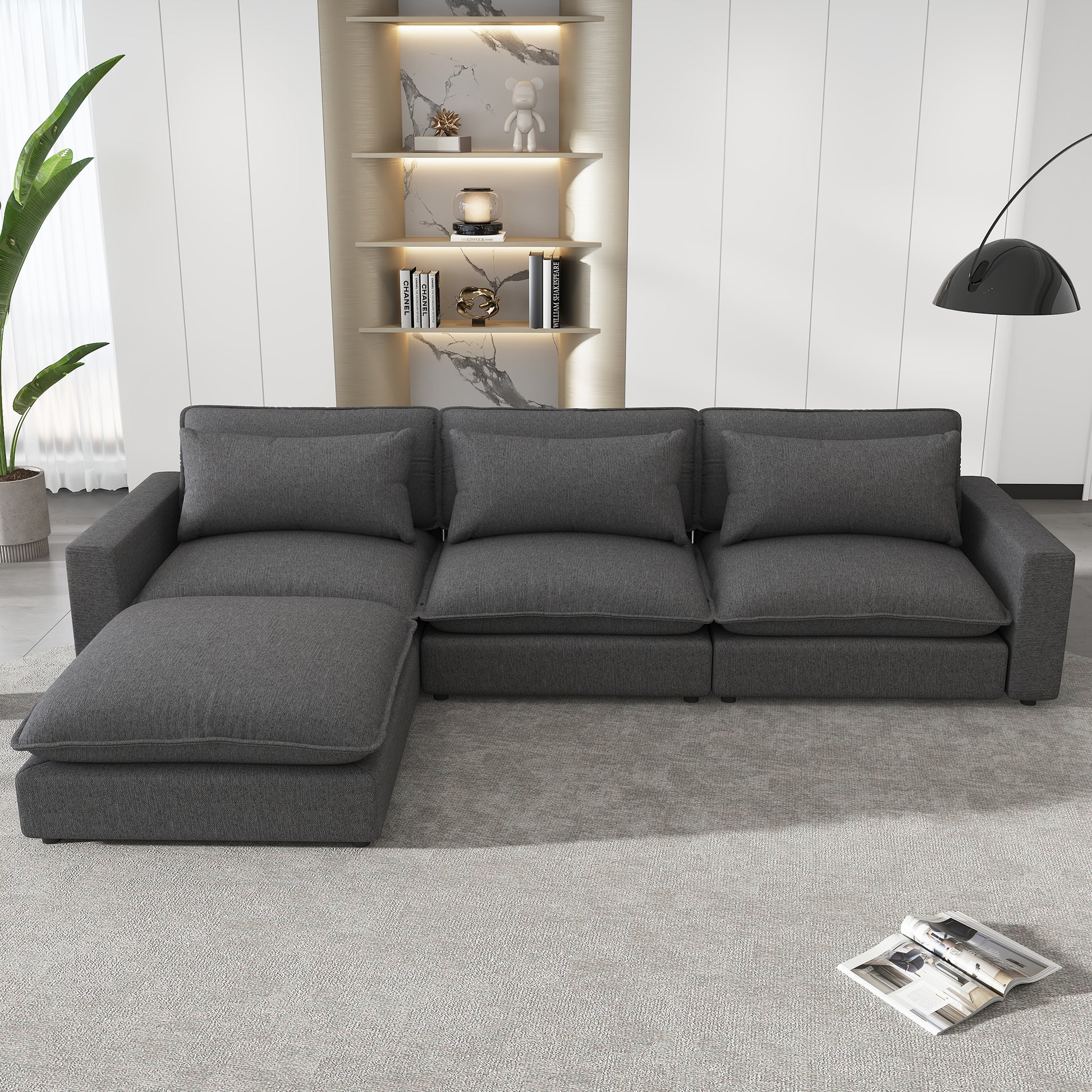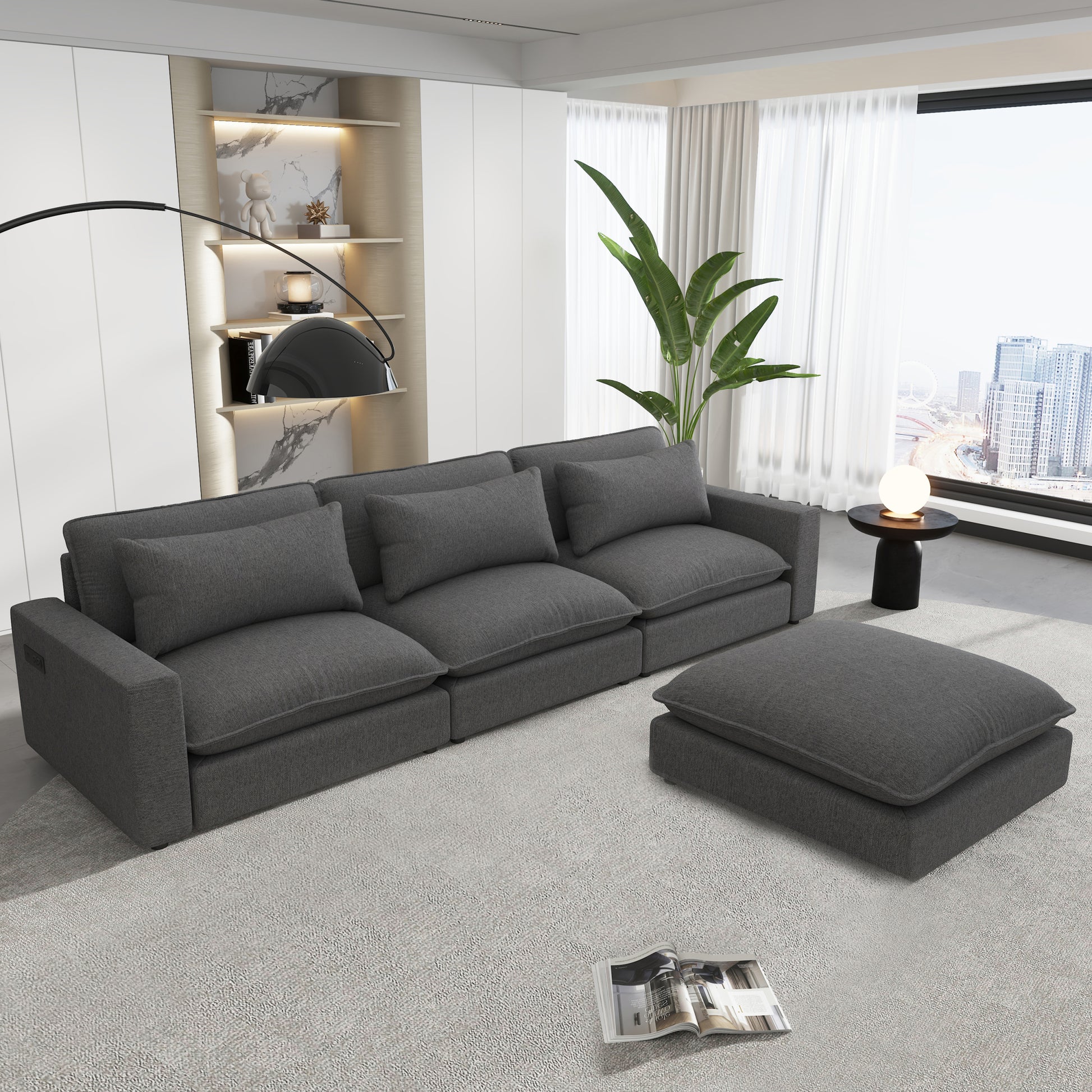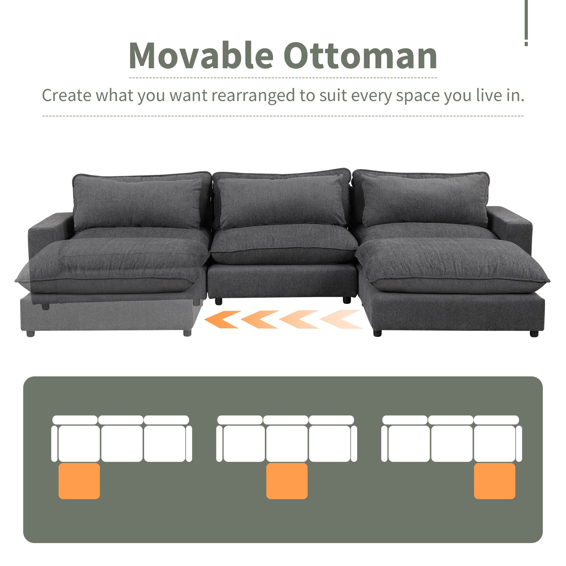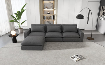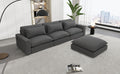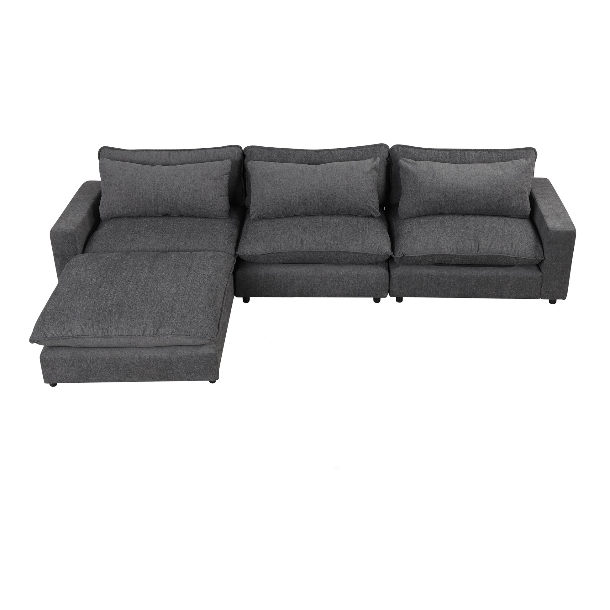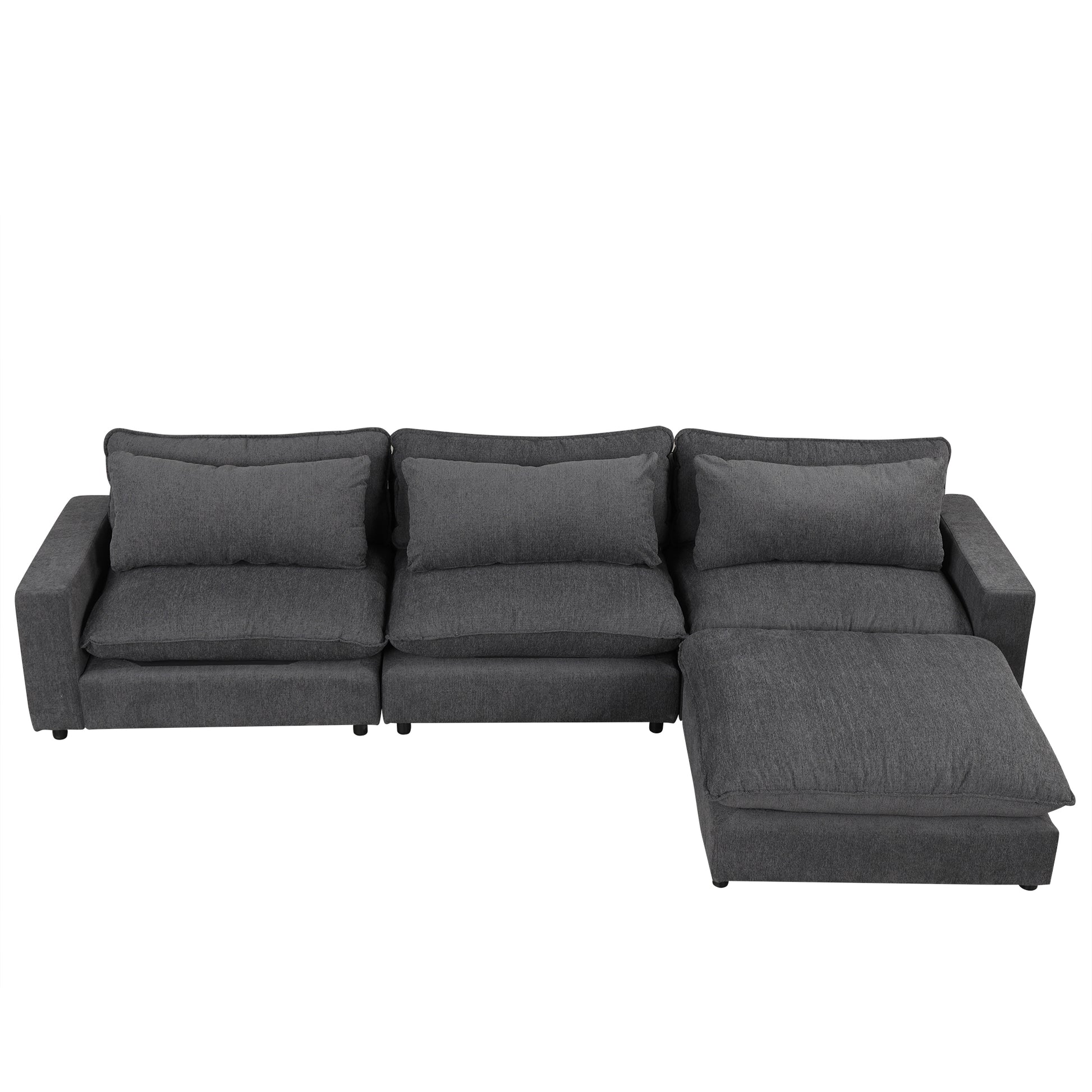 128" Sectional Sofa Cloud Sofa Chenille Upholstered Sofa Couch With Movable Ottoman, Comfortable Seat Cushions, Charging Ports And Three Back Pillows For Living Room, Grey Grey Foam Chenille 4 Seat