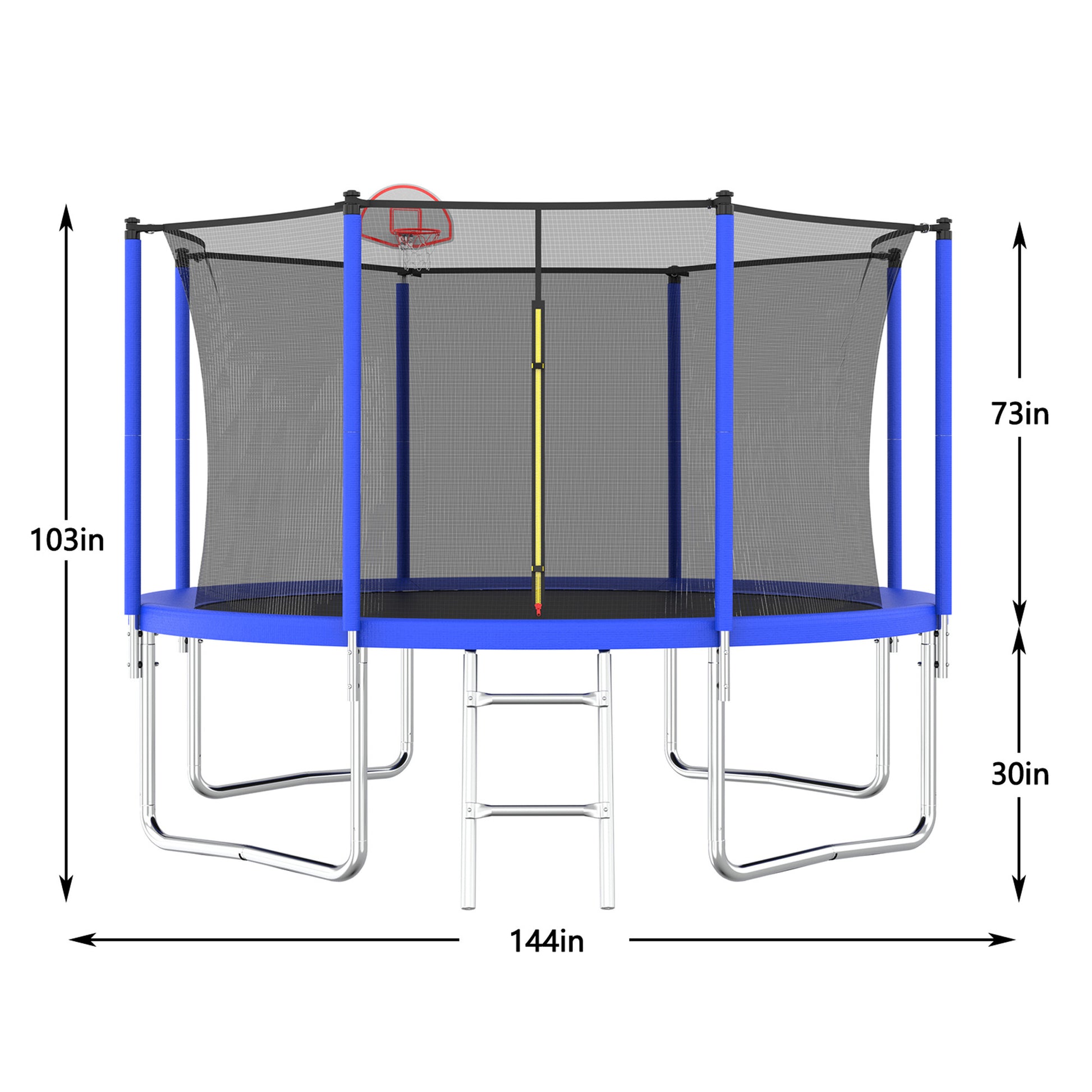 12Ft Trampoline For Kids & Adults With Basketball Hoop And Ball ,Recreational Trampolines With Safety Enclosure For Back Yard Outdoor Blue Metal
