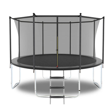 12Ft Trampoline With Safety Enclosure Net, Outdoor Trampoline With Heavy Duty Jumping Mat And Spring Cover Padding For Kids And Adults Gray Garden & Outdoor Iron