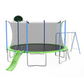 12Ft Trampoline With Slide And Swings, Astm Approved Large Recreational Trampoline With Basketball Hoop And Ladder,Outdoor Backyard Trampoline With Net, Capacity For Kids And Adults Green Metal