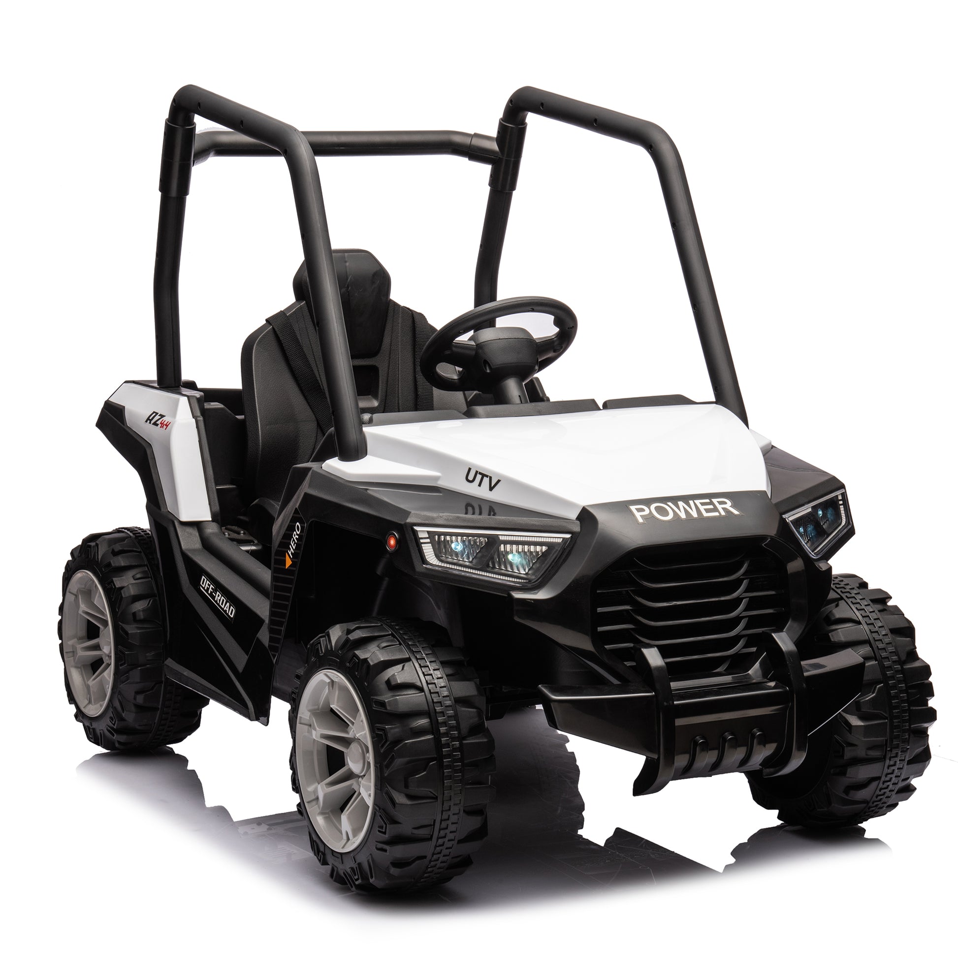 12V Dual Drive Remote Control Electric Kid Ride On Car,Battery Powered Kids Ride On Car White, 4 Wheels Children Toys Vehicle,Led Headlights,Remote Control,Music,Usb. White Polyethylene