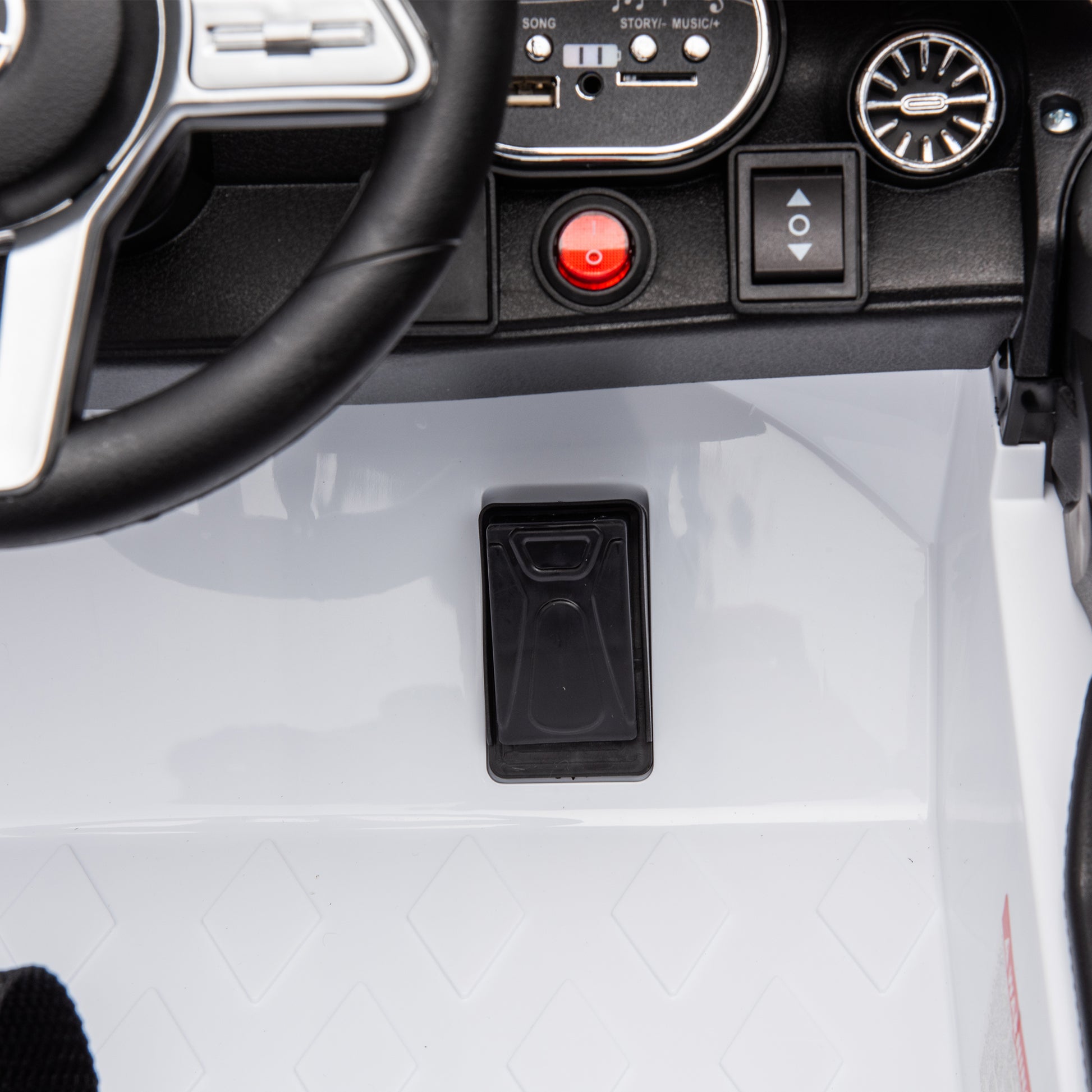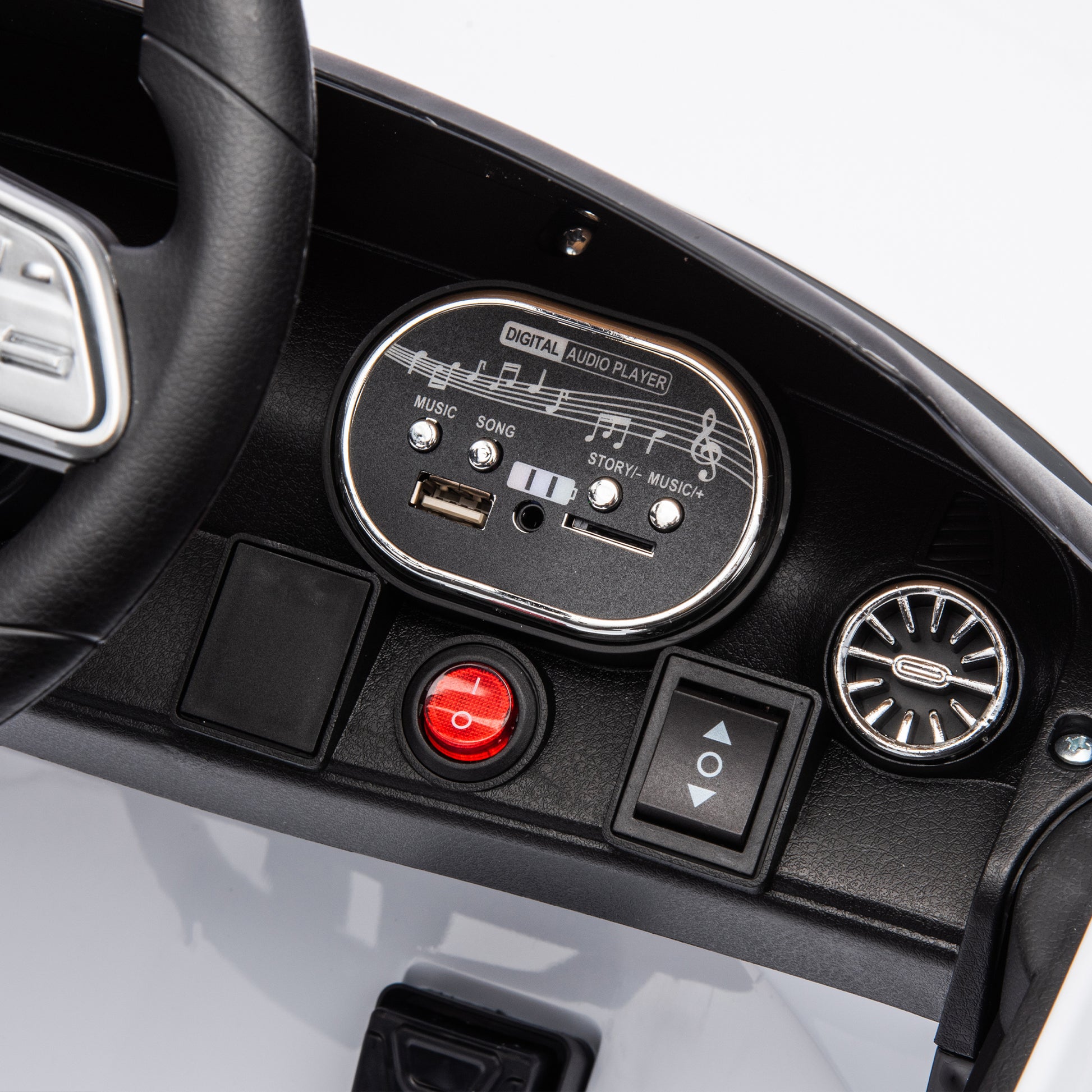 12V Kids Ride On Car W Parents Remote Control,Licensed Mercedes Benz Cls 350 For Kids,Four Wheel Suspension,Power Display,Music,Volume Control,Led Lights,Mp3,Usb Sd For Kids 37 95 Months. White 50 99 Lbs Polypropylene